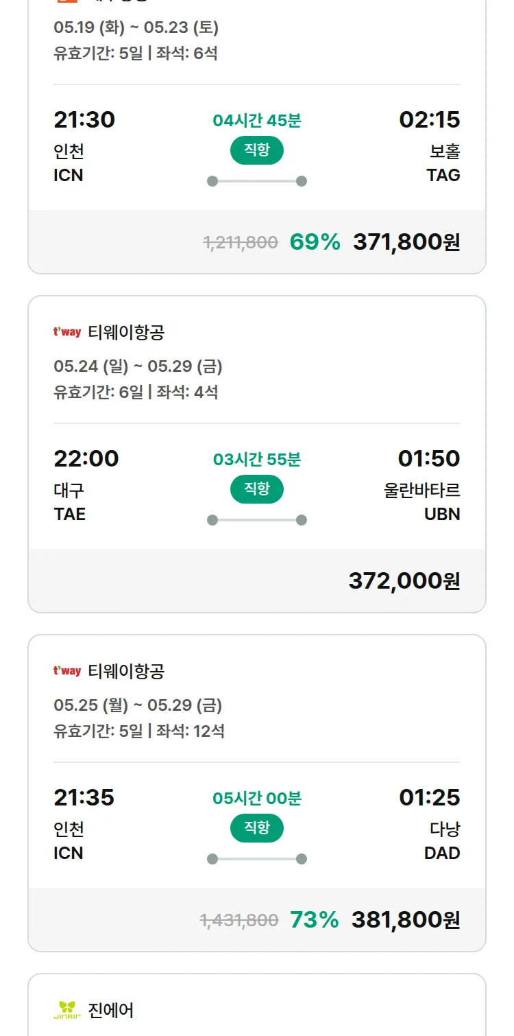(4월 25일(토)) 땡처리 99.9% 확정 패키지