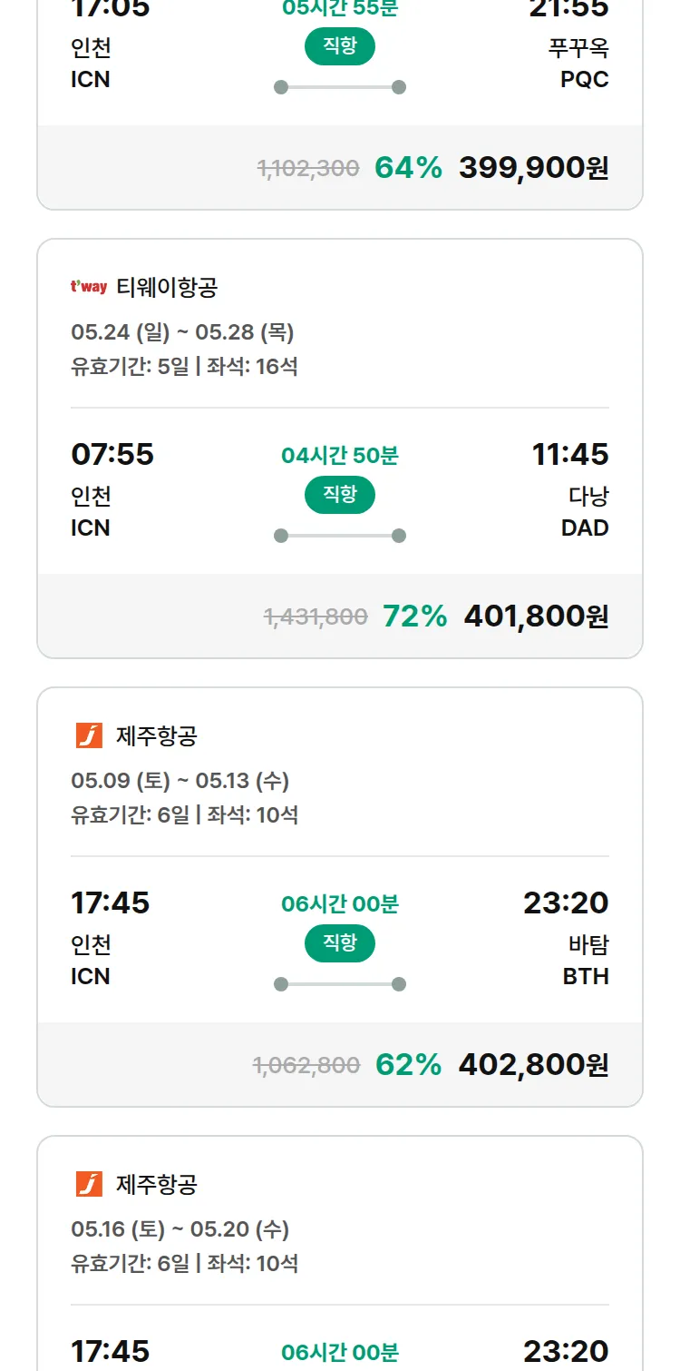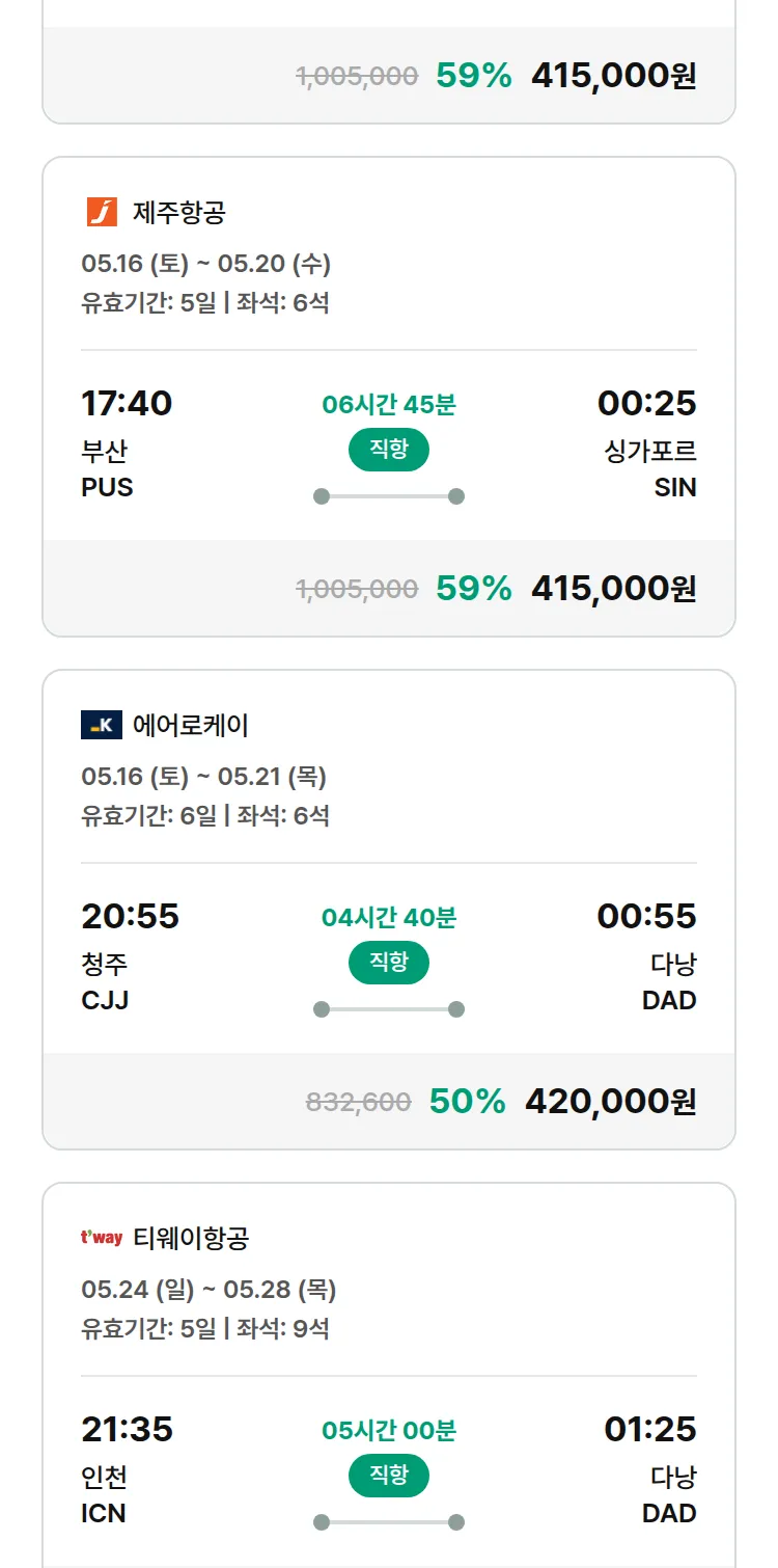 (4월 25일(토)) 모두투어 동남아 특가 항공권