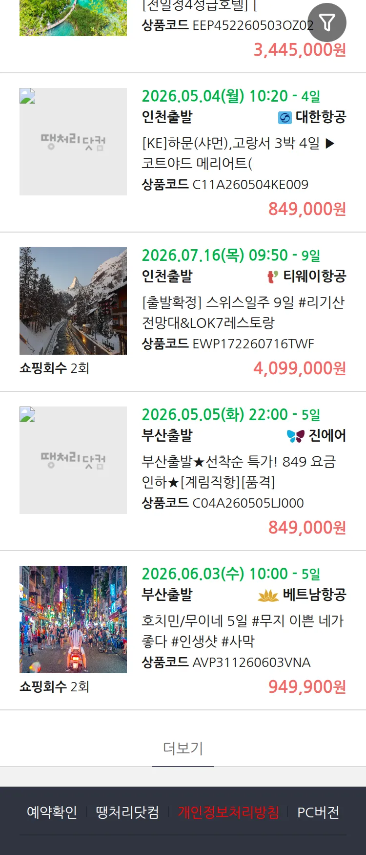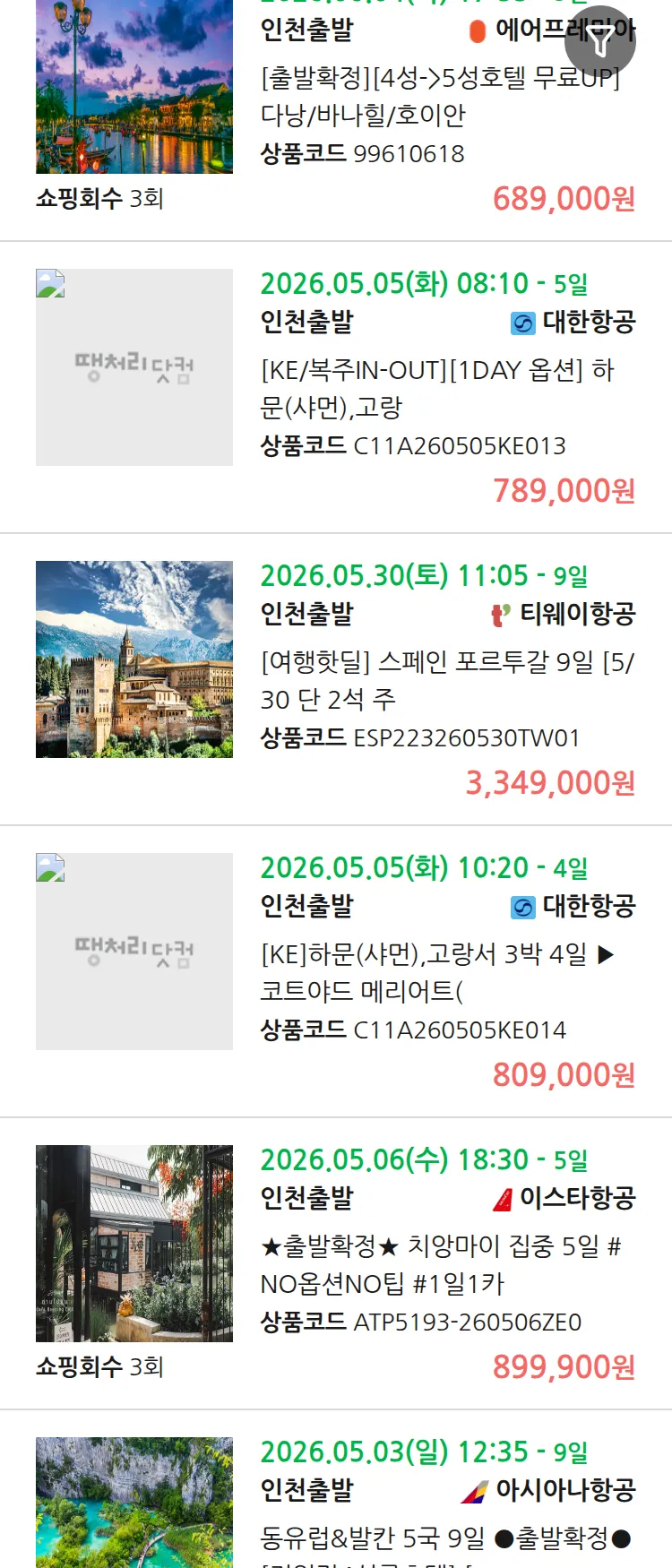 (4월 27일(월)) 땡처리 99.9% 확정 패키지