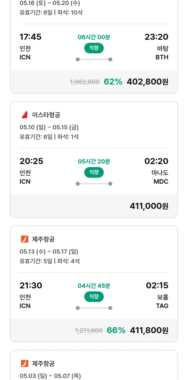 (4월 27일(월)) 땡처리 특가 항공권
