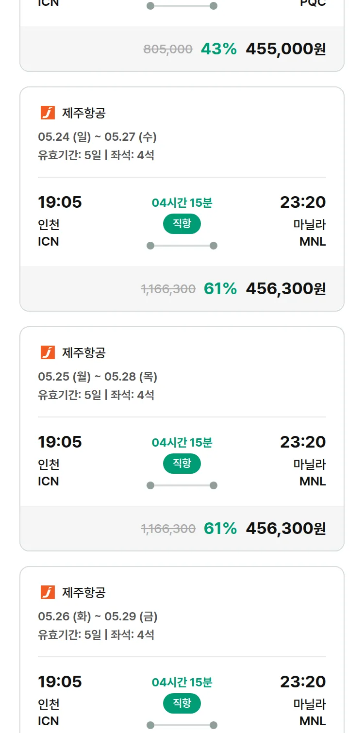 (4월 27일(월)) 땡처리 99.9% 확정 패키지