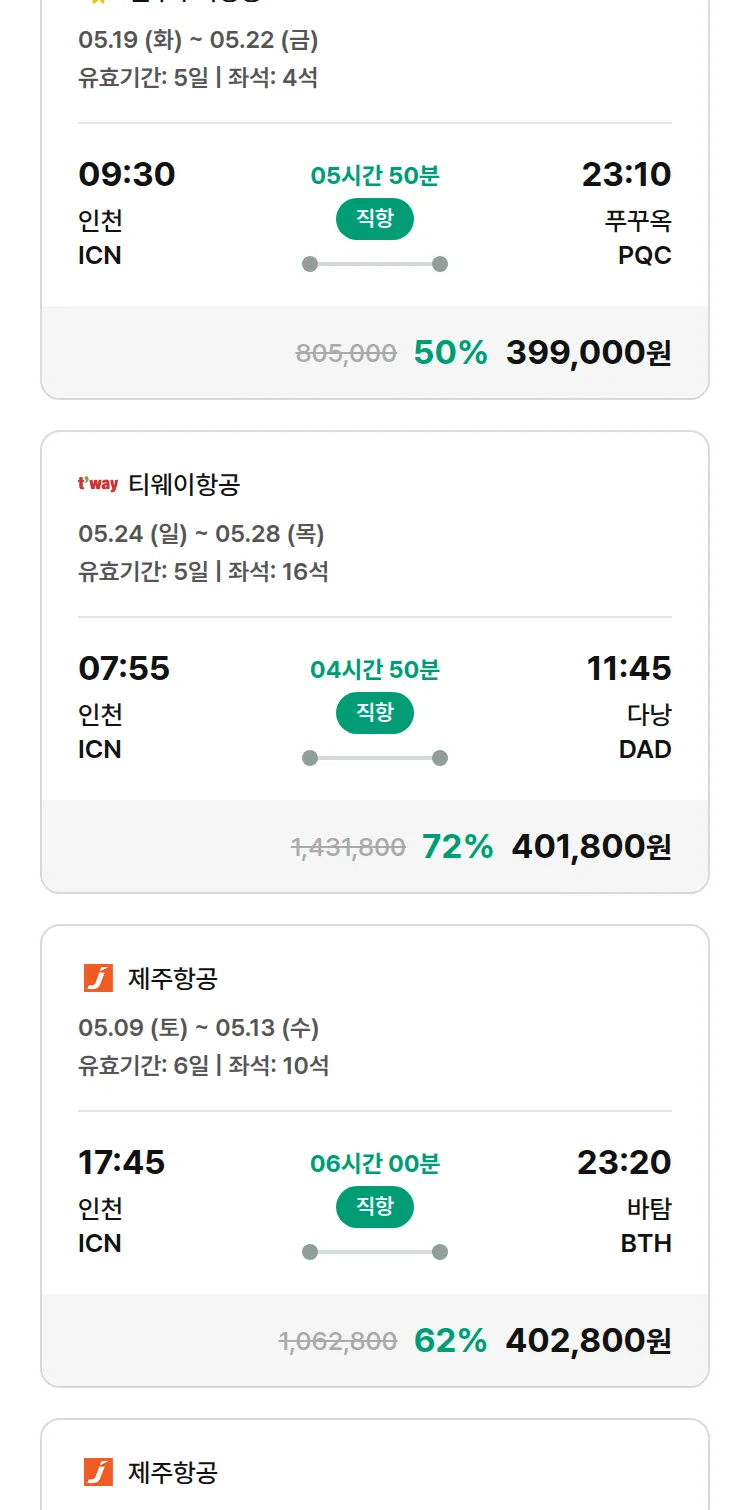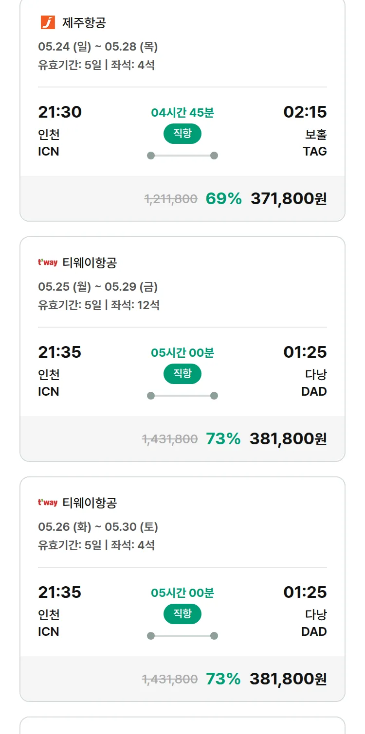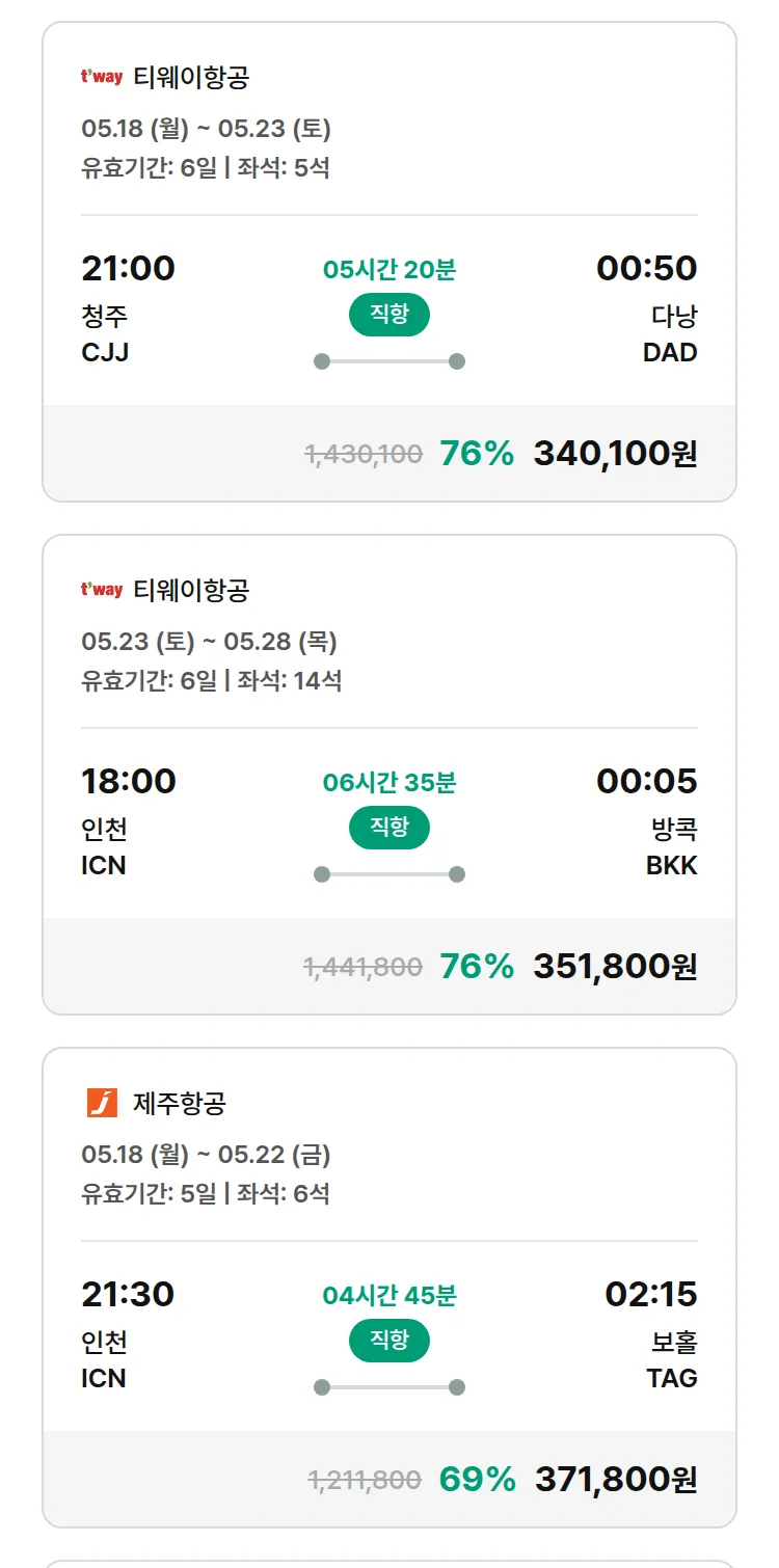 (4월 28일(화)) 땡처리 특가 항공권