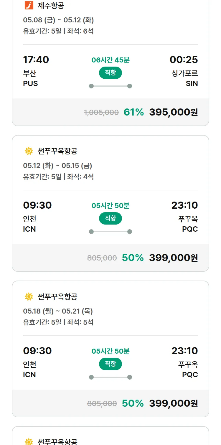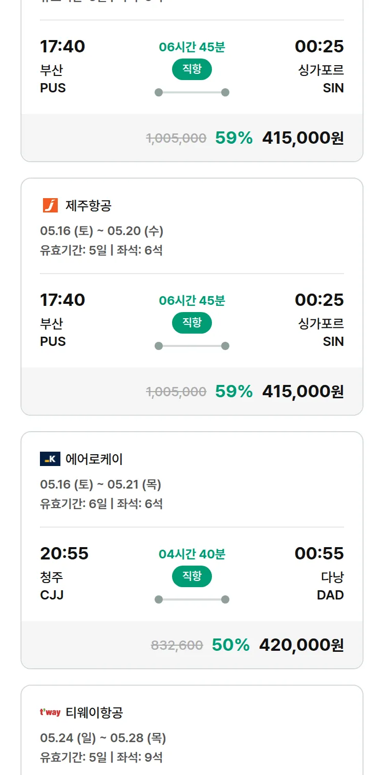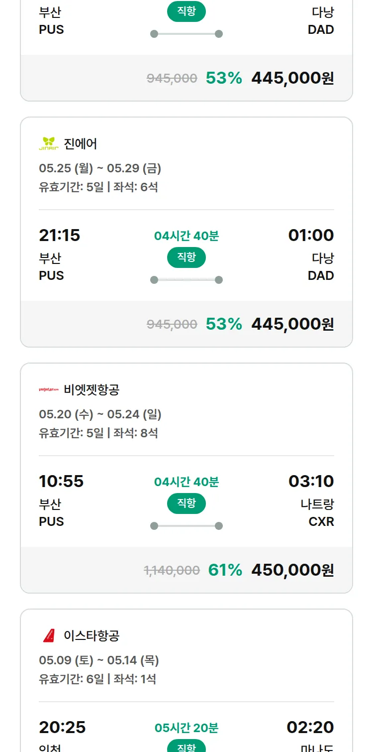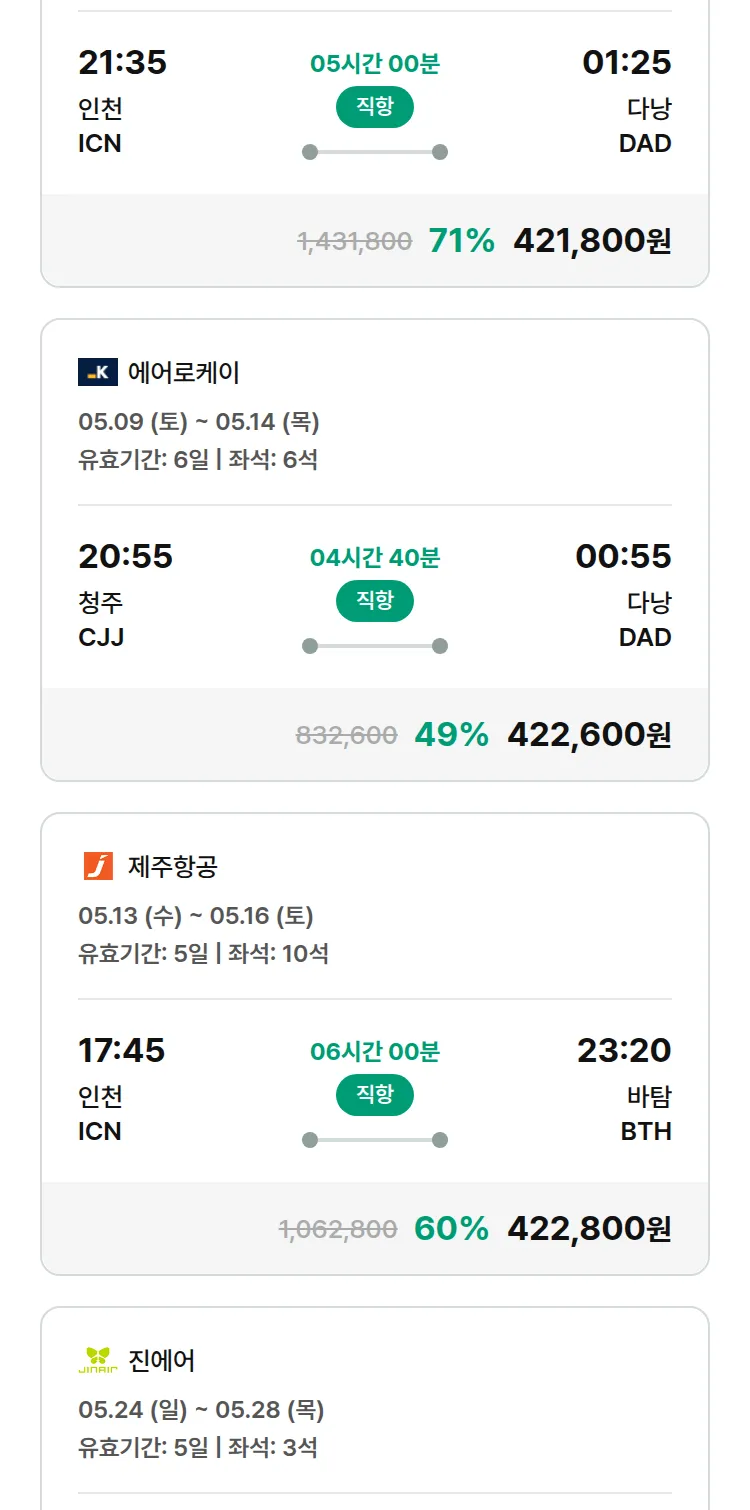 (4월 28일(화)) 땡처리 특가 항공권
