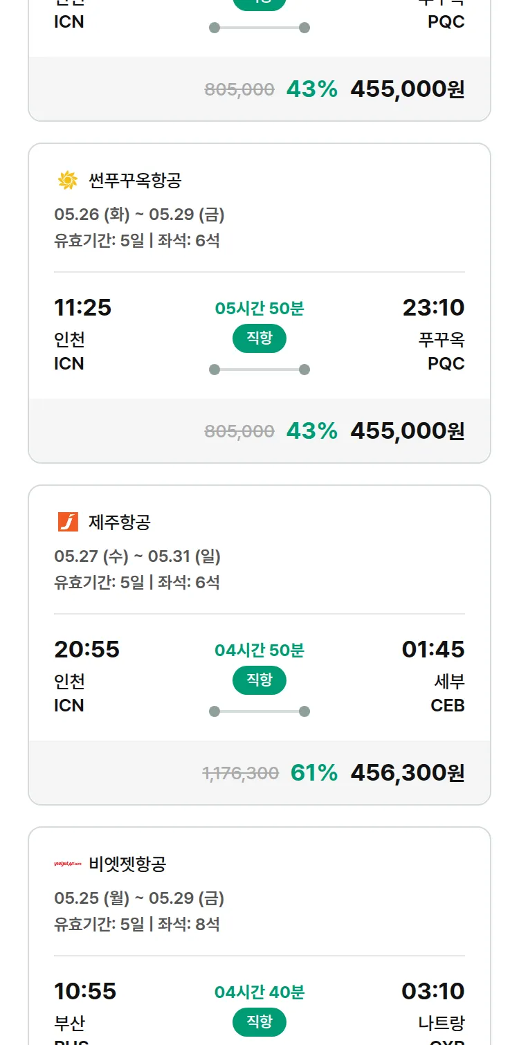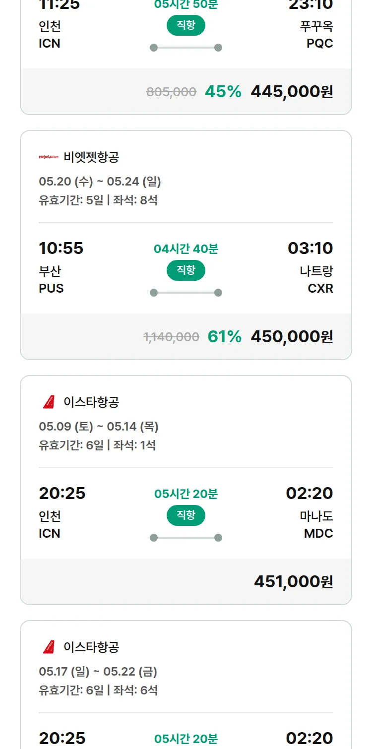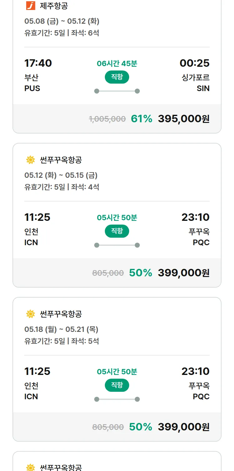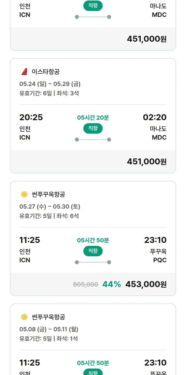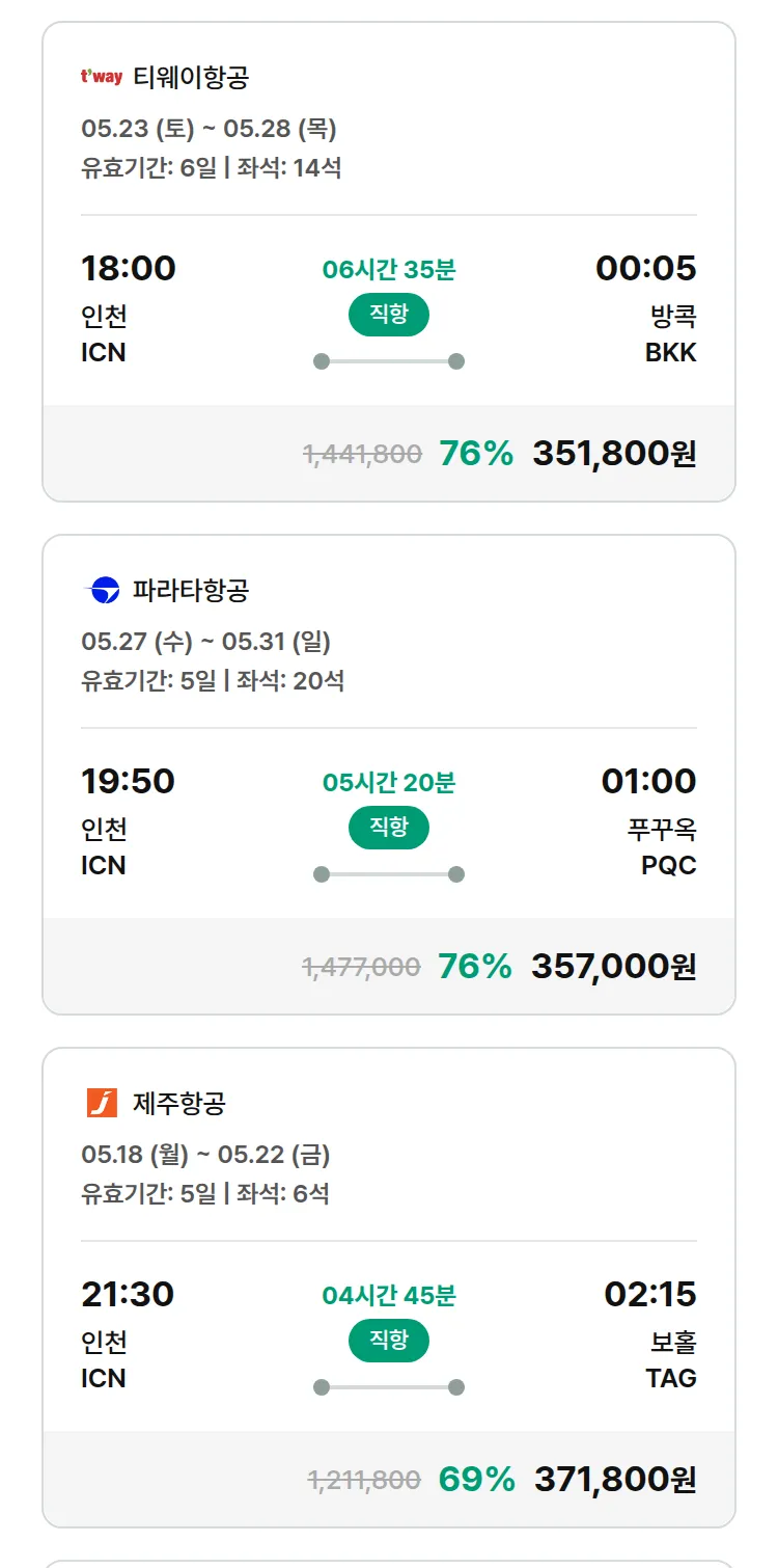 (4월 29일(수)) 땡처리 특가 항공권