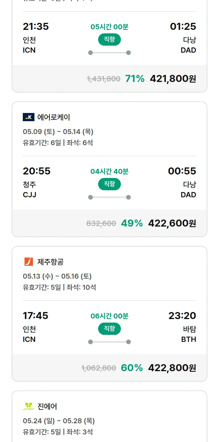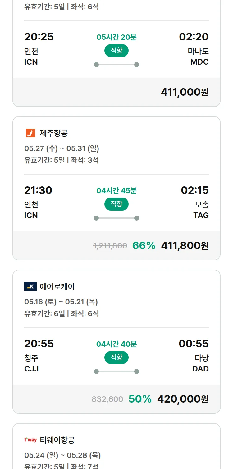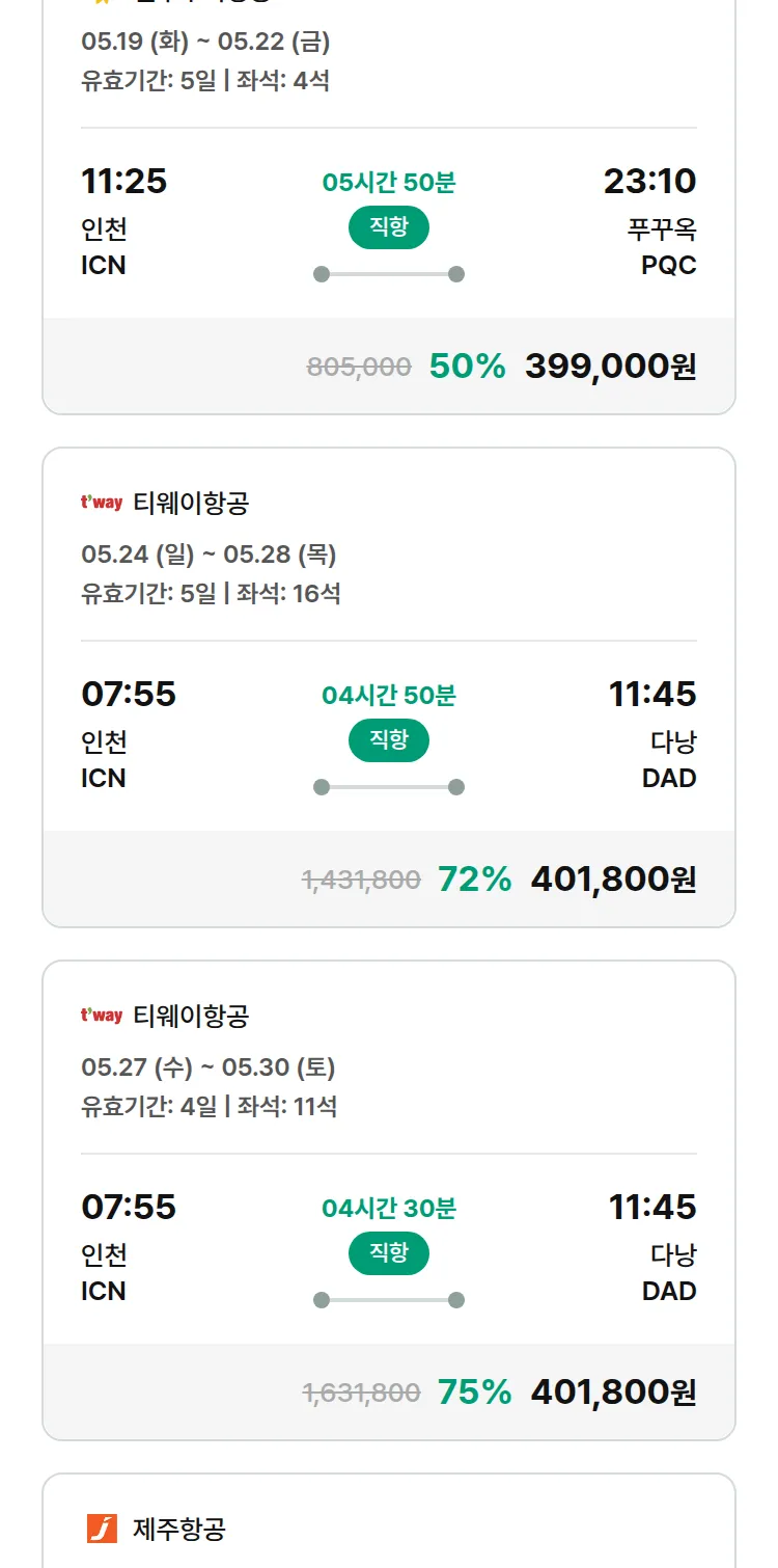 (4월 28일(화)) 땡처리 특가 항공권