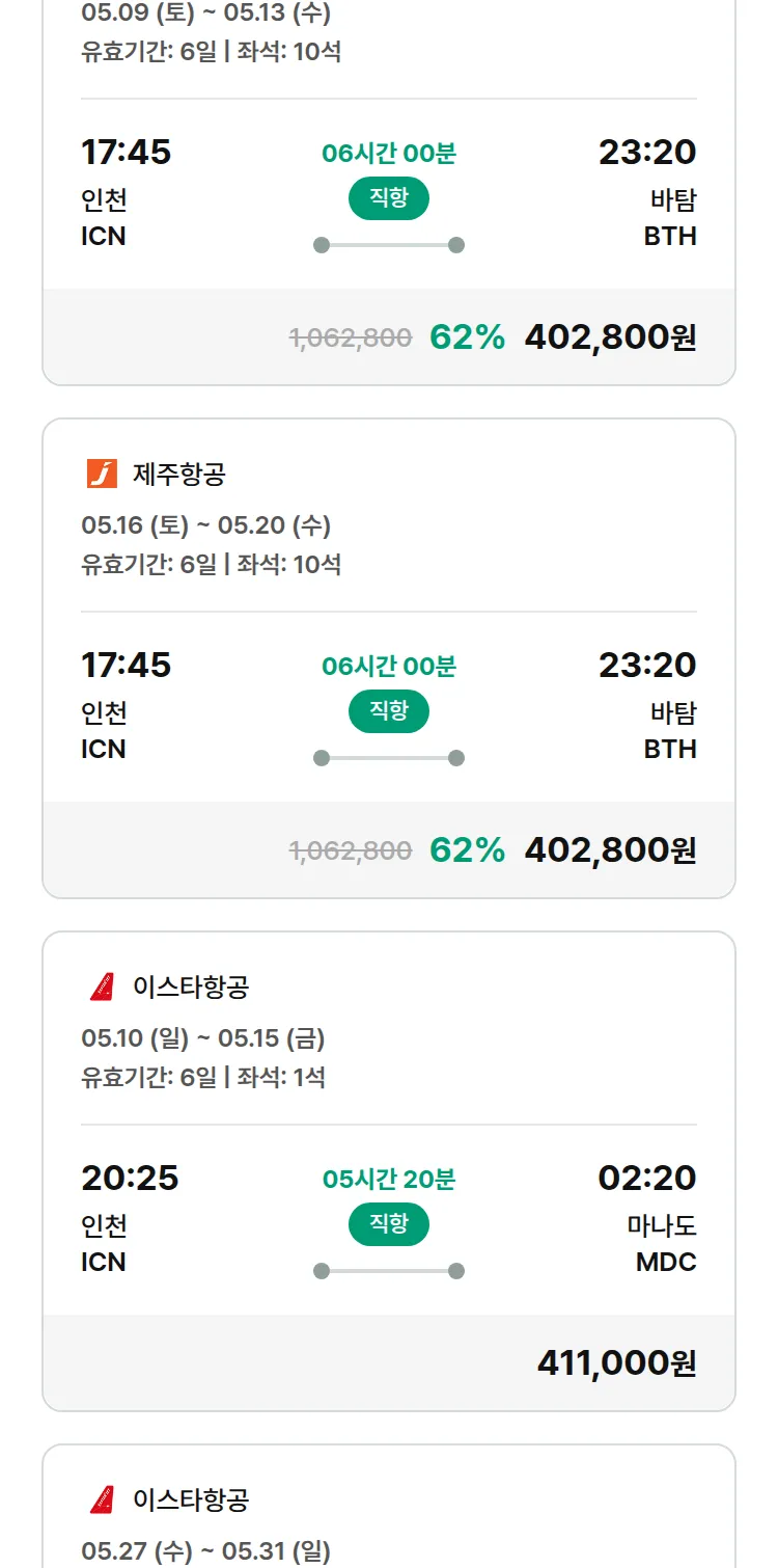 (4월 27일(월)) 땡처리 특가 항공권