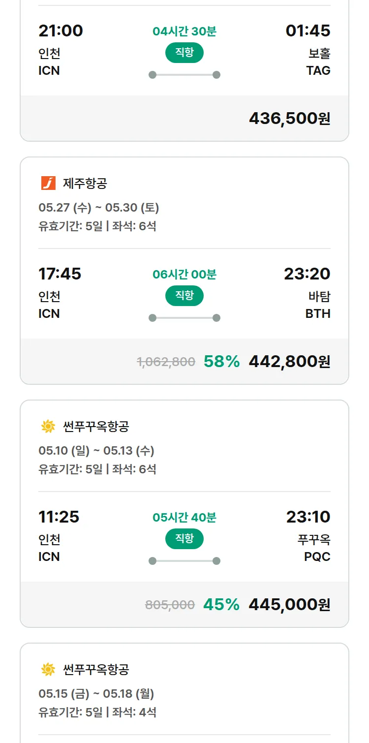 (4월 28일(화)) 모두투어 동남아 특가 항공권