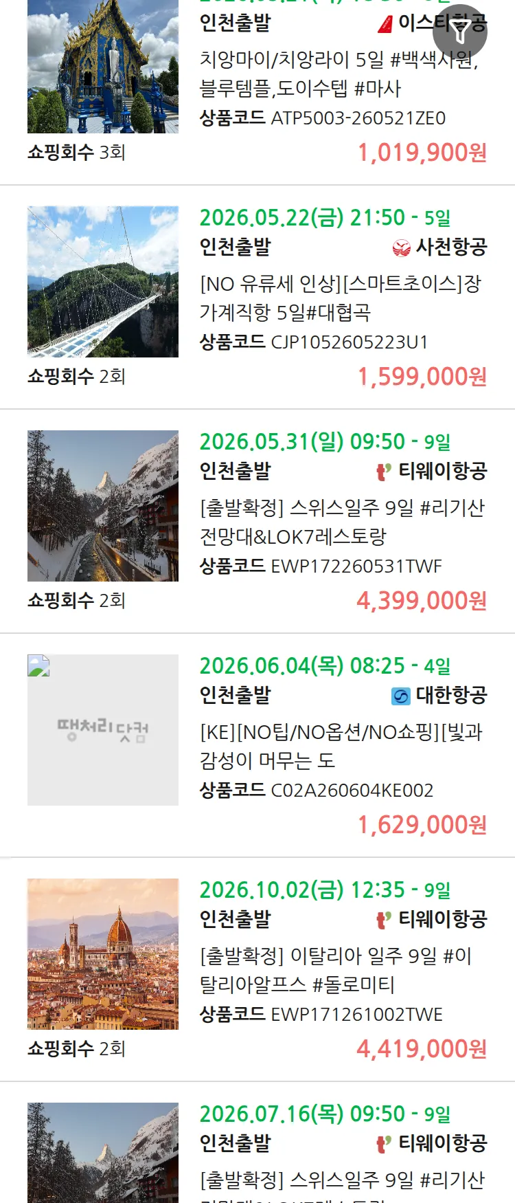 (4월 30일(목)) 땡처리 99.9% 확정 패키지