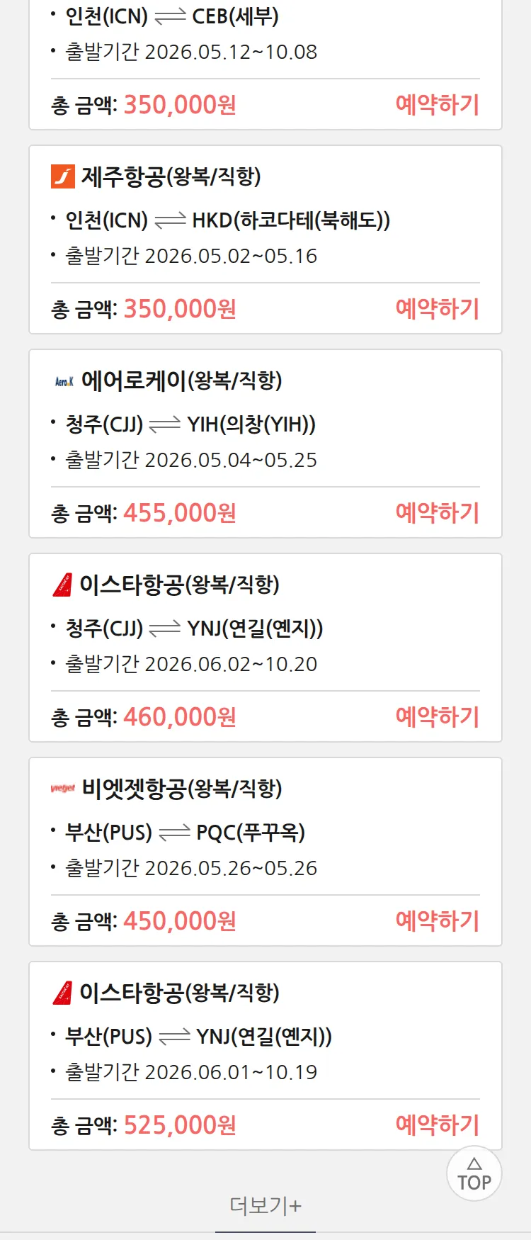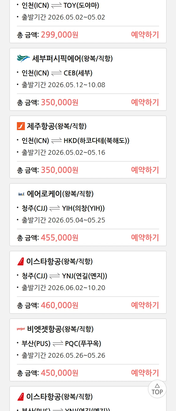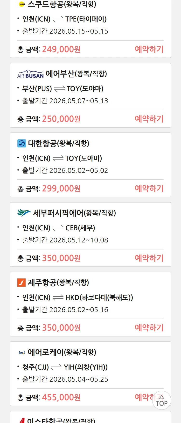 (4월 30일(목)) 땡처리 특가 항공권
