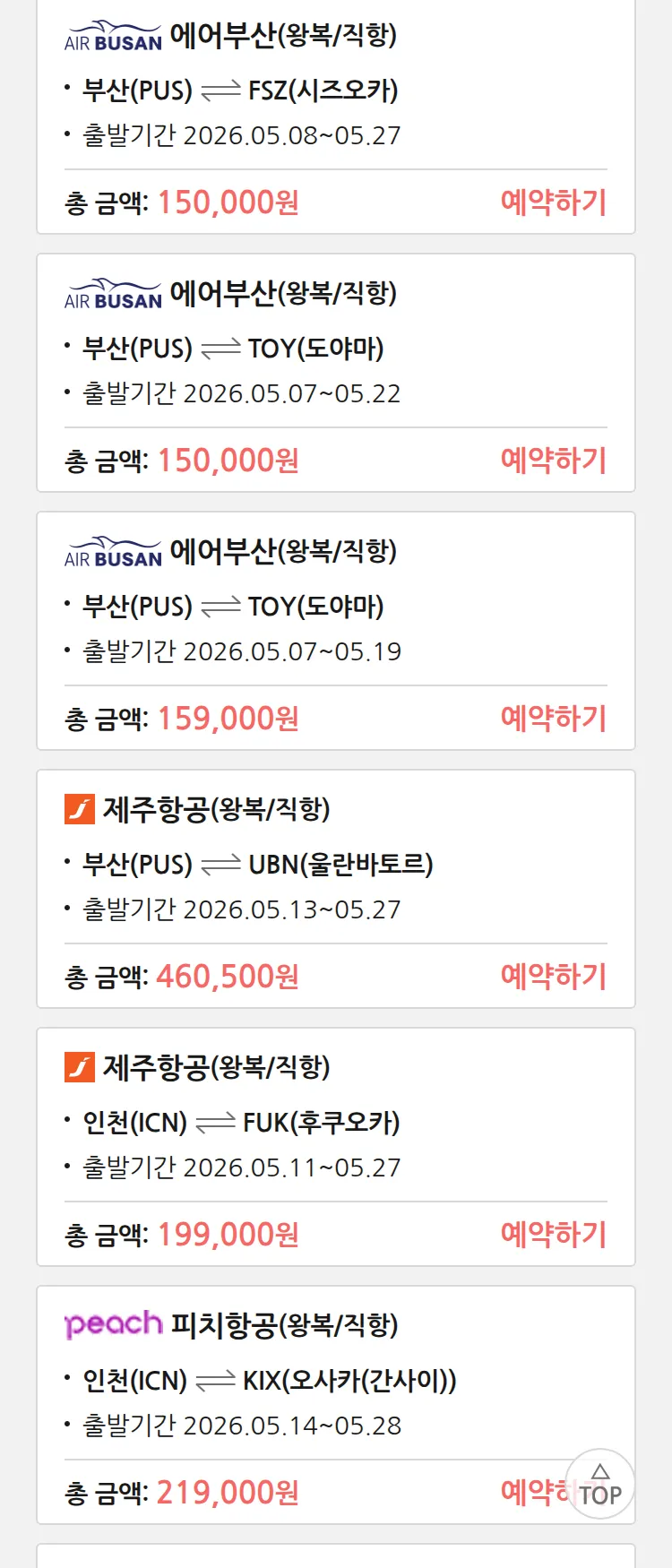 (5월1일(금)) 땡처리 특가 항공권