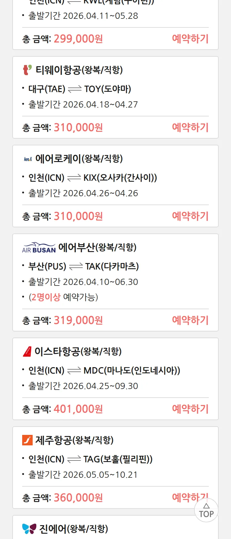 (4월4일(토)) 땡처리 99.9% 확정 패키지