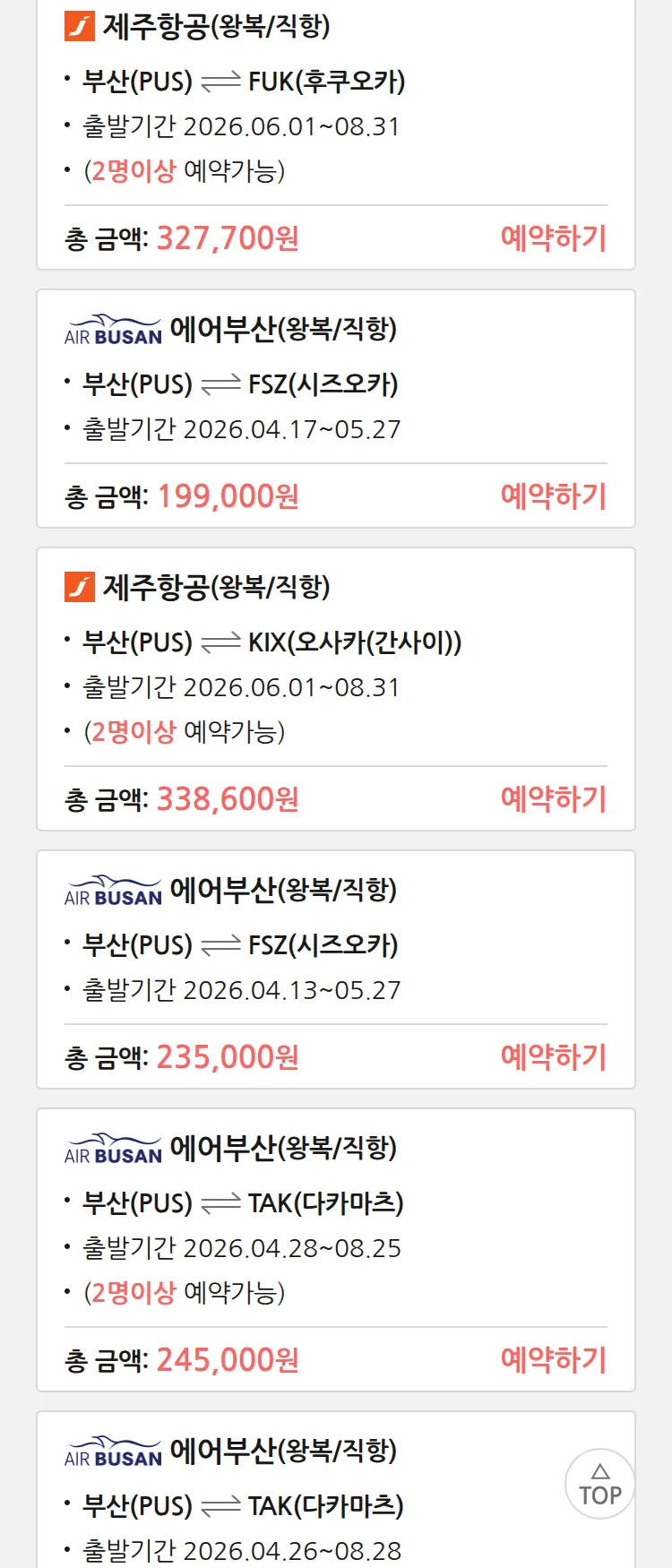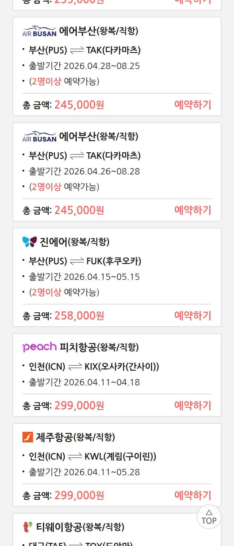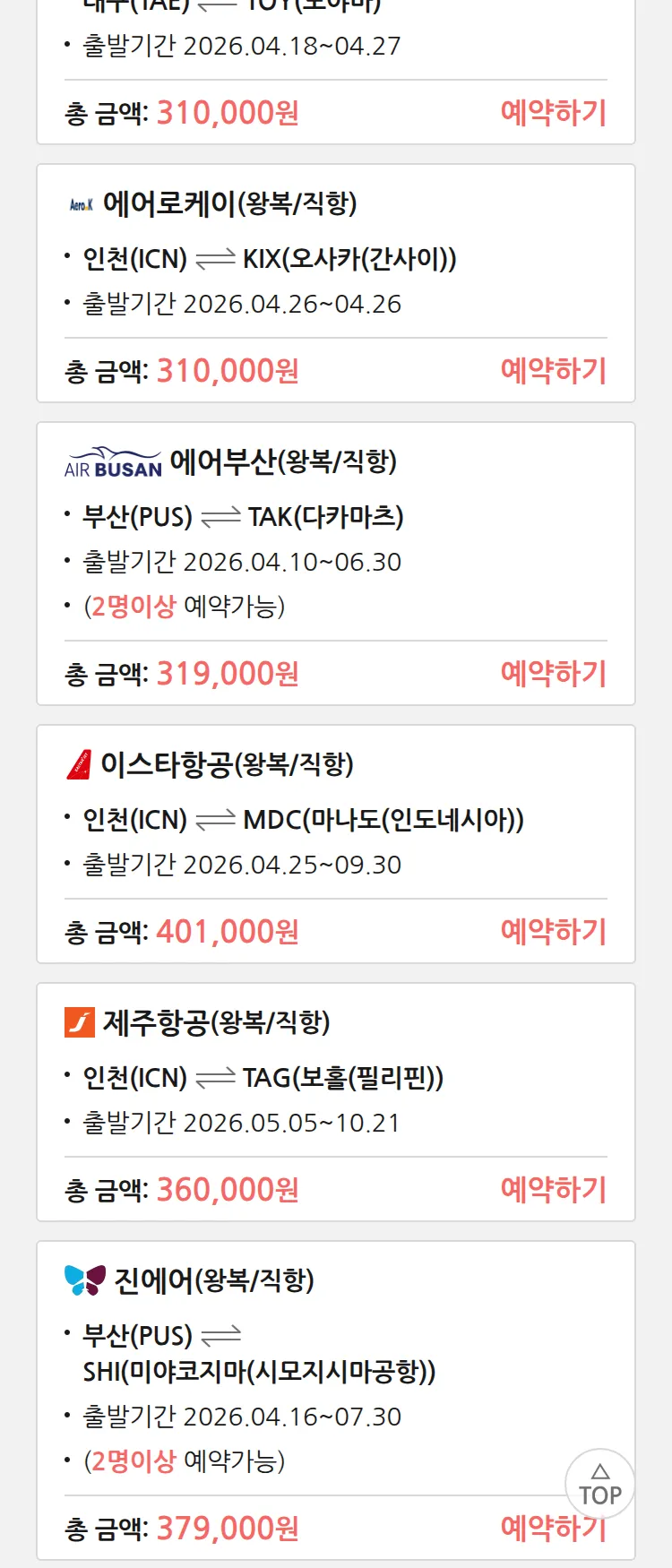 (4월6일(월)) 땡처리 특가 항공권