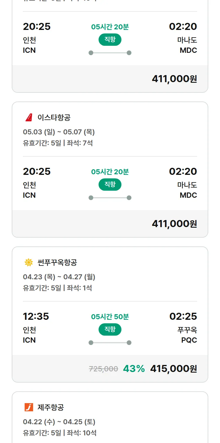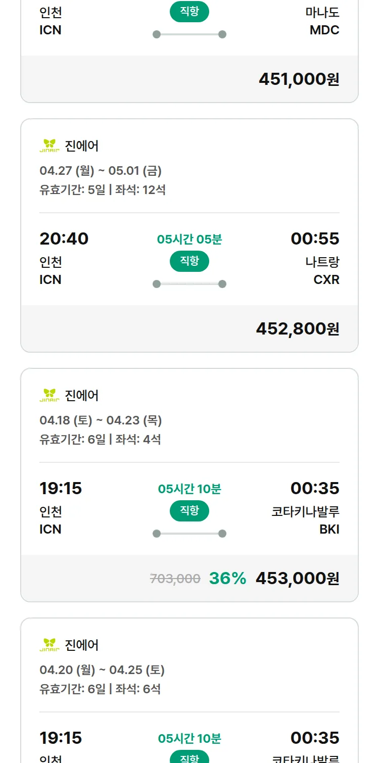 (4월3일(금)) 땡처리 특가 항공권