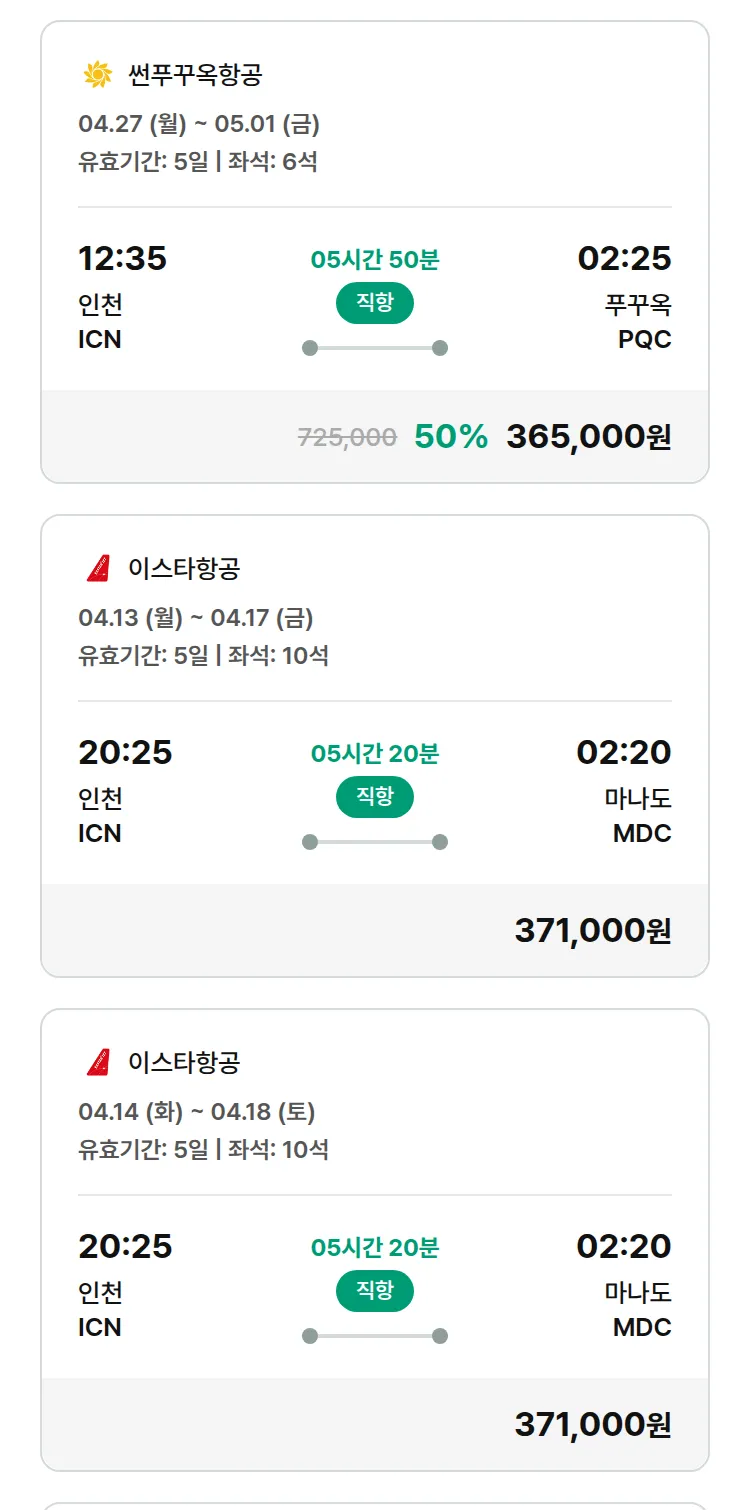 (4월6일(월)) 땡처리 특가 항공권
