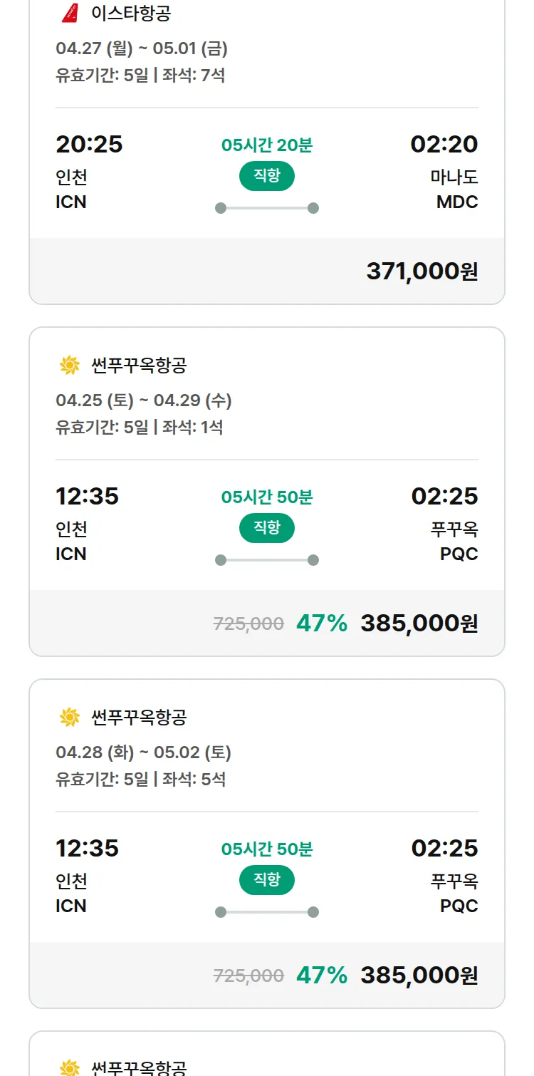 (4월5일(일)) 땡처리 특가 항공권