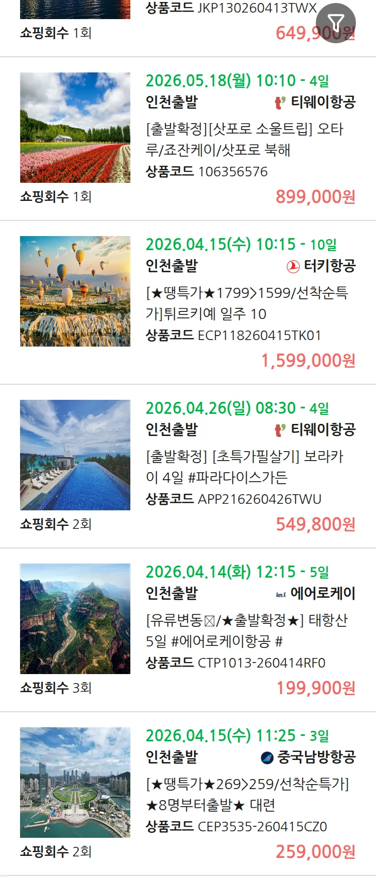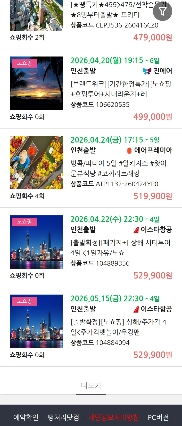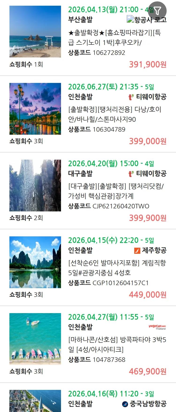 (4월6일(월)) 땡처리 99.9% 확정 패키지