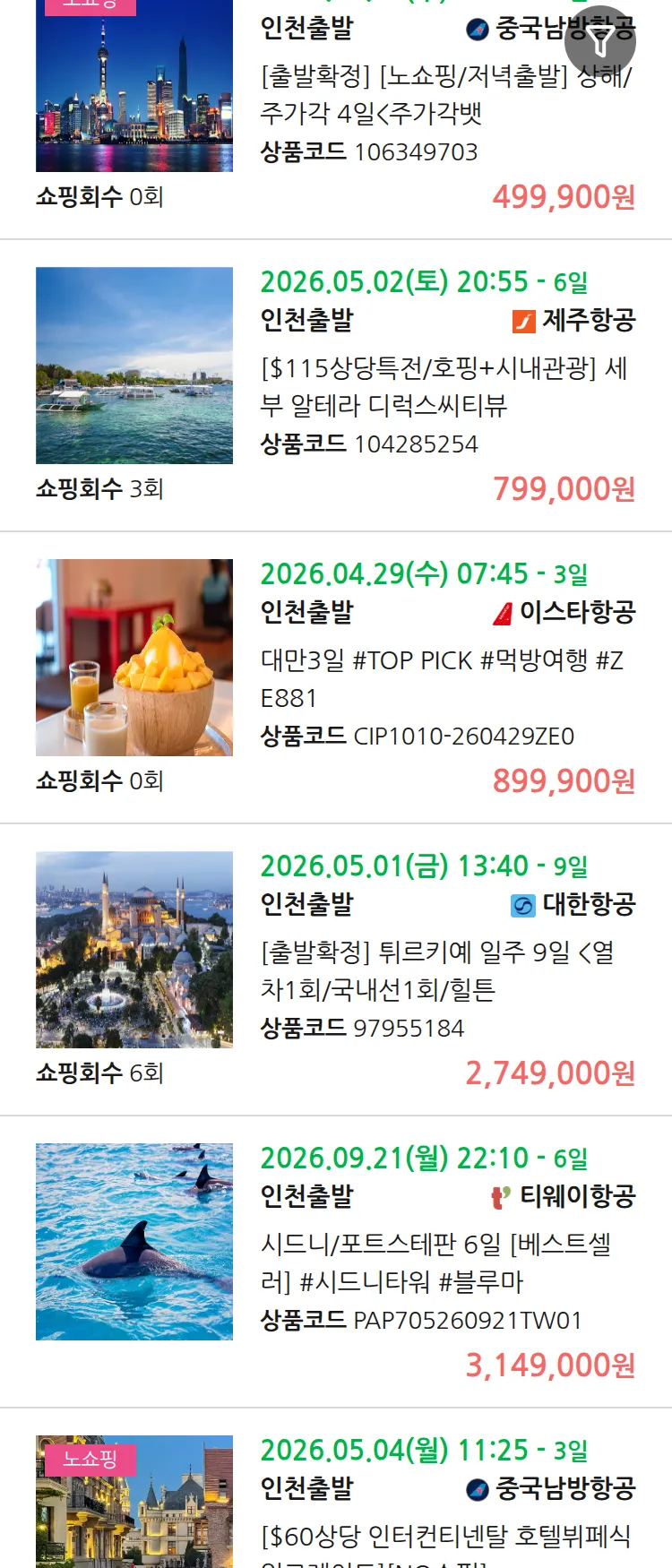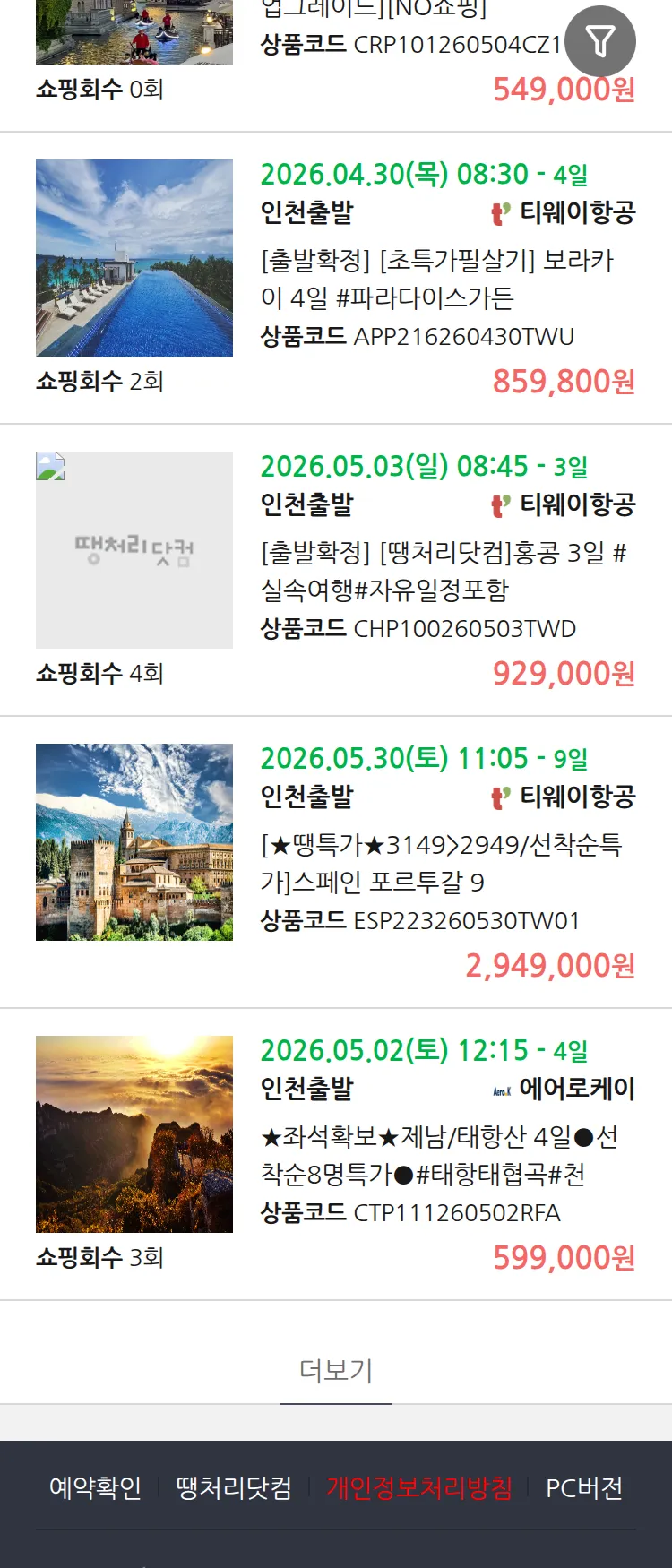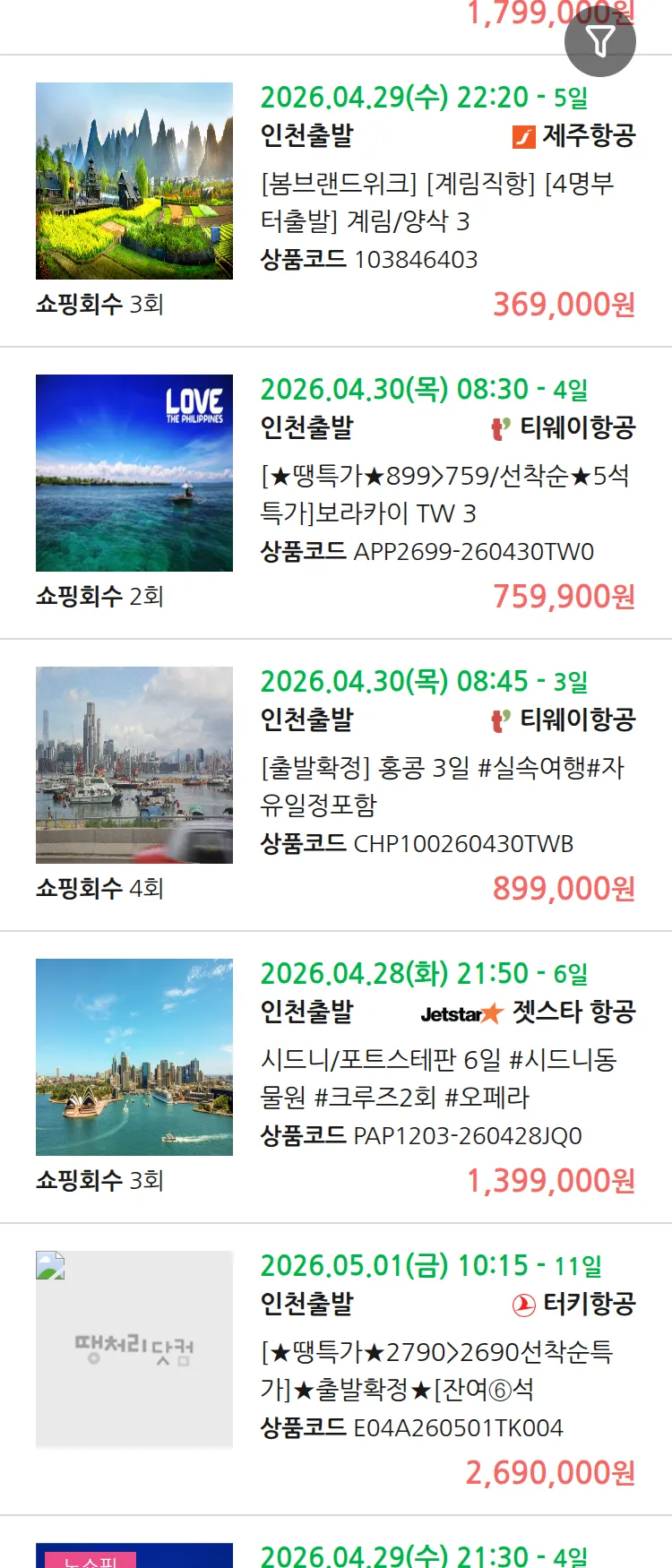 (4월8일(수)) 땡처리 99.9% 확정 패키지