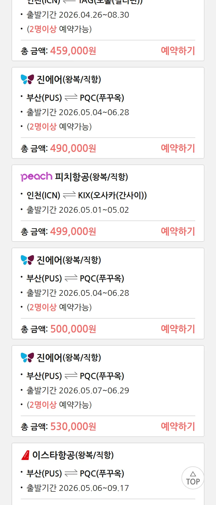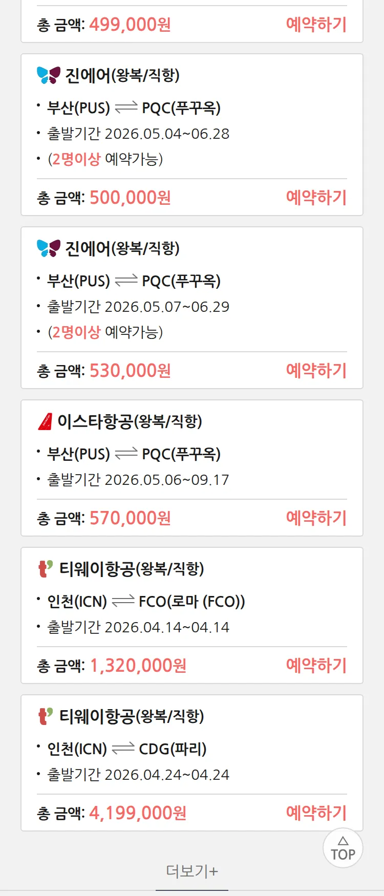 (4월6일(월)) 땡처리 99.9% 확정 패키지