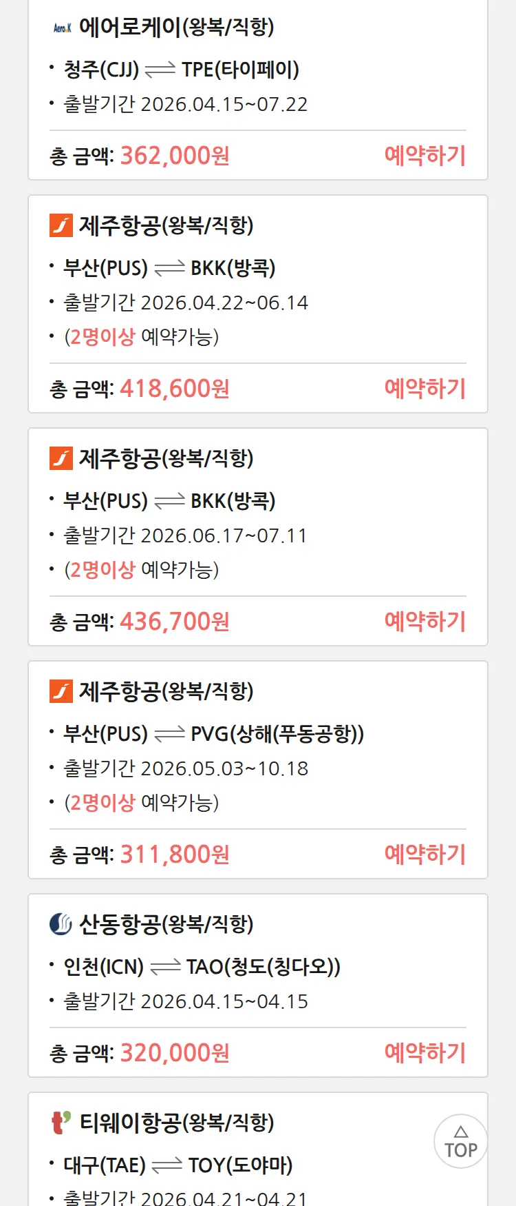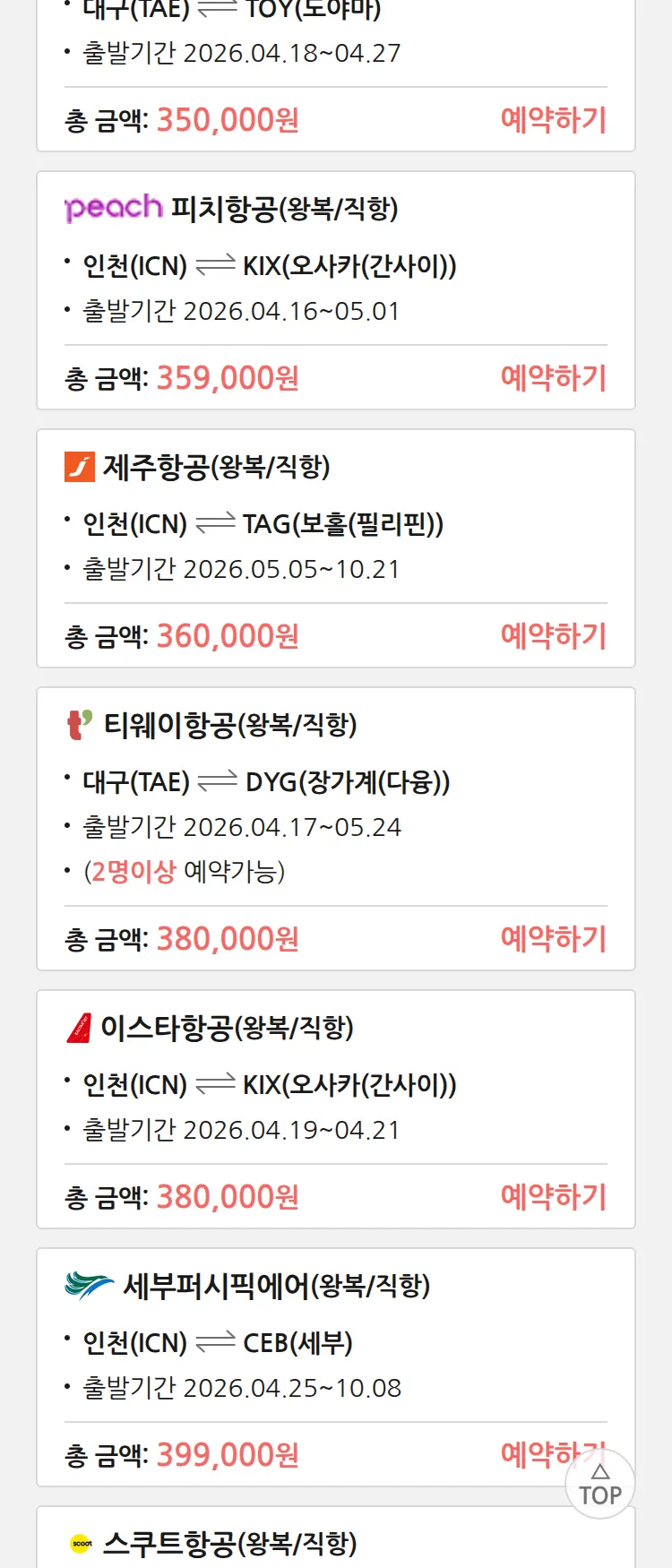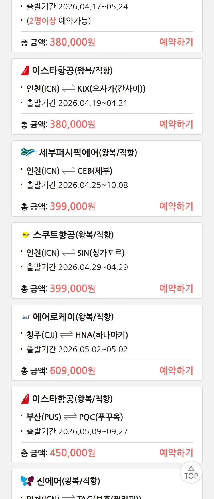 (4월6일(월)) 땡처리 특가 항공권