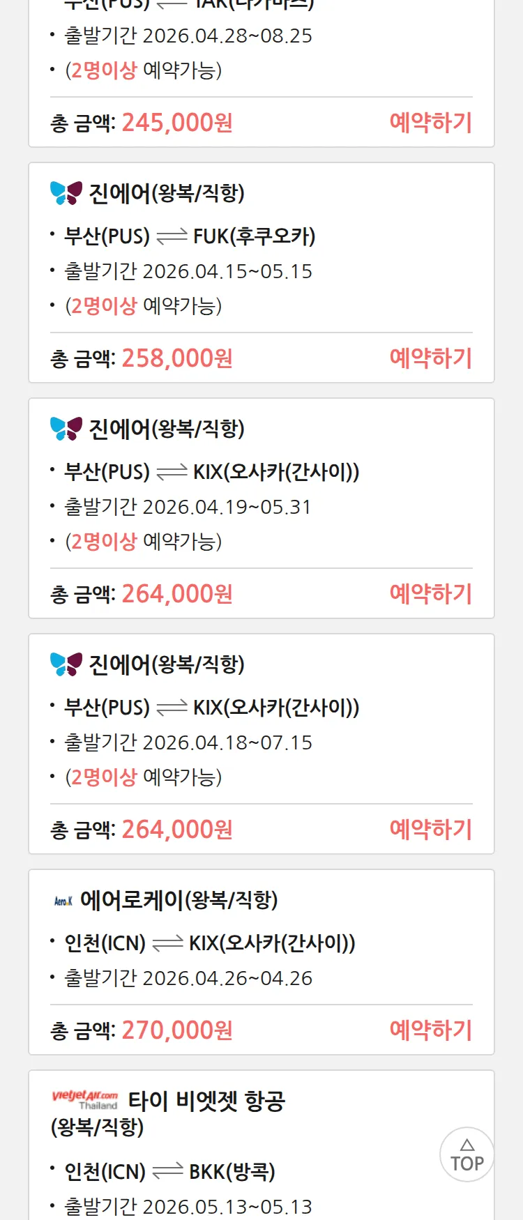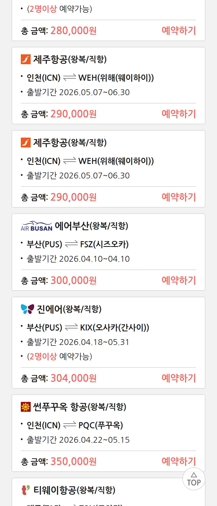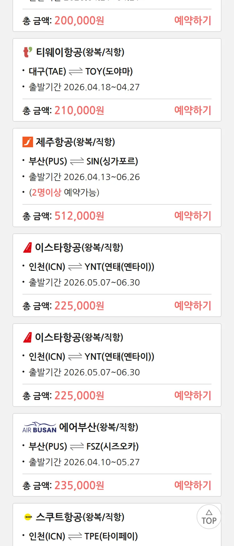 (4월6일(월)) 땡처리 특가 항공권
