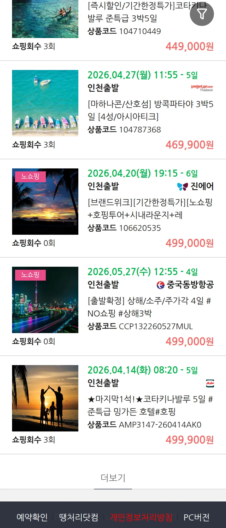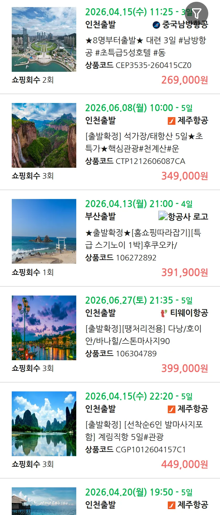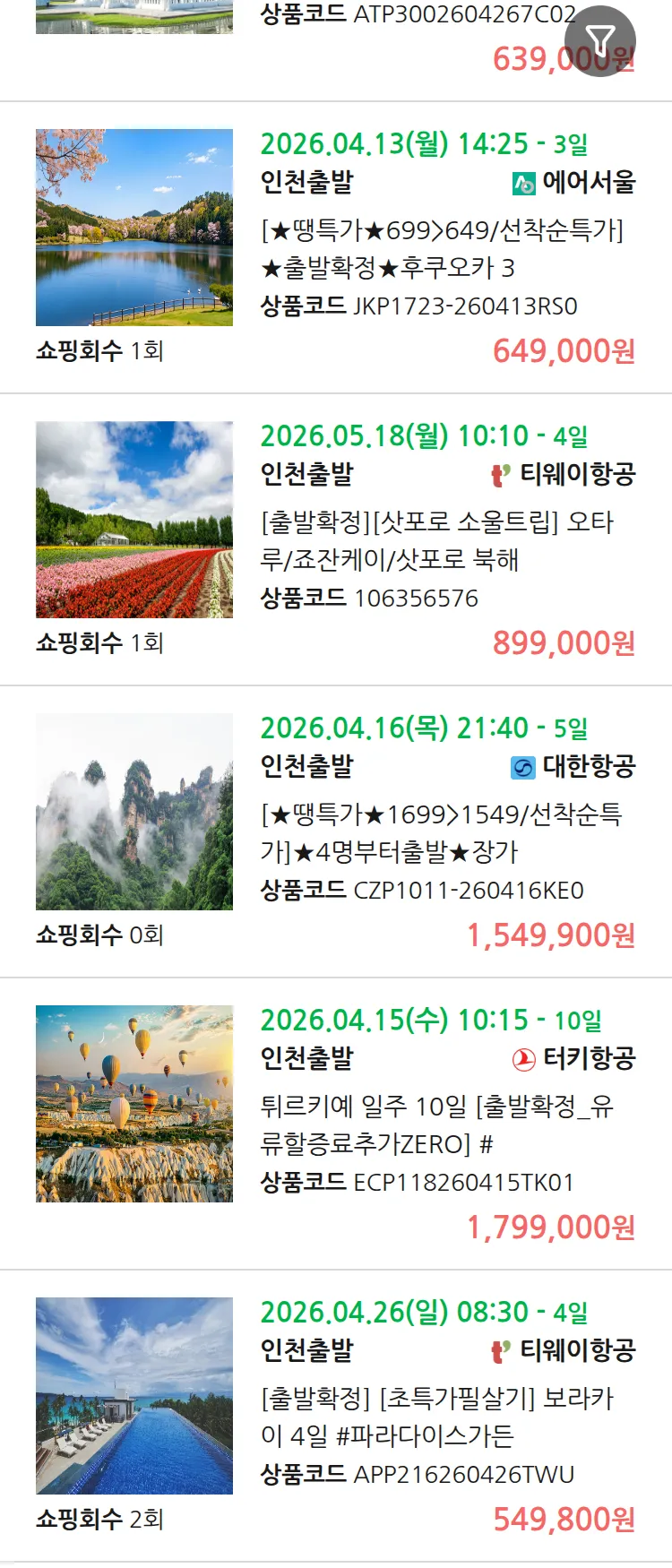 (4월8일(수)) 땡처리 99.9% 확정 패키지
