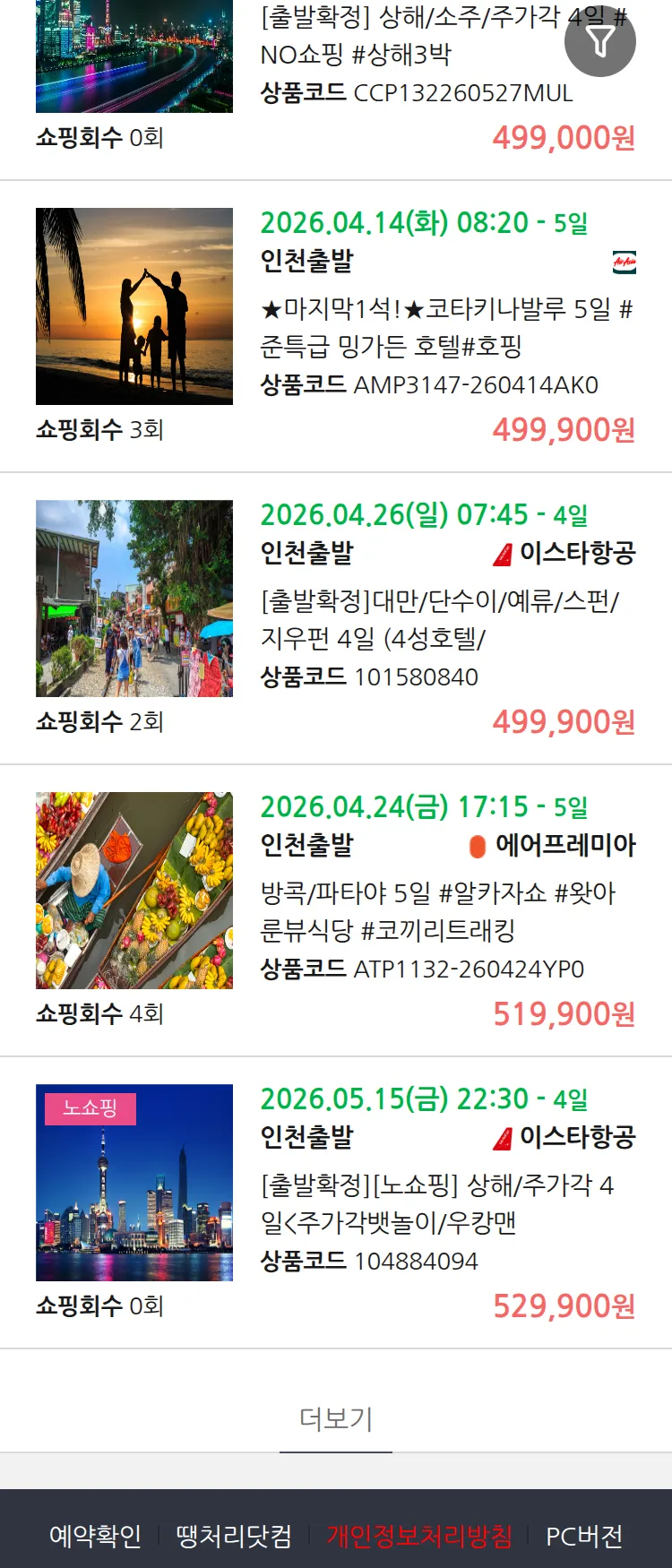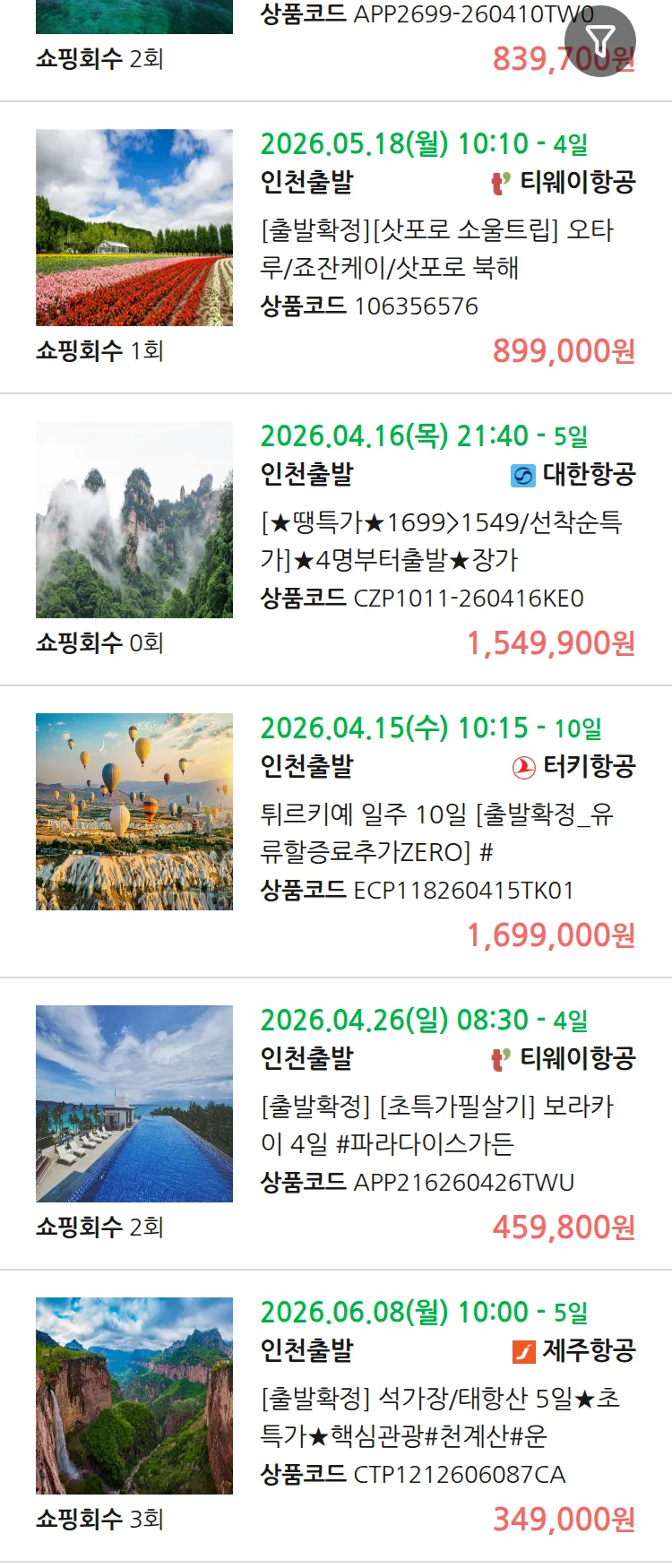 (4월8일(수)) 땡처리 99.9% 확정 패키지
