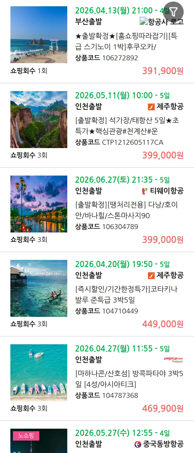 (4월9일(목)) 땡처리 99.9% 확정 패키지