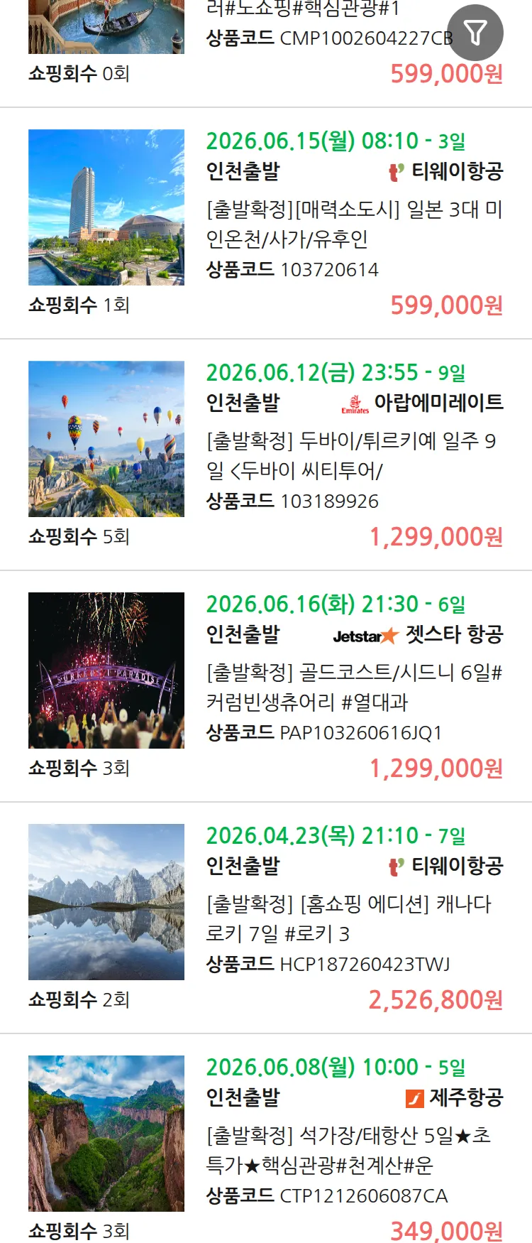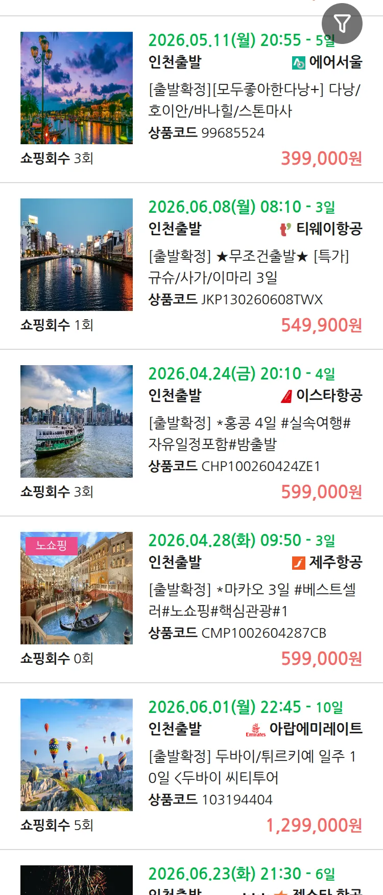 (4월8일(수)) 땡처리 99.9% 확정 패키지