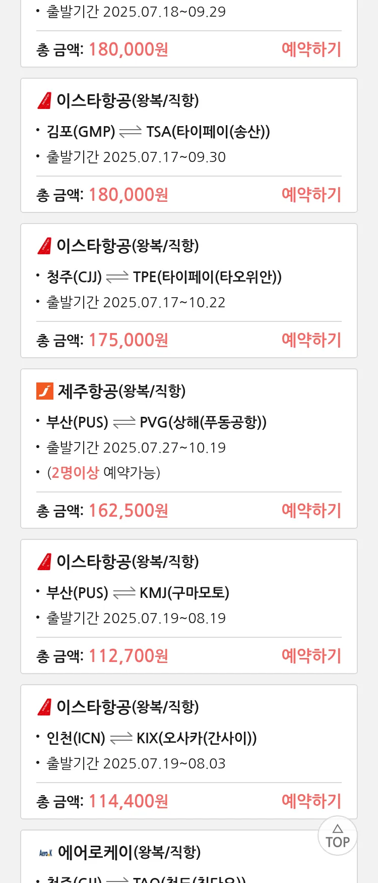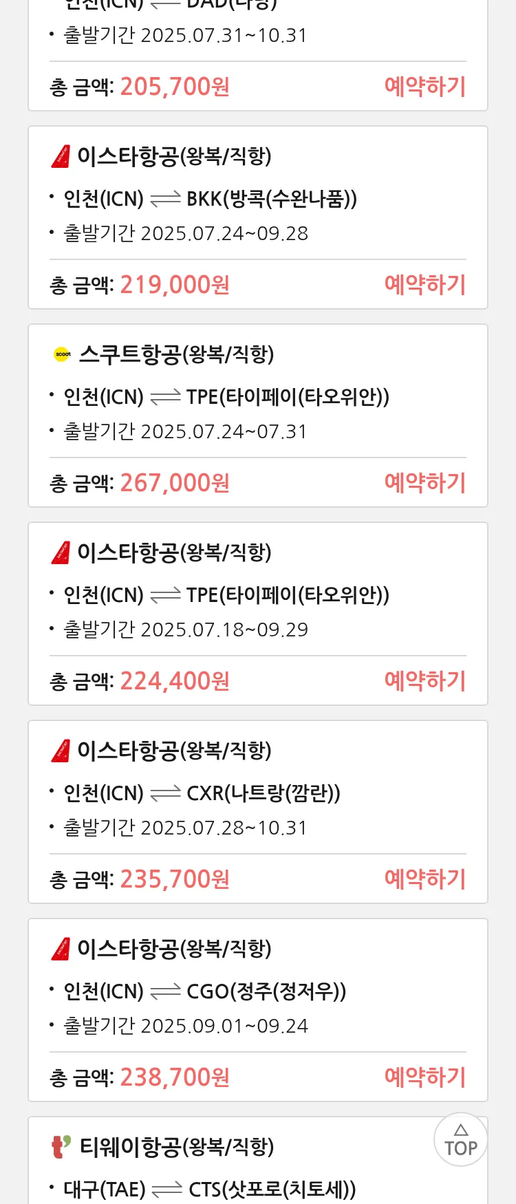(7월 15일(화)) 모두투어 동남아 특가 항공권