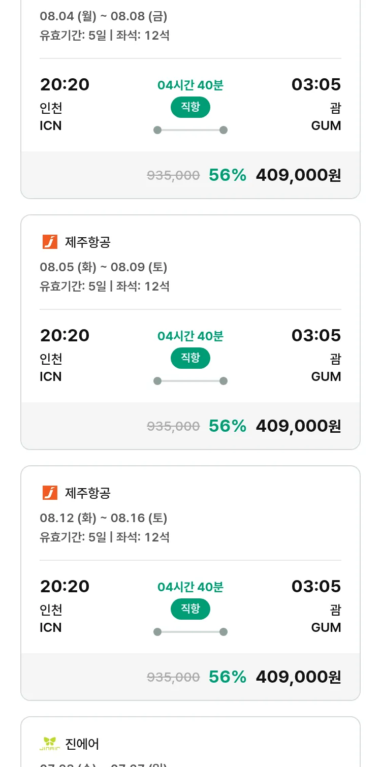 (7월9일(수)) 땡처리 특가 항공권