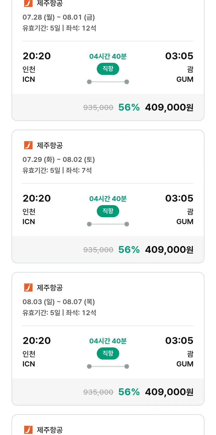 (7월 10일(목)) 땡처리 특가 항공권