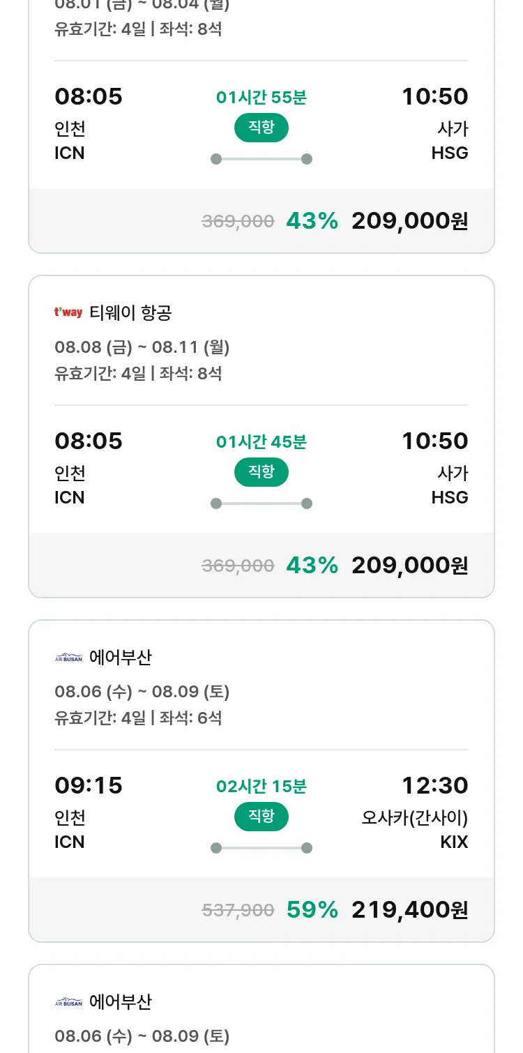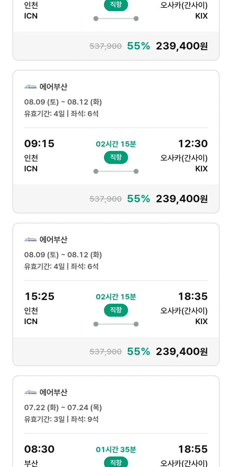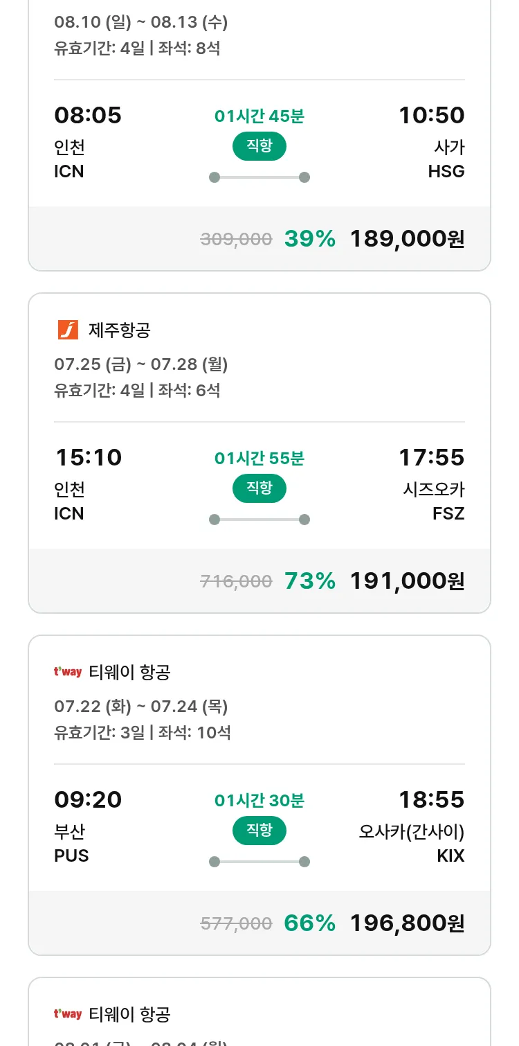 (7월 12일(토)) 땡처리 특가 항공권