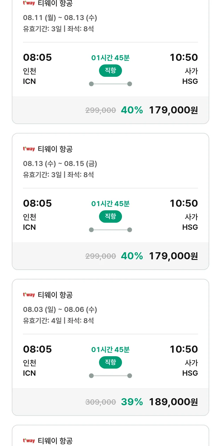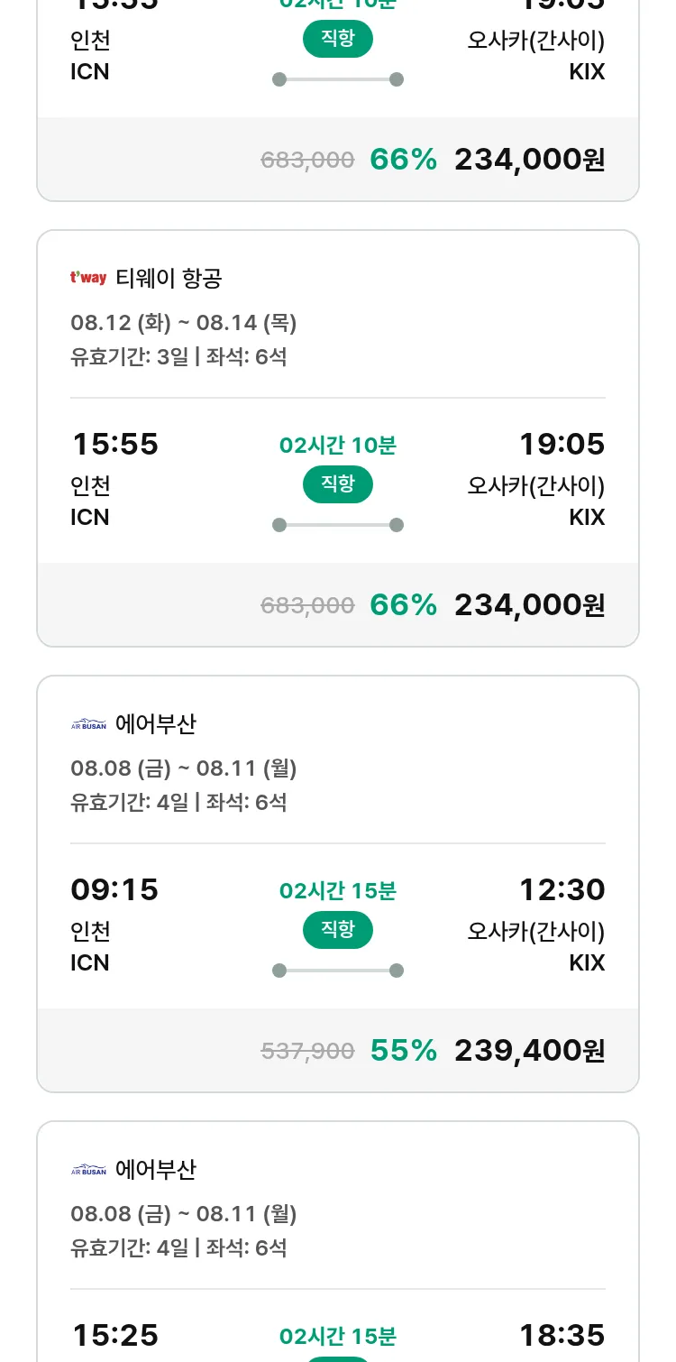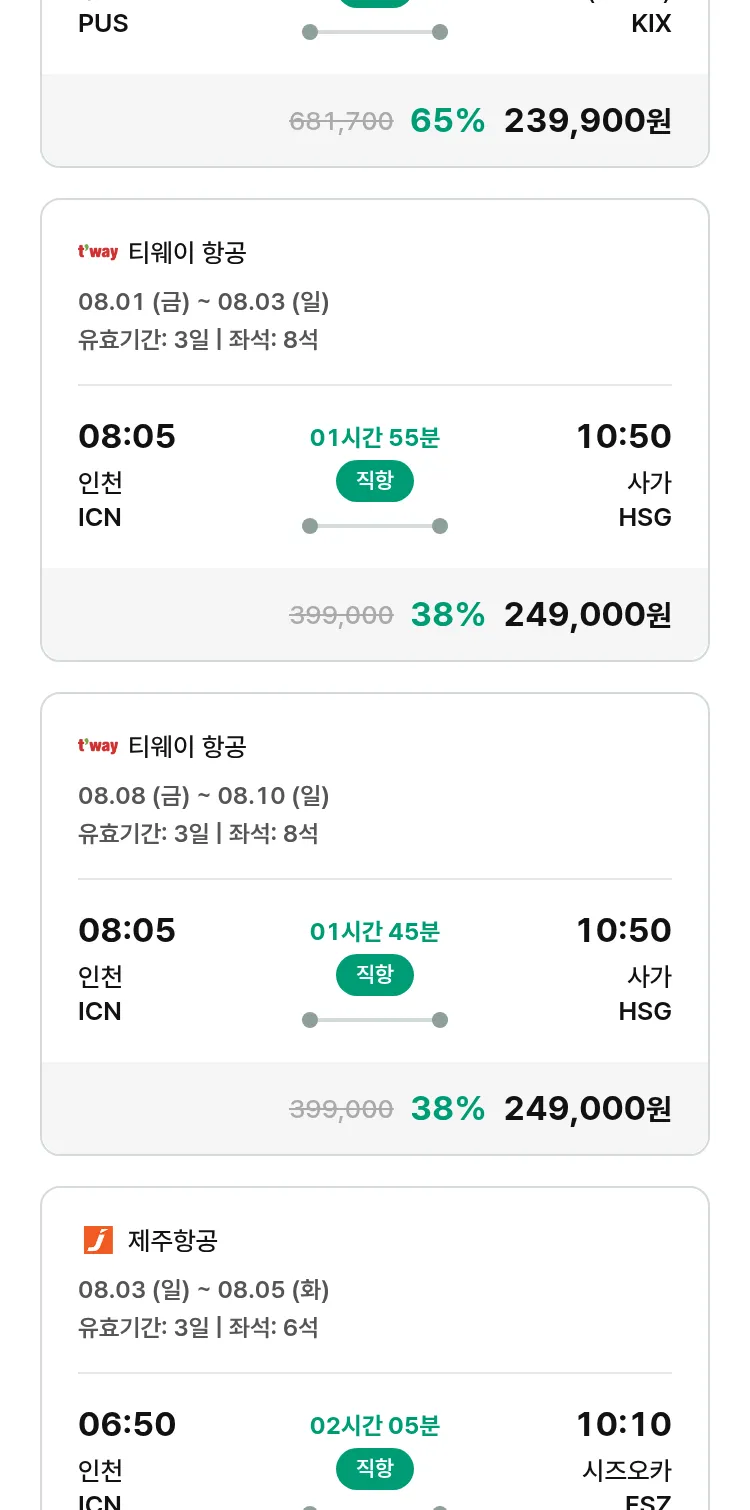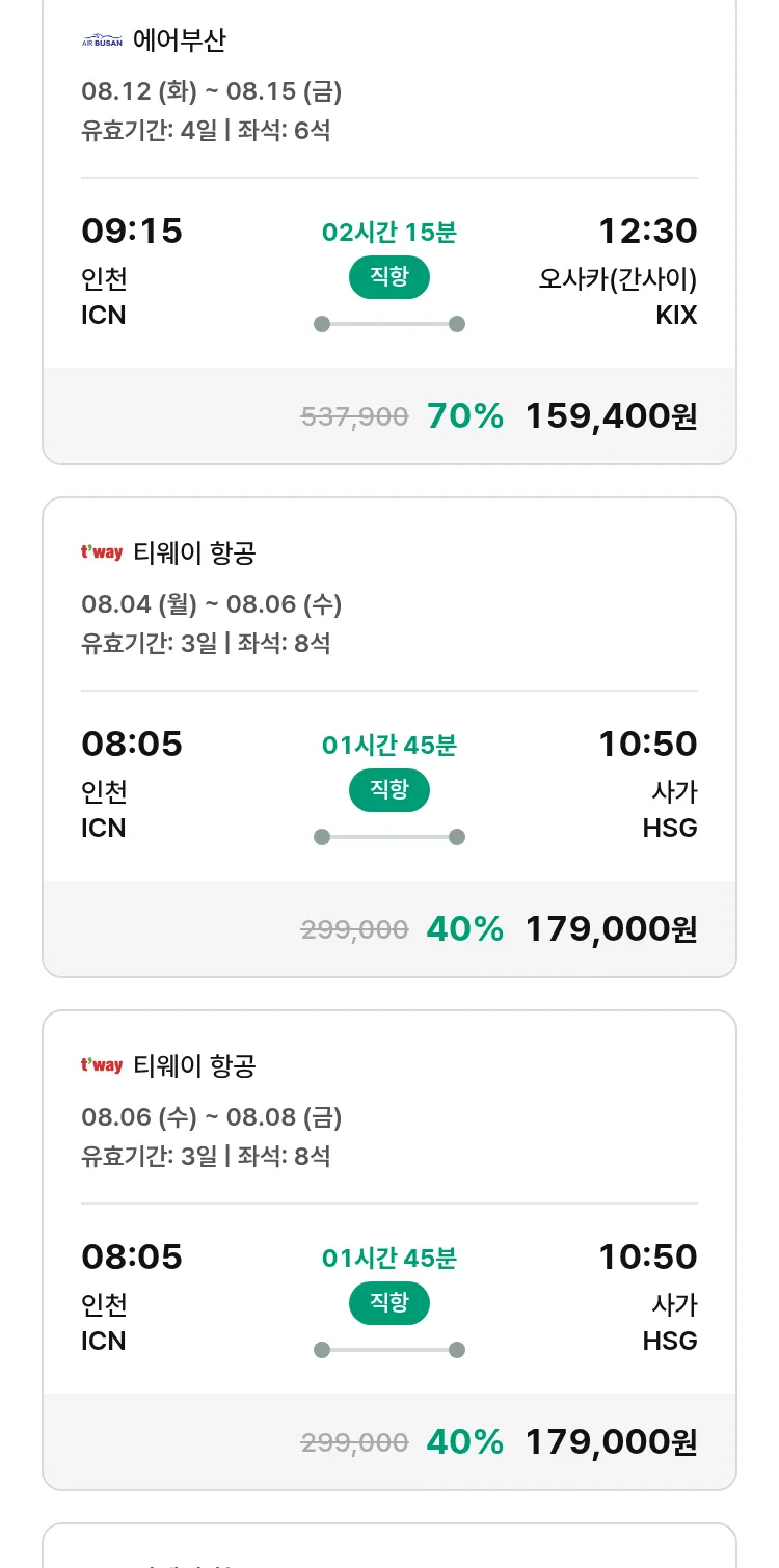 (7월 12일(토)) 땡처리 특가 항공권