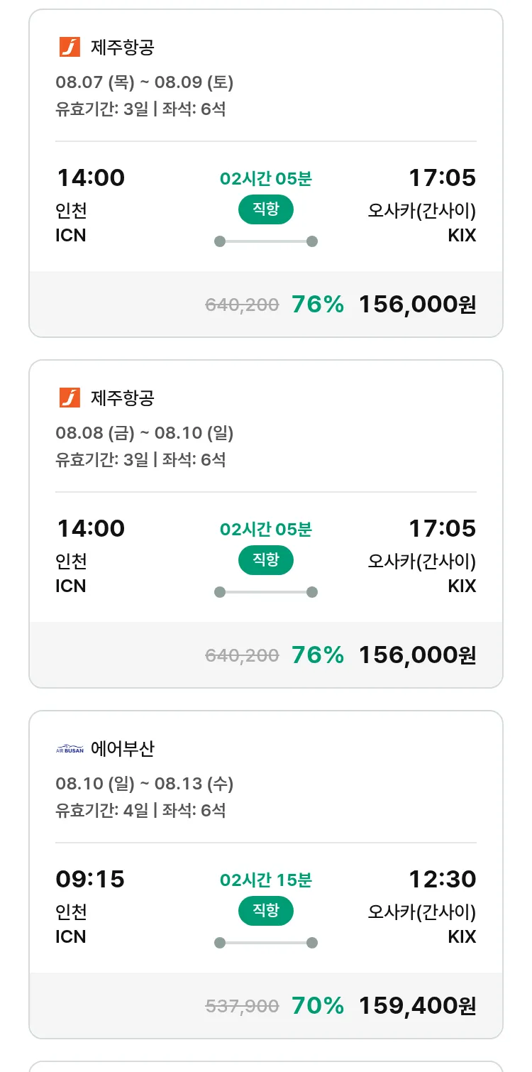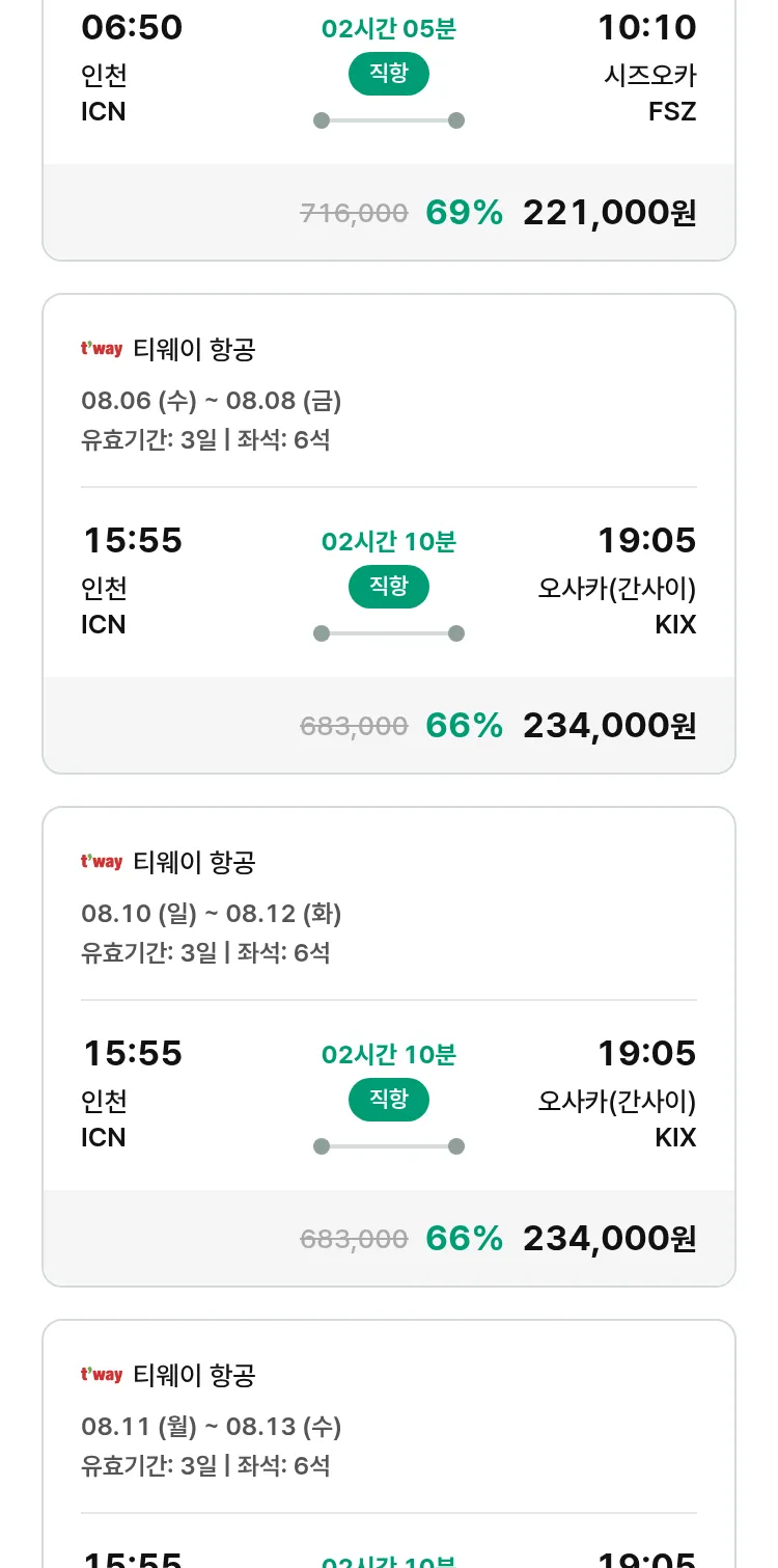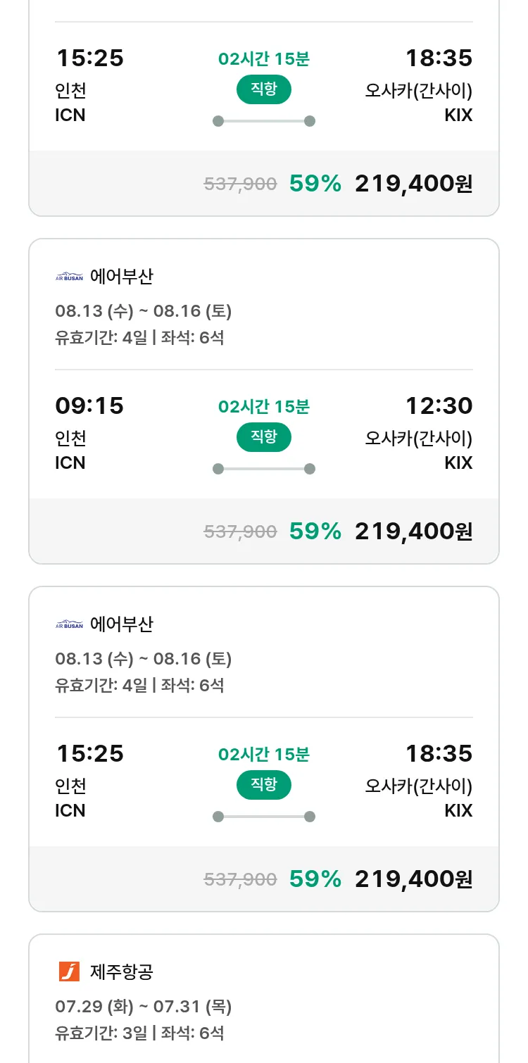 (7월 13일(일)) 땡처리 특가 항공권