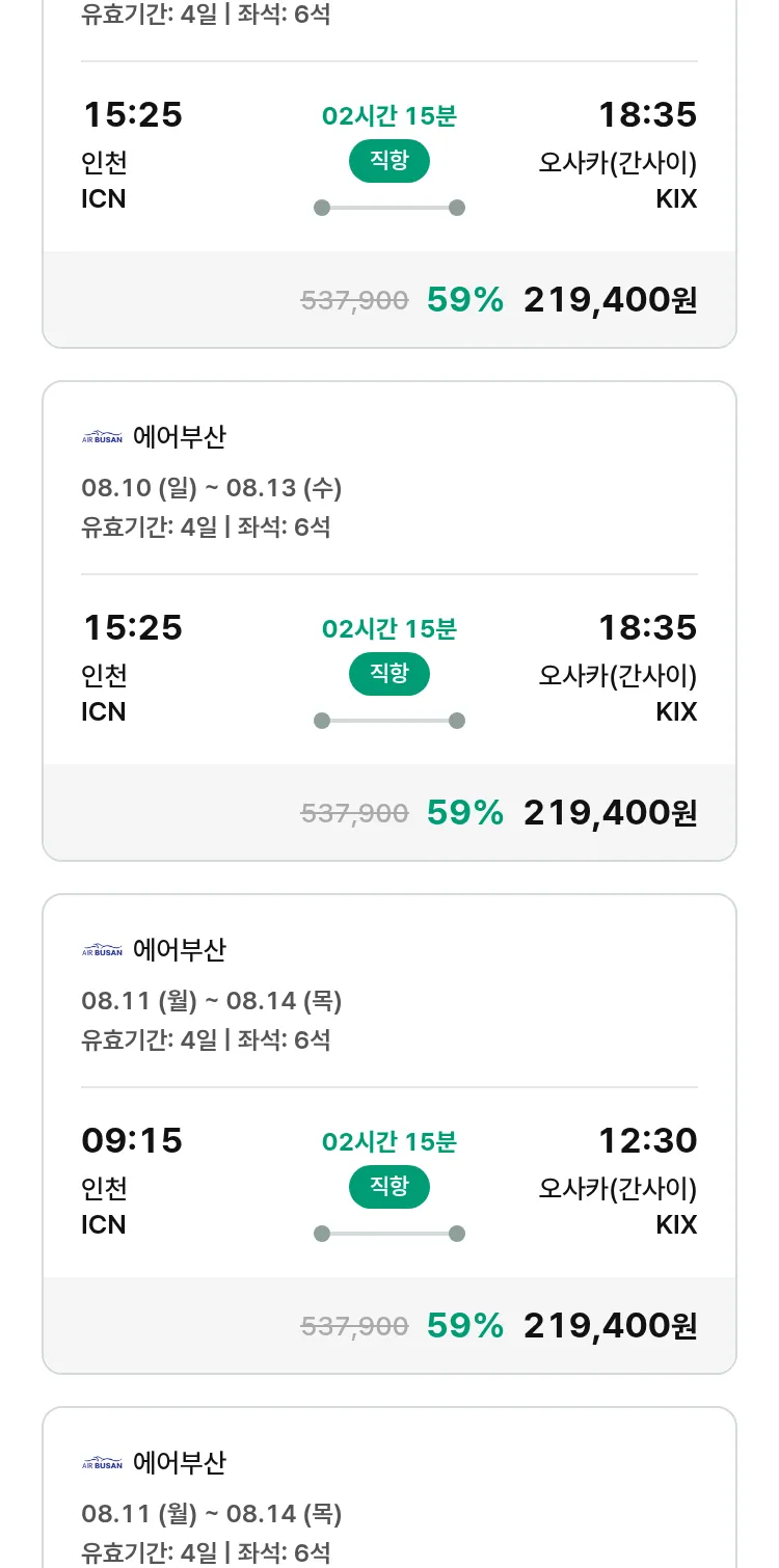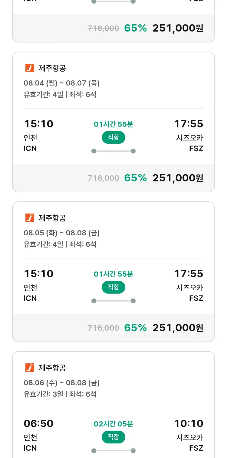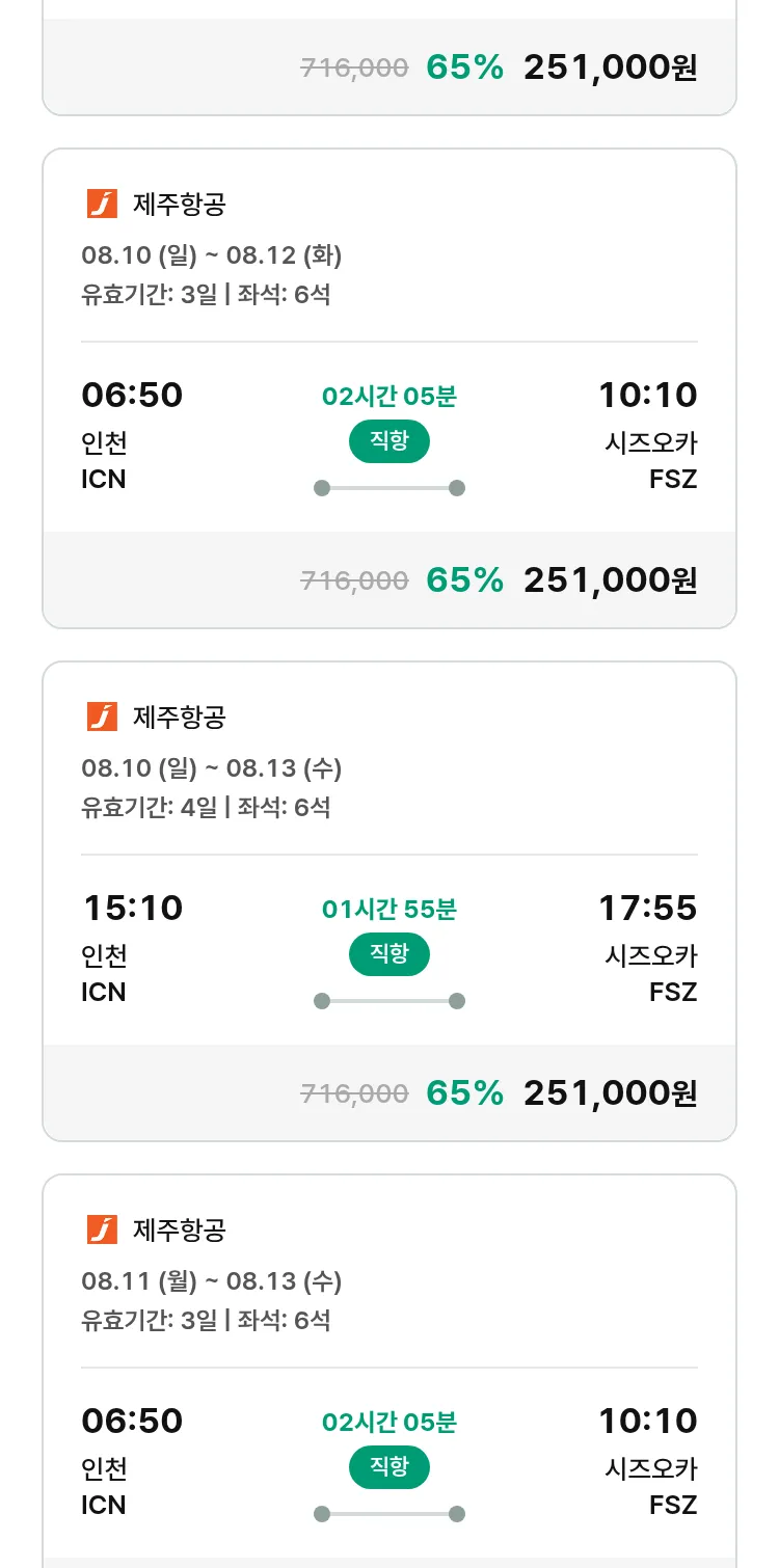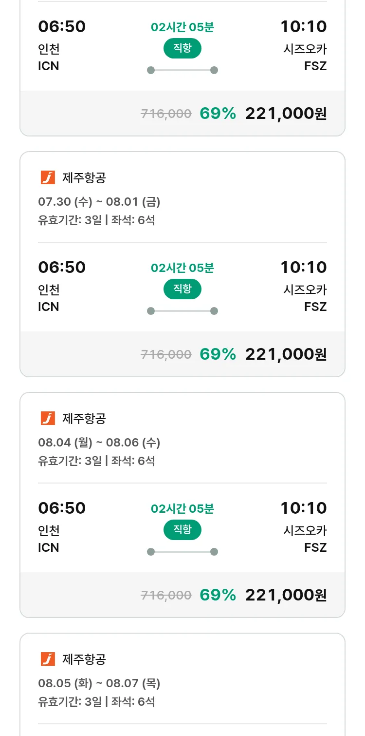 (7월 13일(일)) 땡처리 특가 항공권