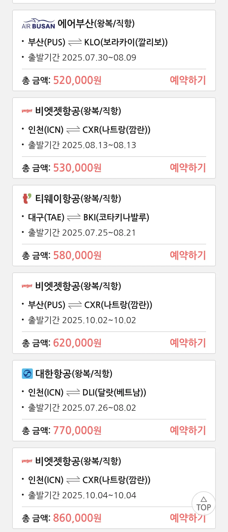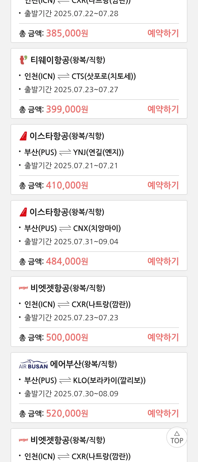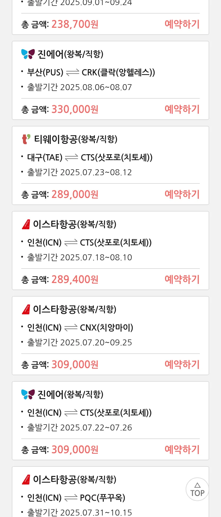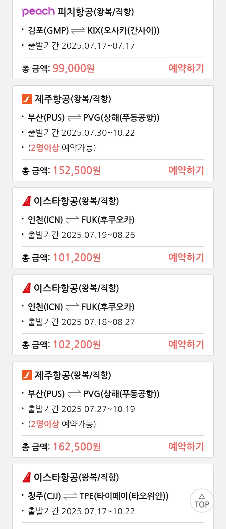 (7월 12일(토)) 땡처리 특가 항공권
