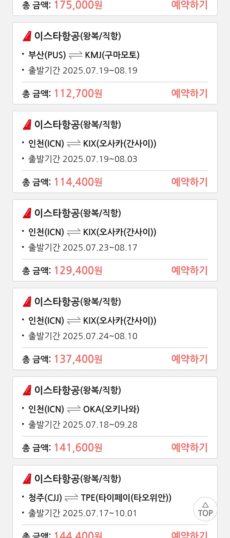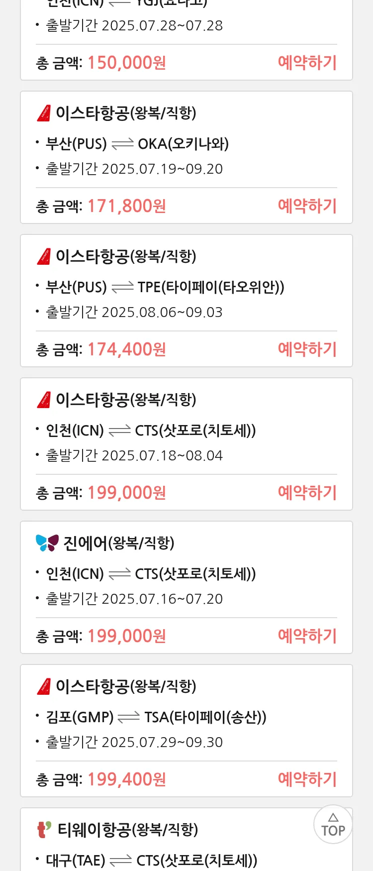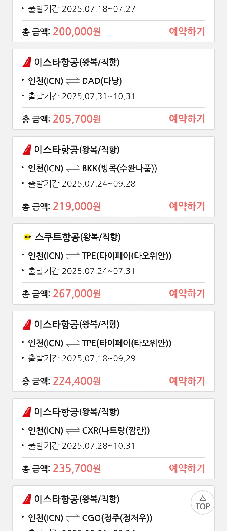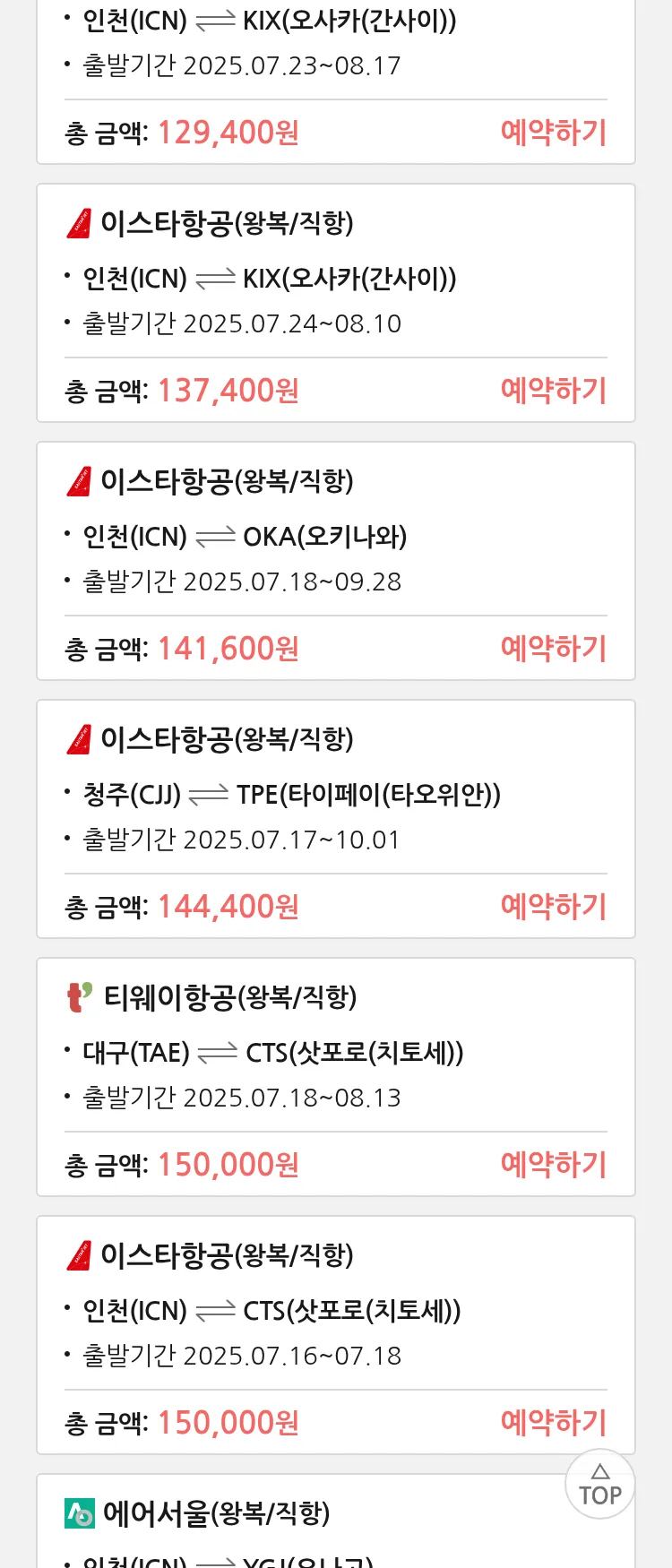 (7월 14일(월)) 땡처리 특가 항공권