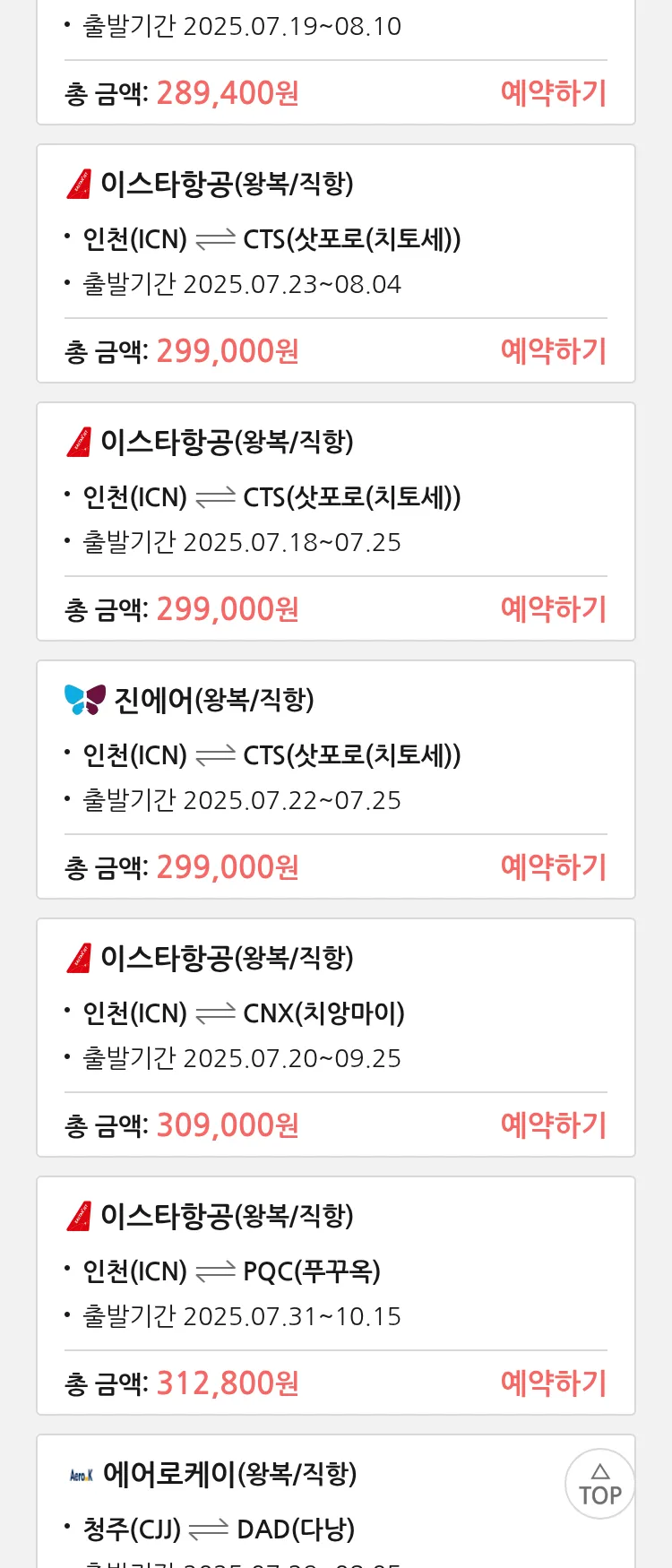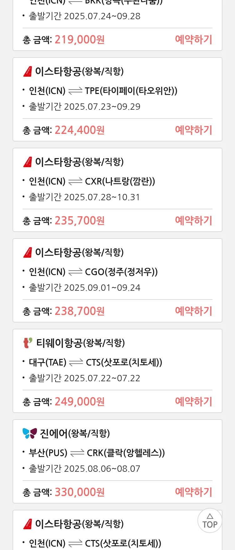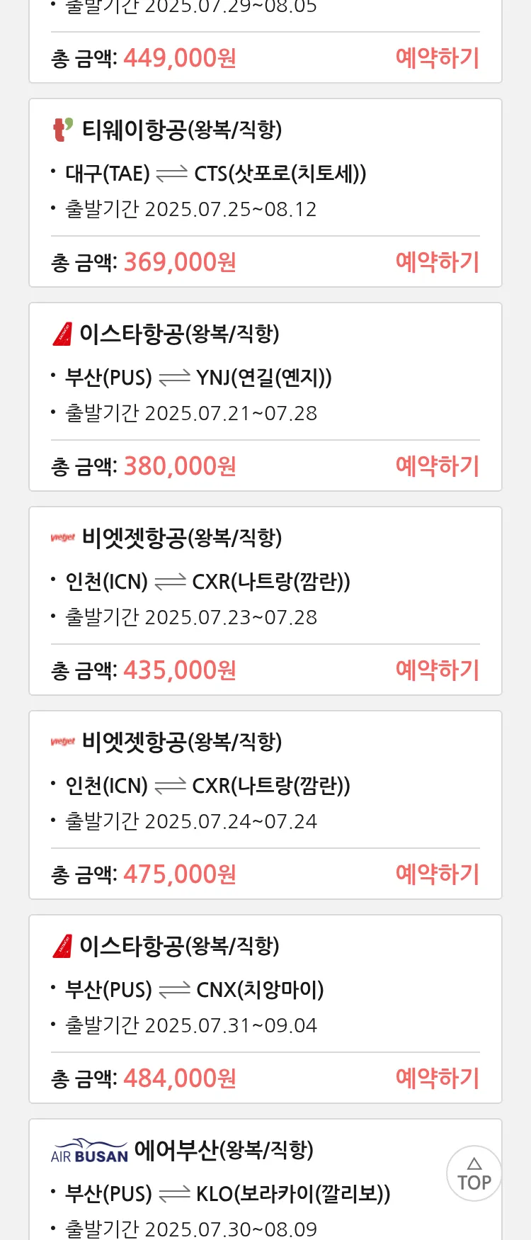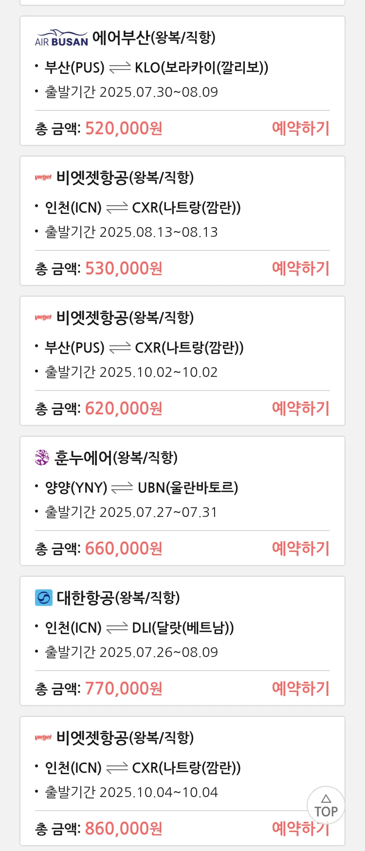(7월 17일(목)) 모두투어 동남아 특가 항공권