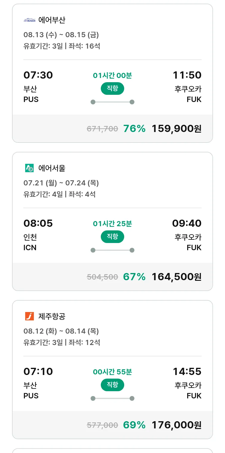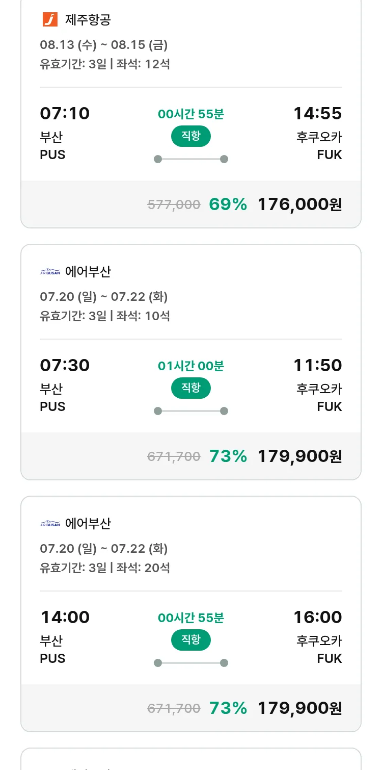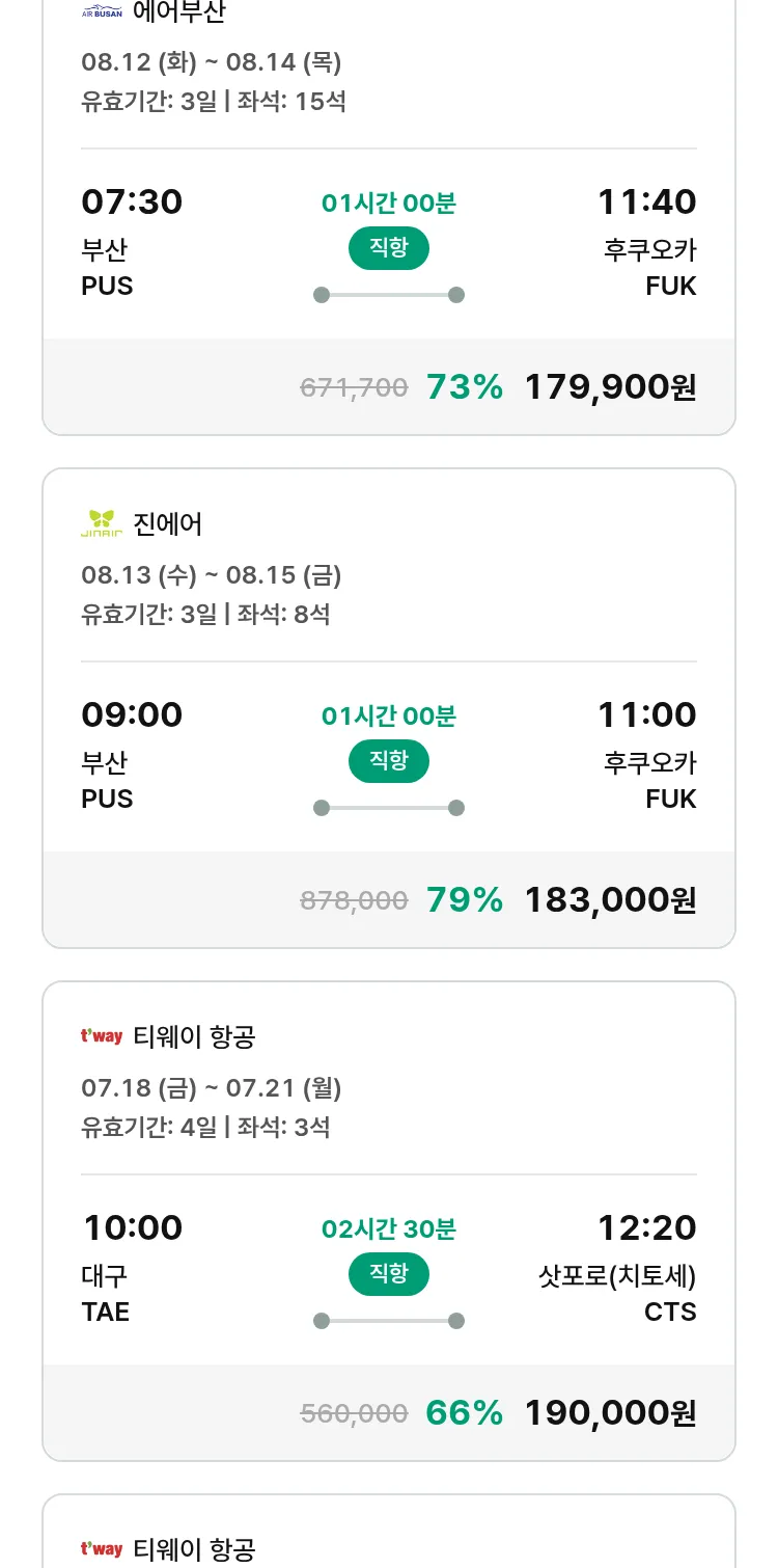 (7월 12일(토)) 땡처리 특가 항공권