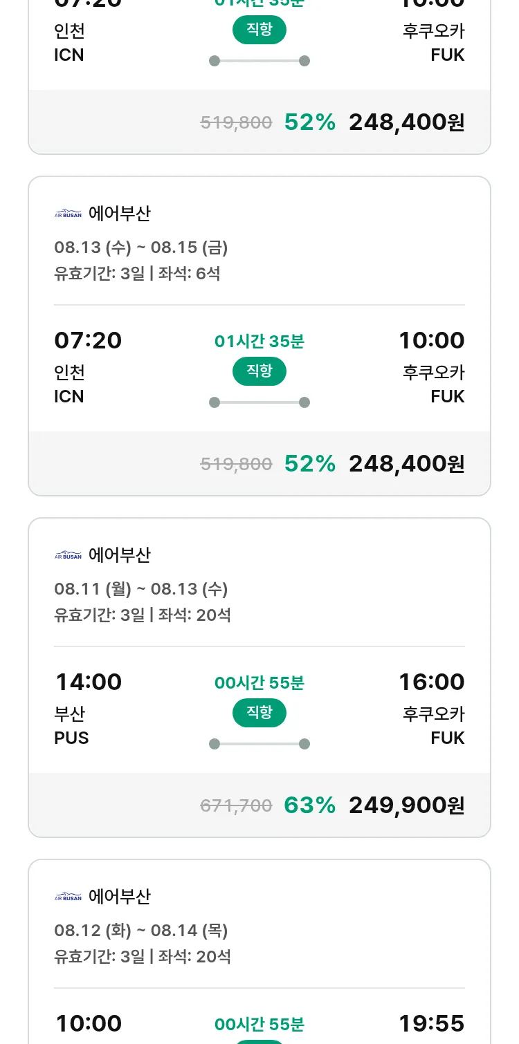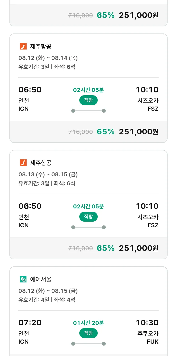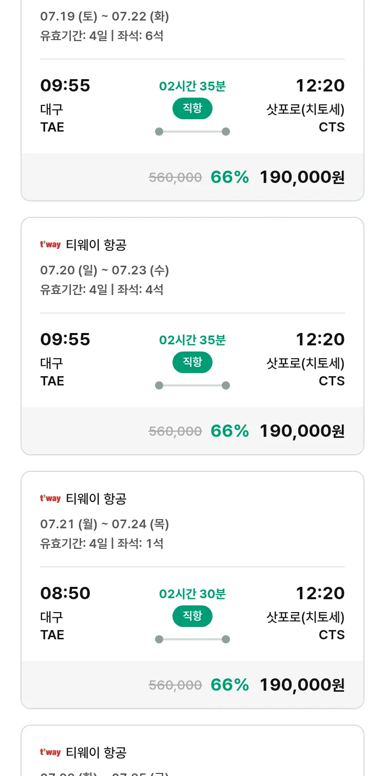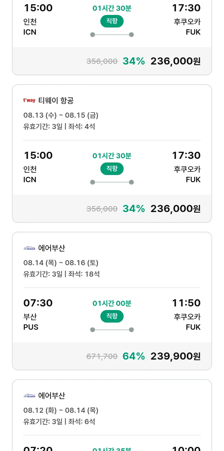 (7월 12일(토)) 땡처리 특가 항공권