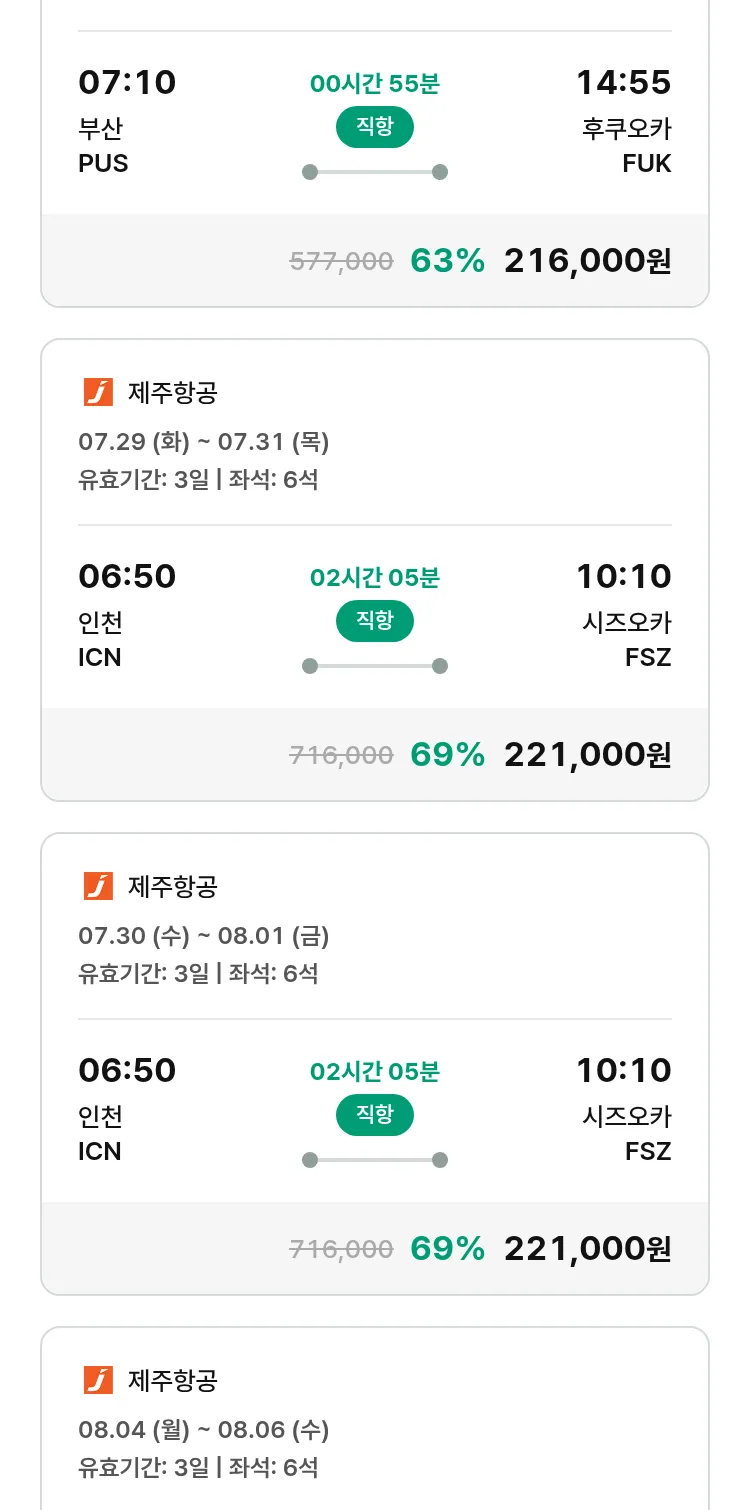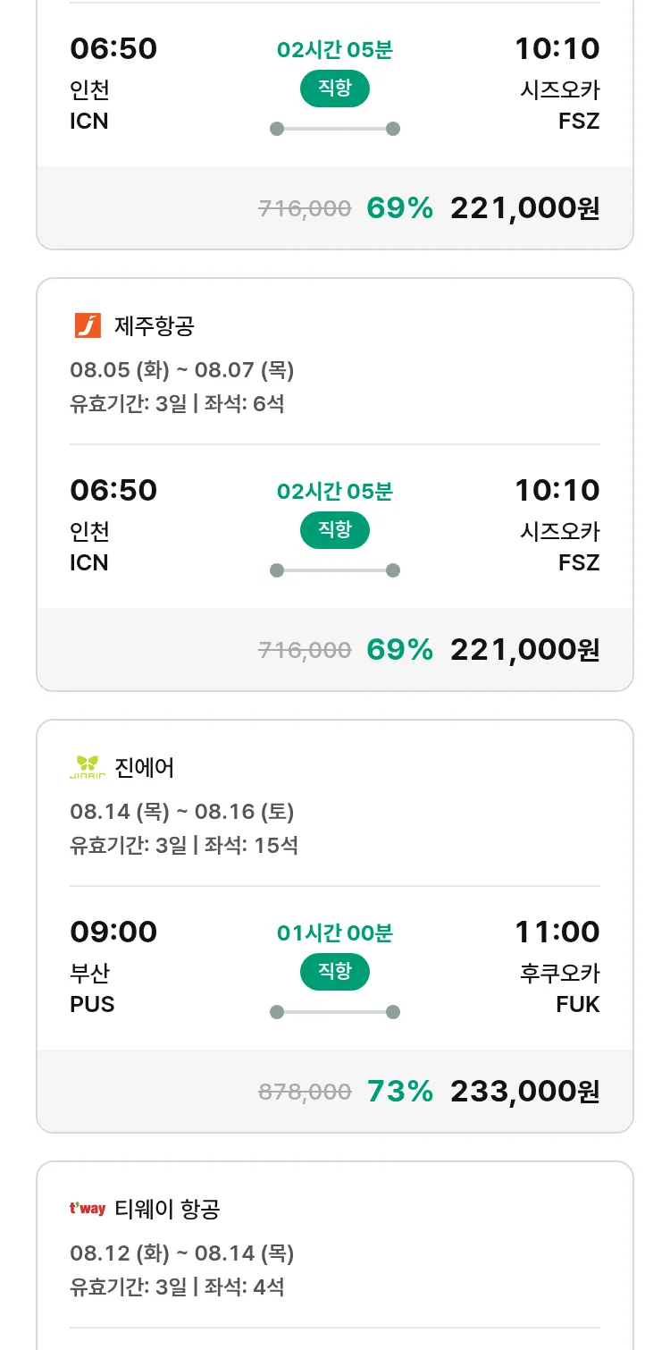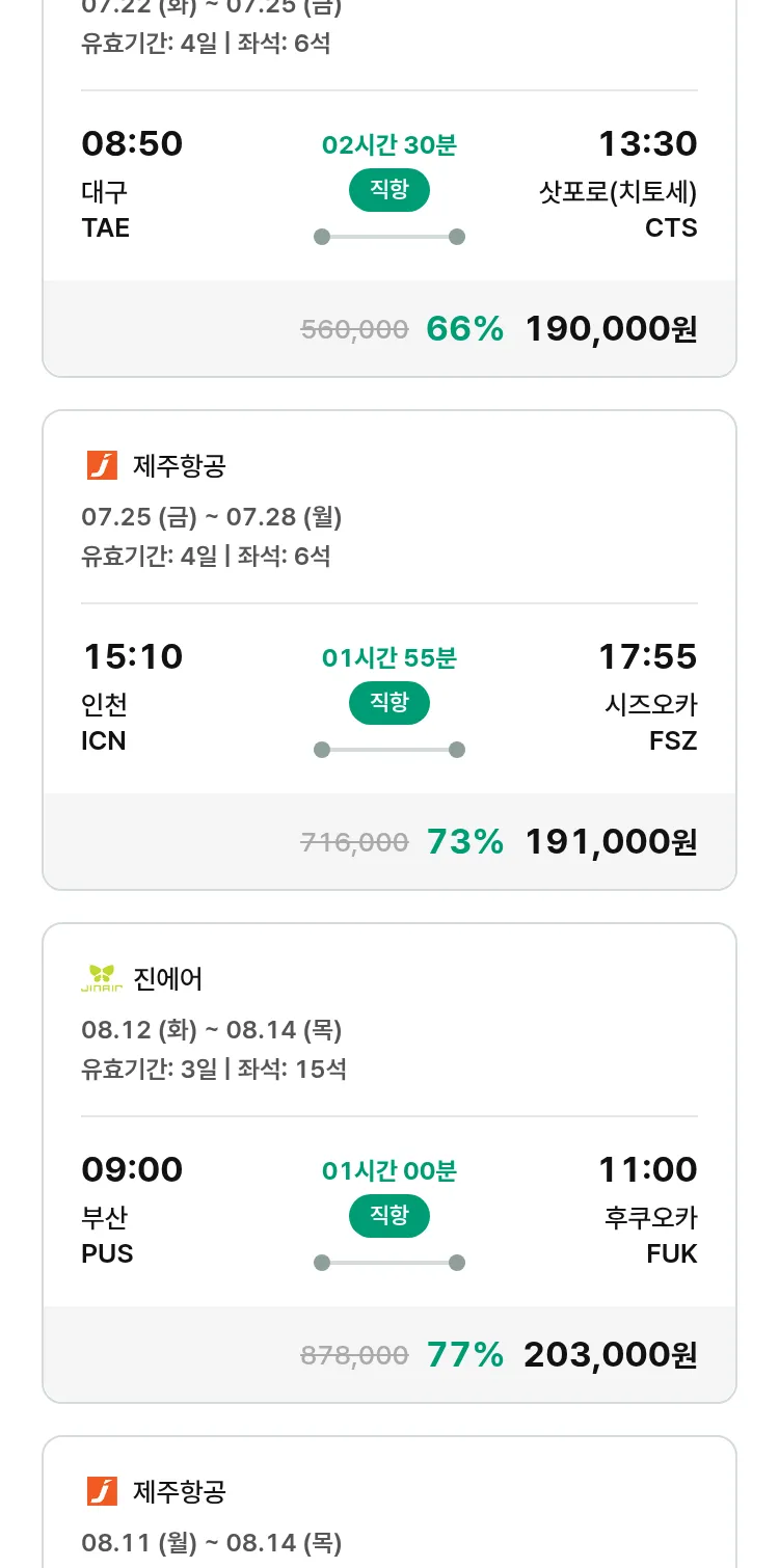 (7월 13일(일)) 땡처리 특가 항공권