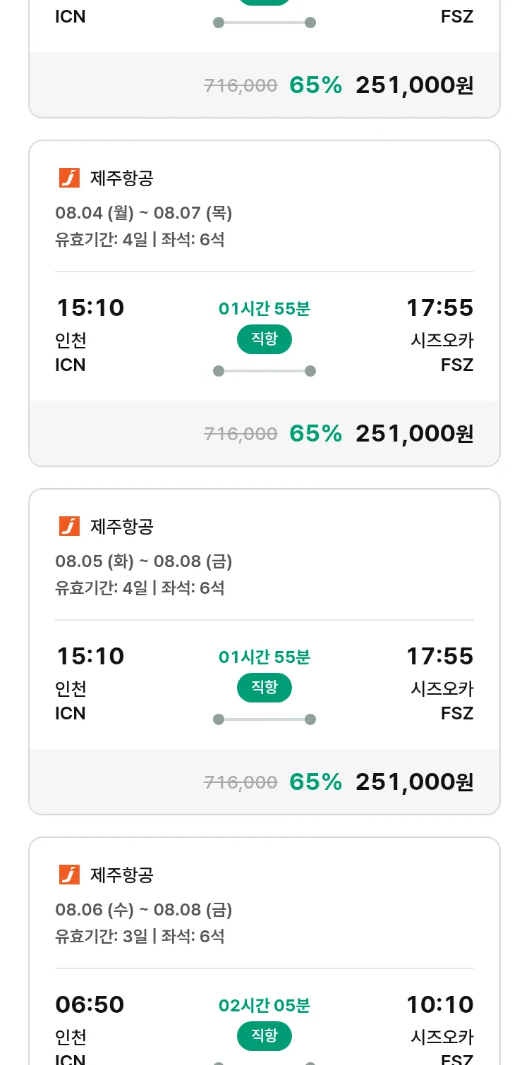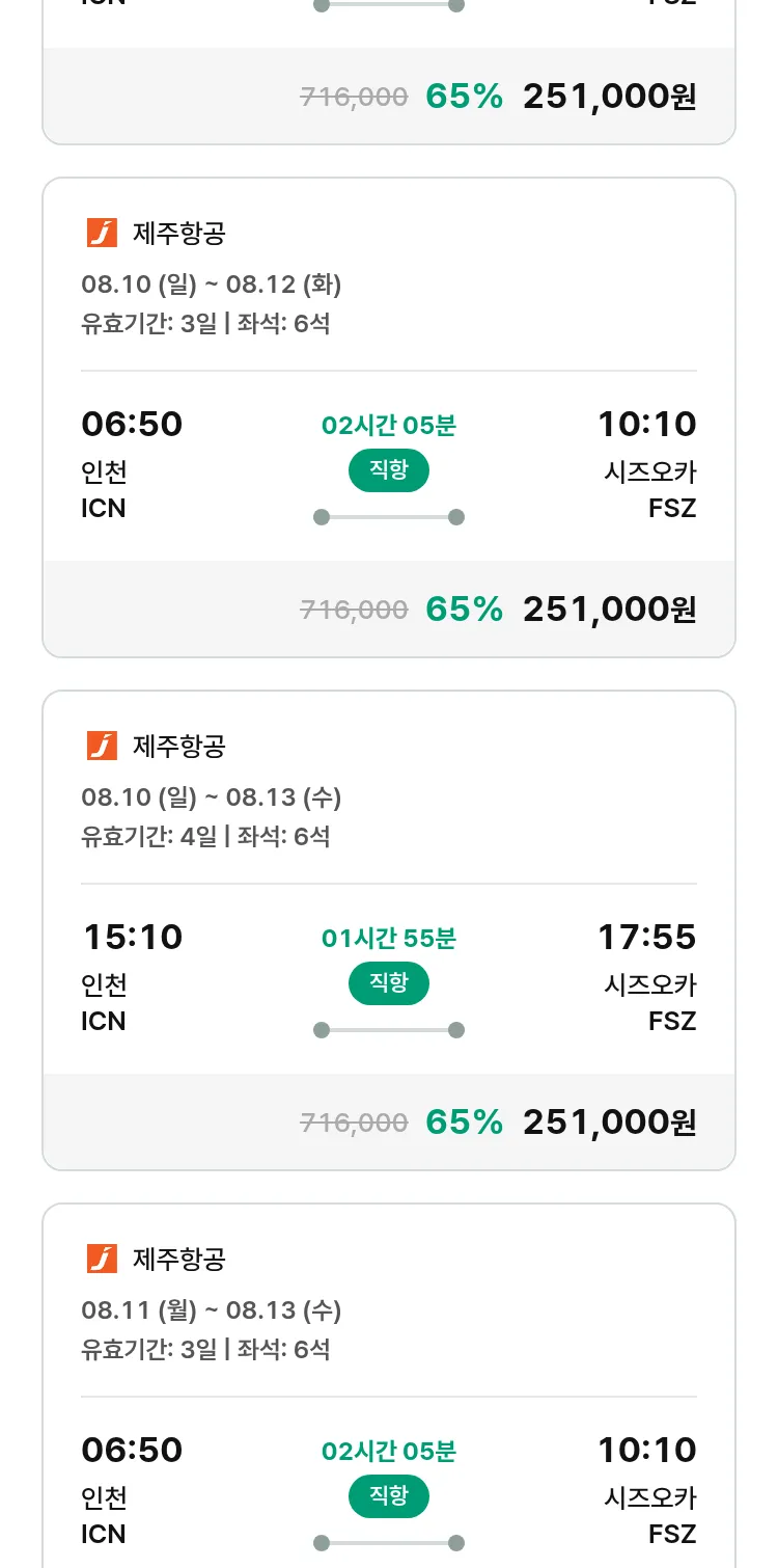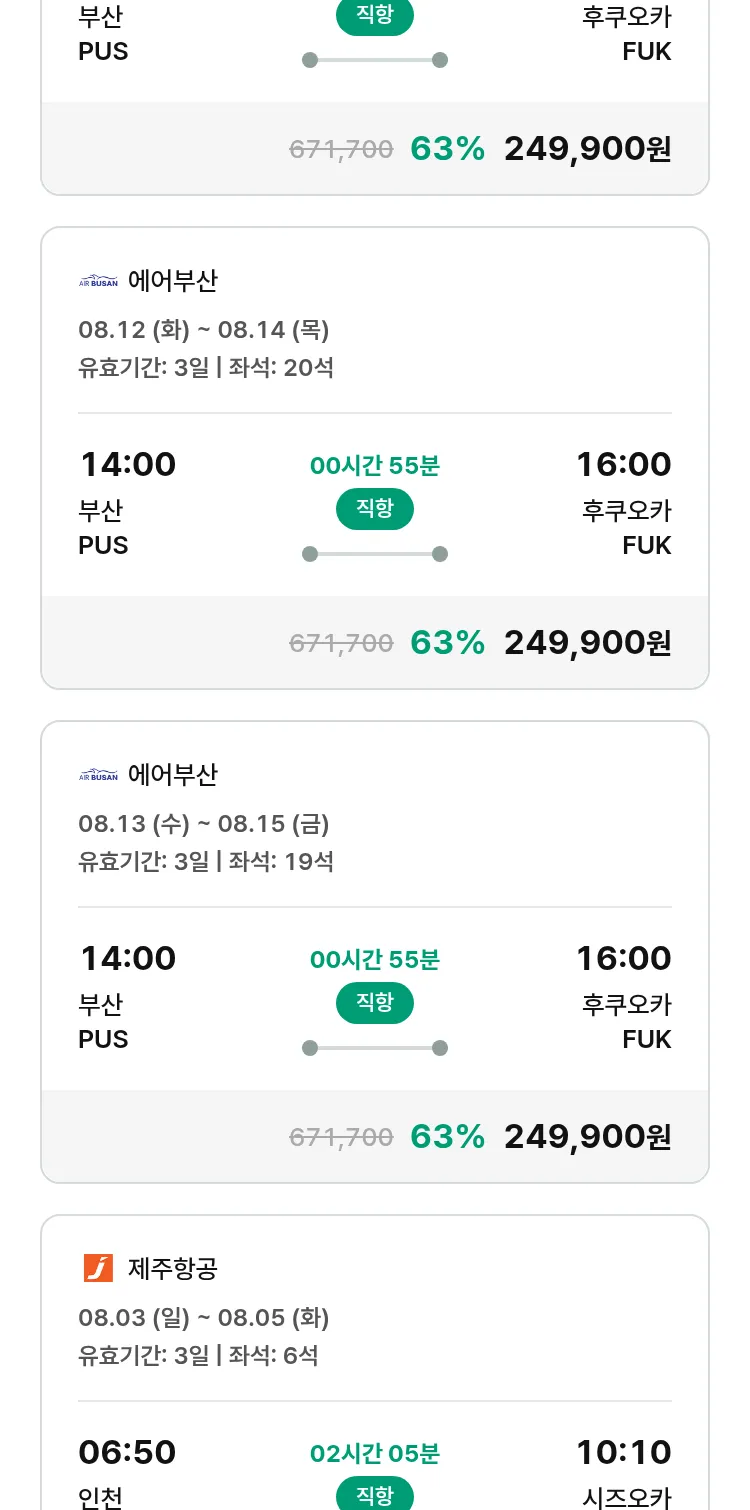 (7월 13일(일)) 땡처리 특가 항공권