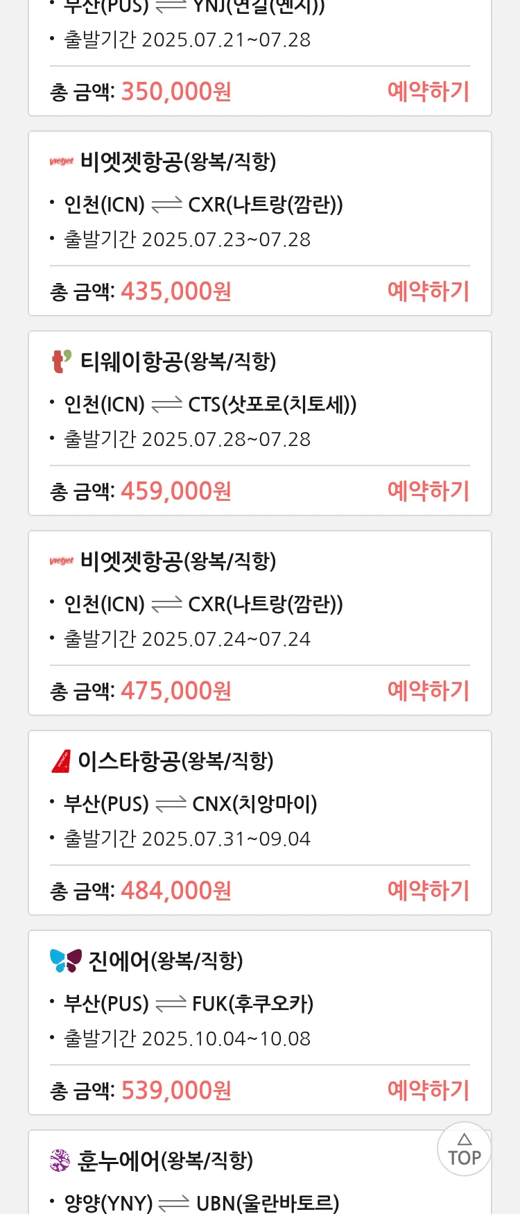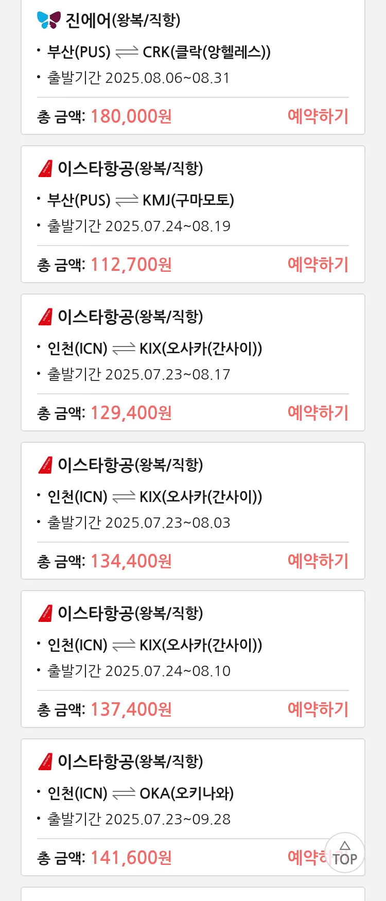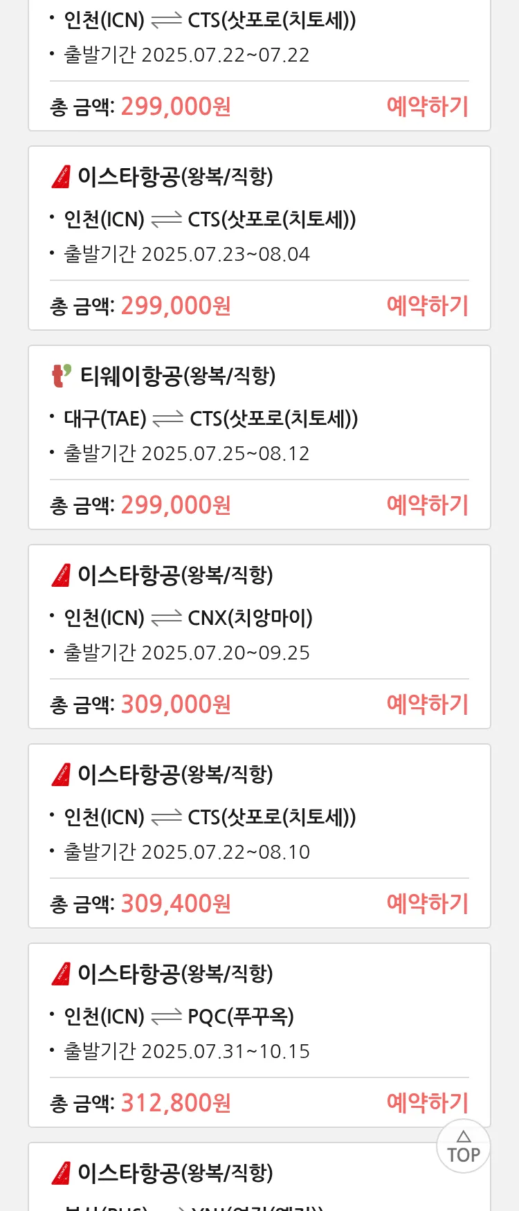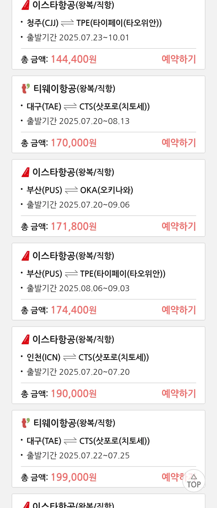 (7월 17일(목)) 땡처리 특가 항공권