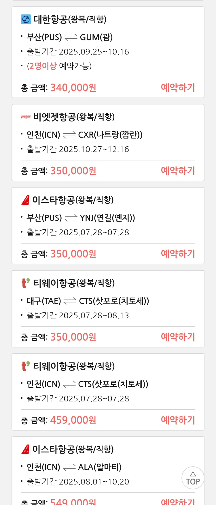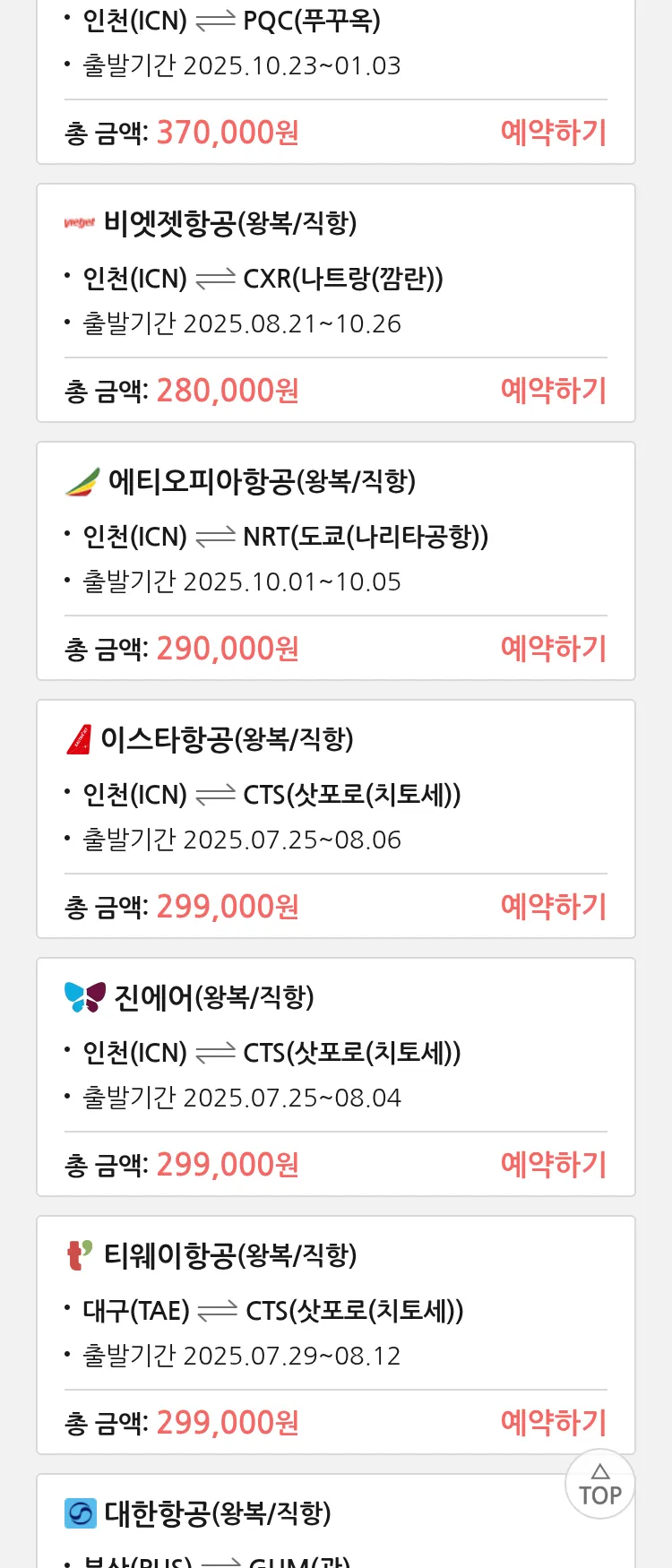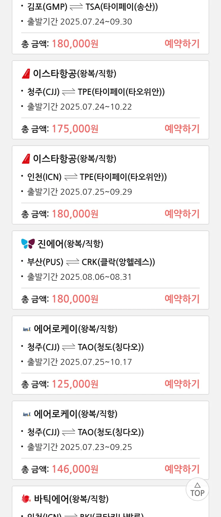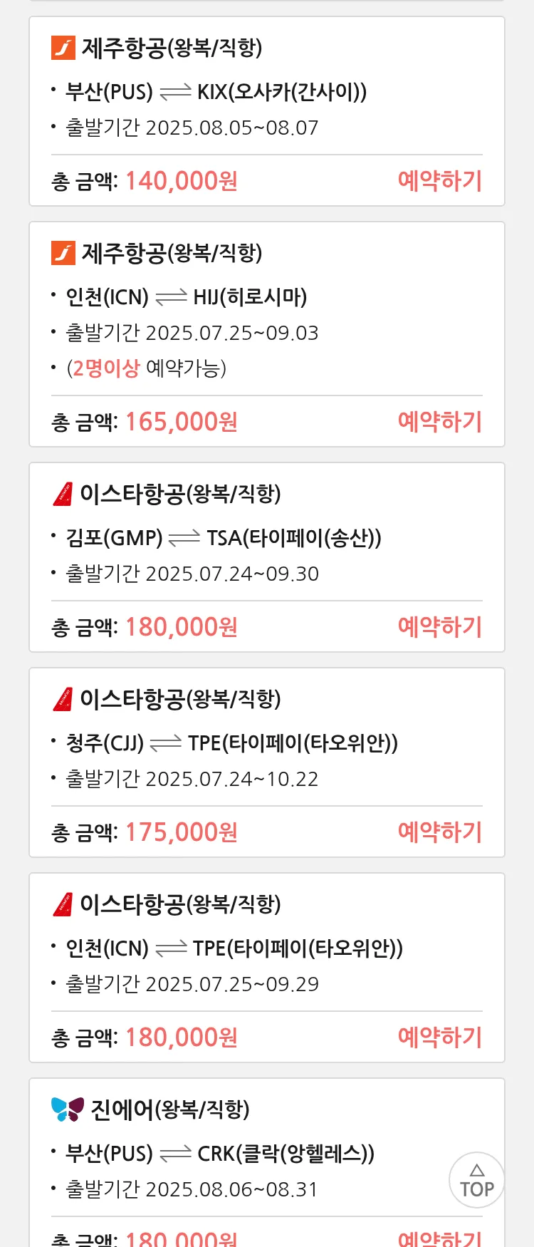 (7월 18일(금)) 땡처리 특가 항공권