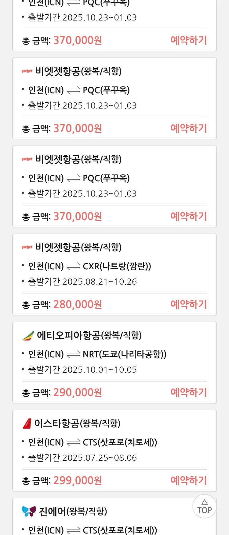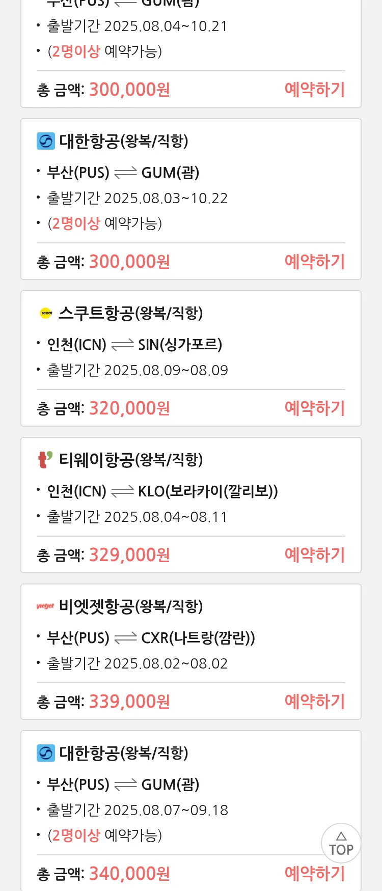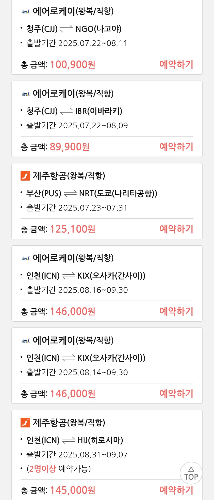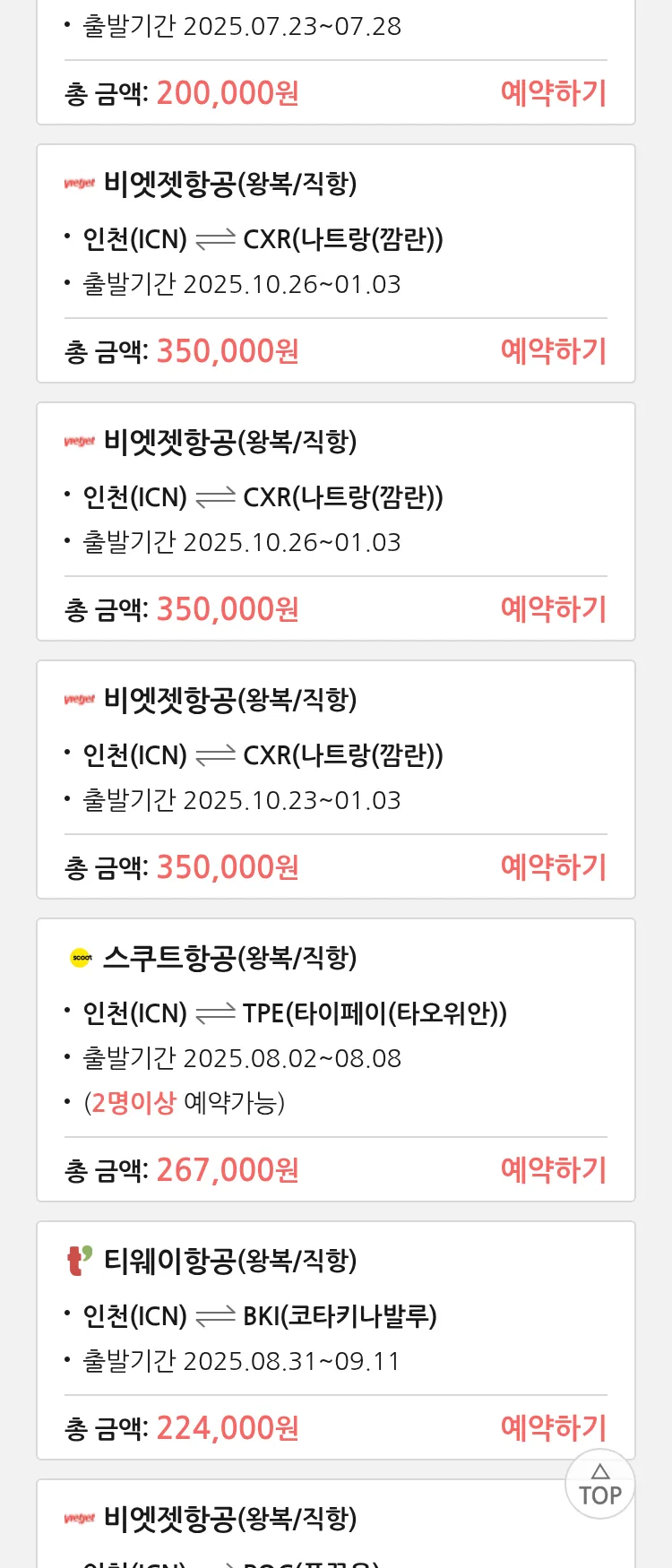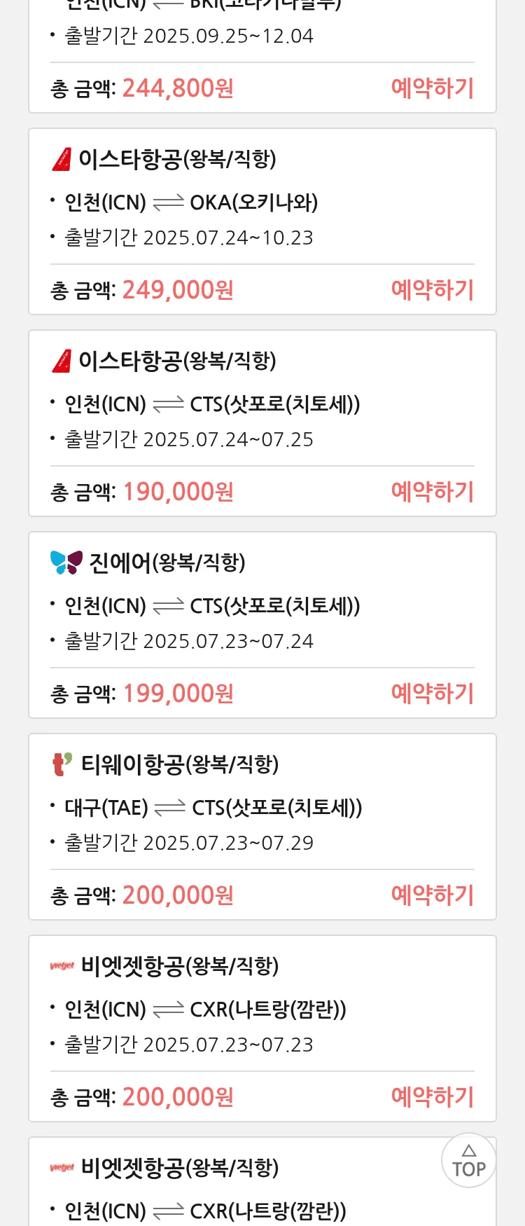 (7월 18일(금)) 땡처리 특가 항공권