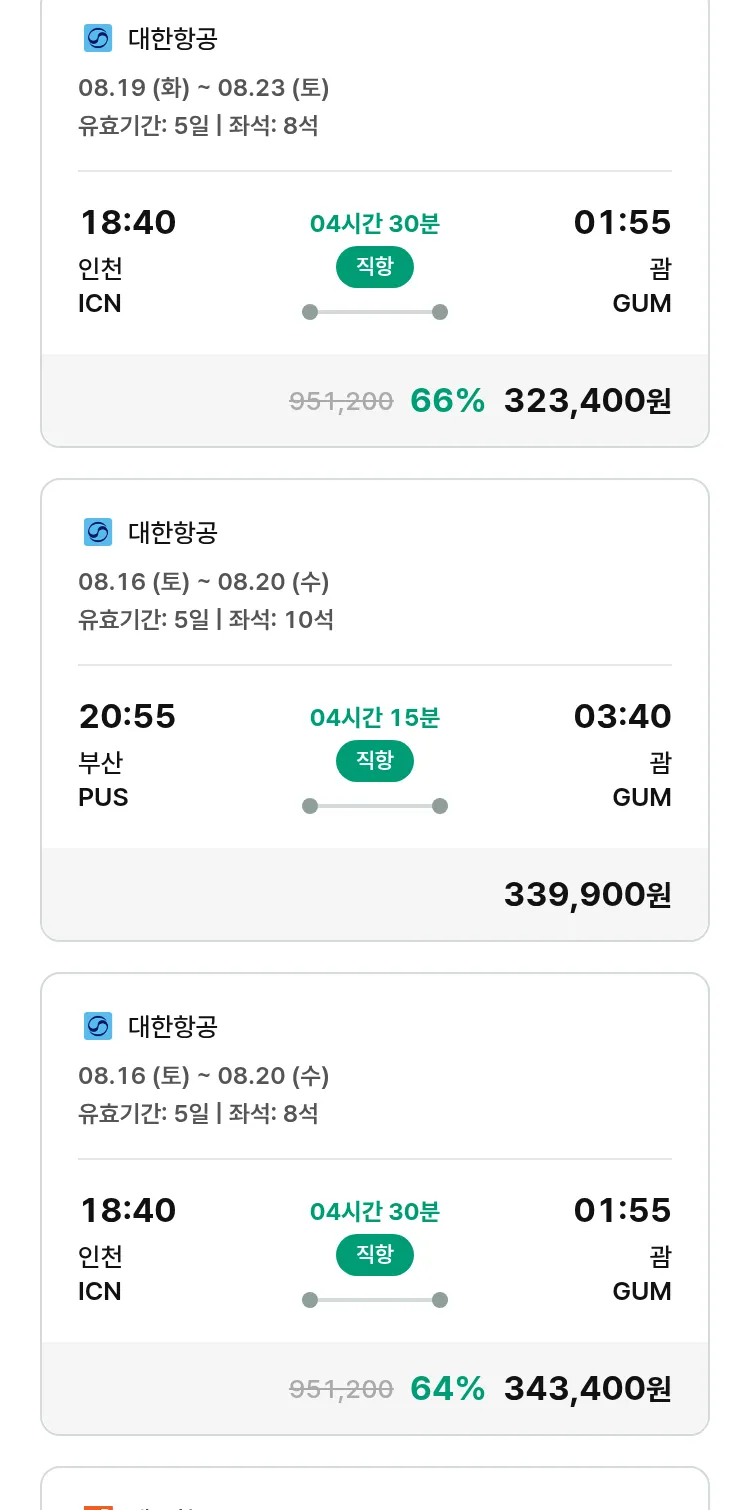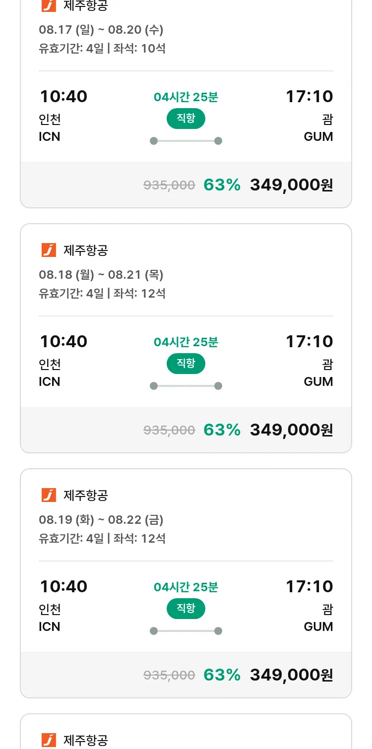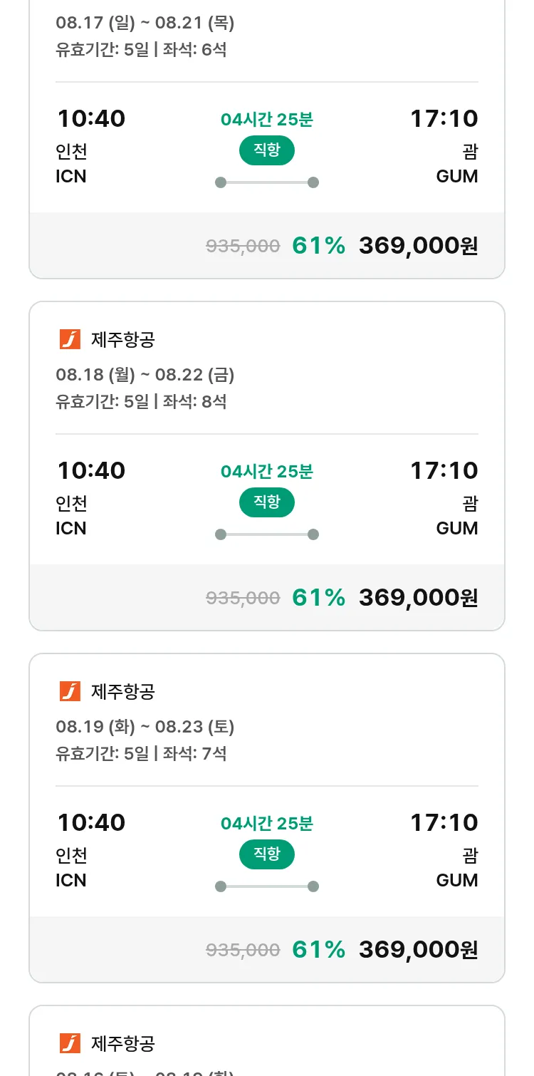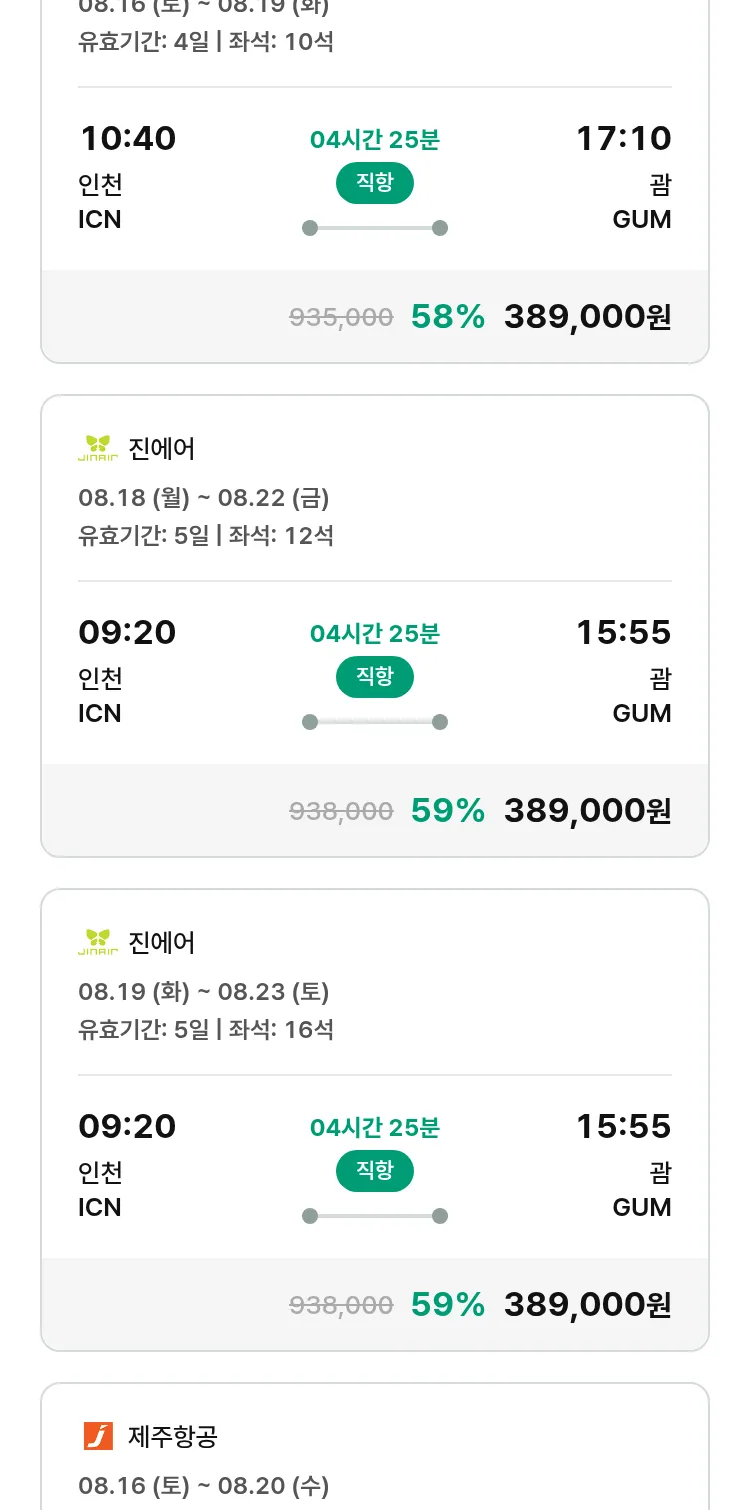 (7월 18일(금)) 땡처리 특가 항공권