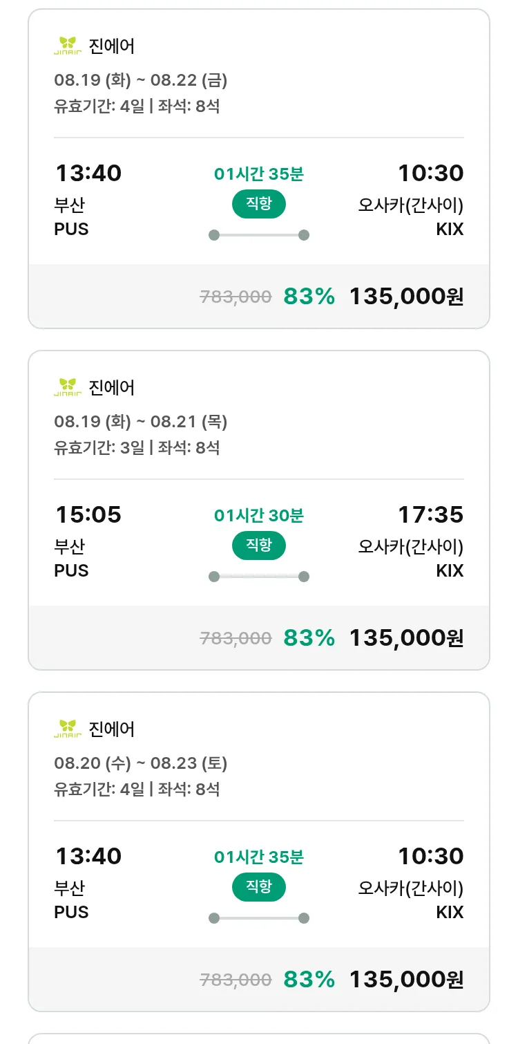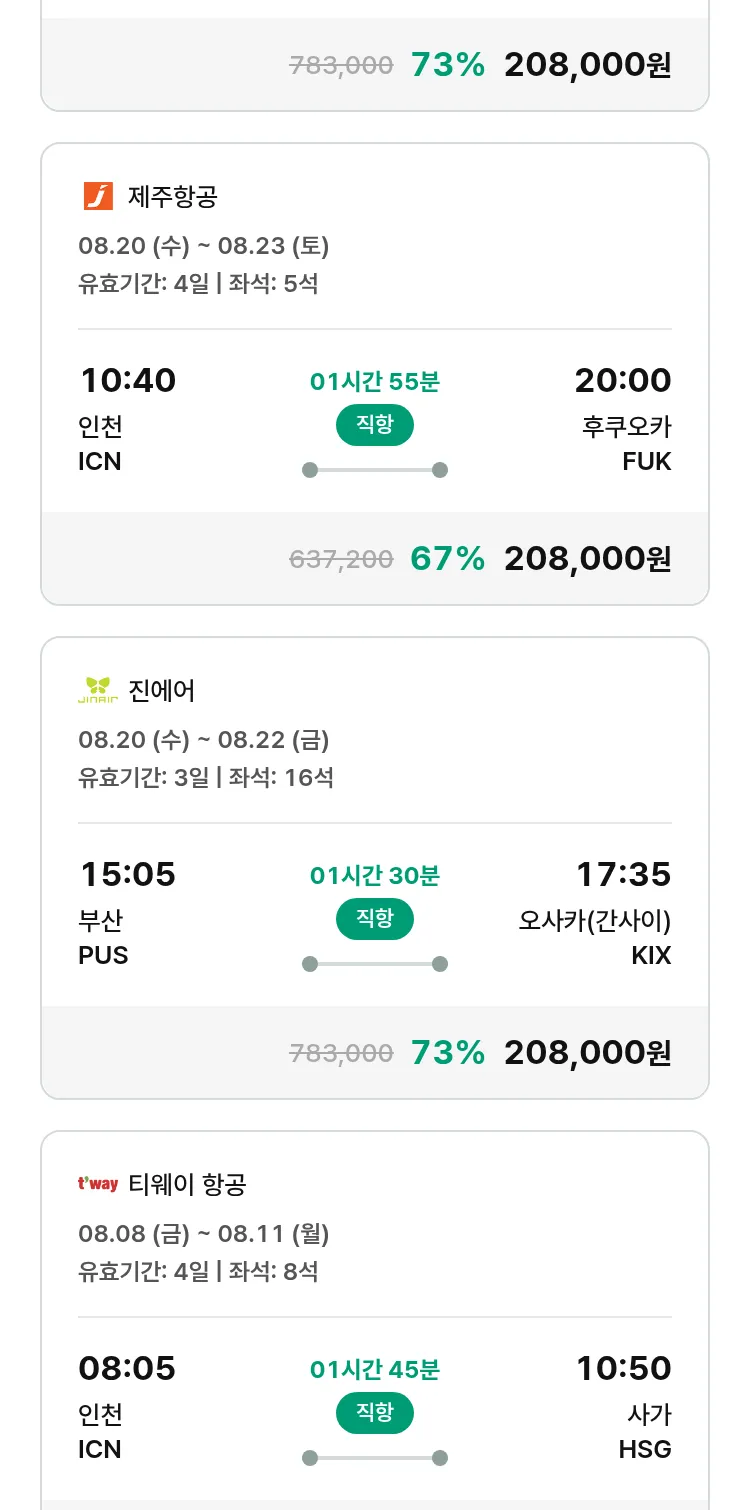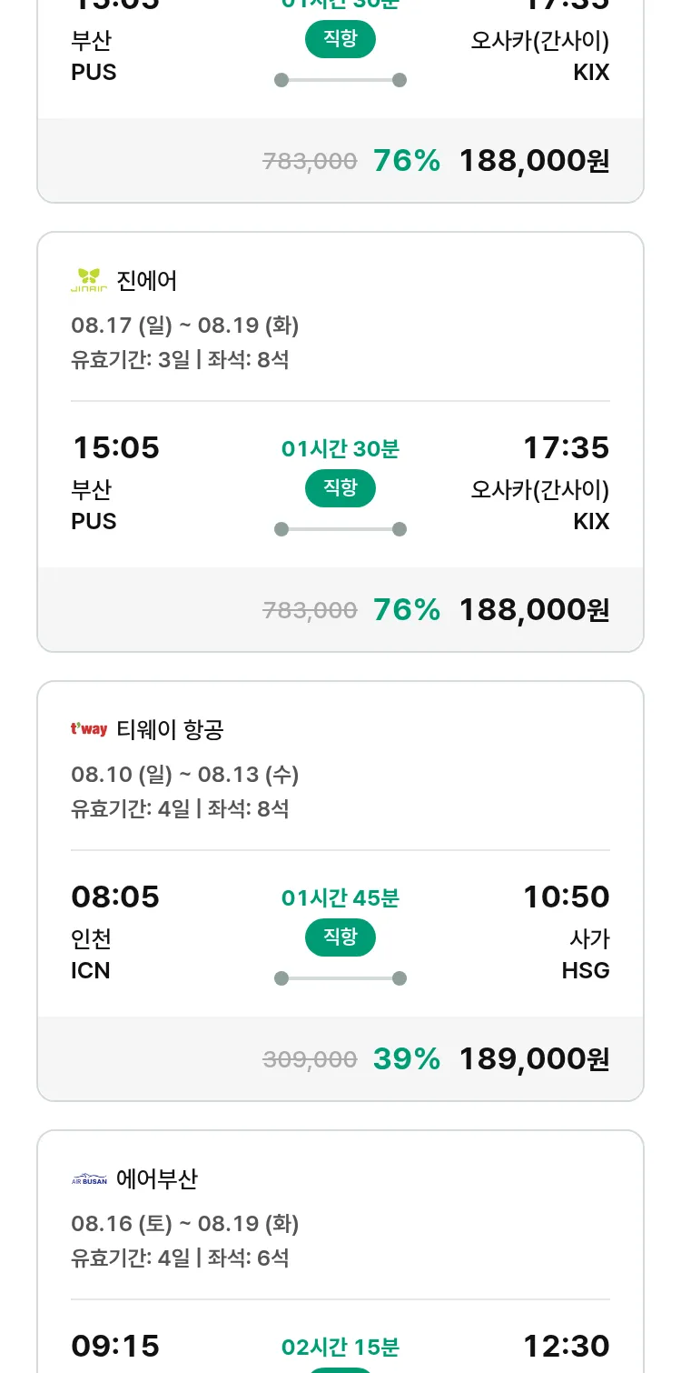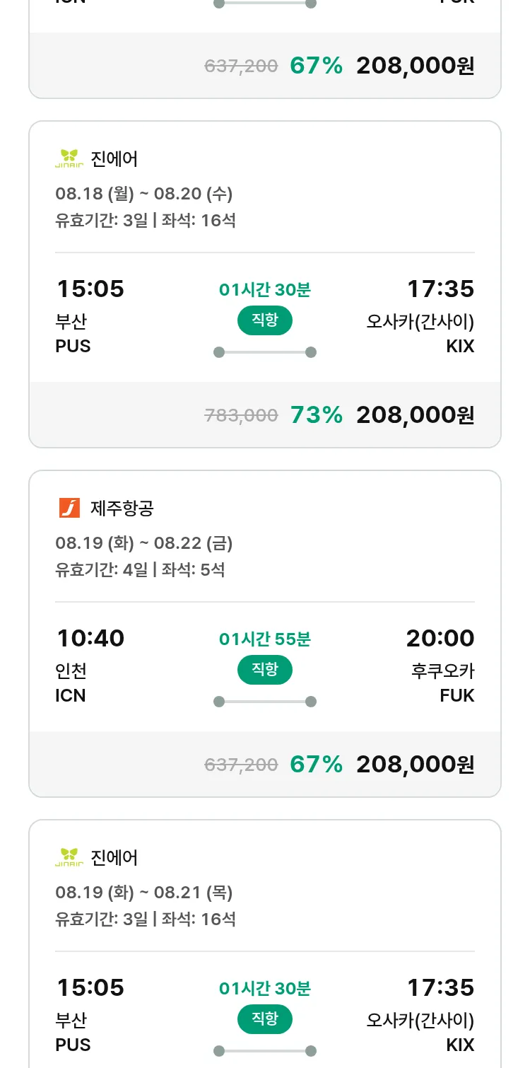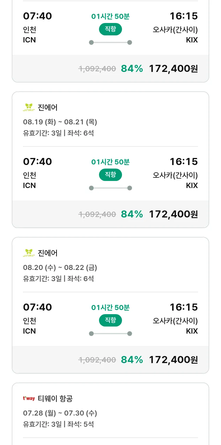 (7월 18일(금)) 땡처리 특가 항공권