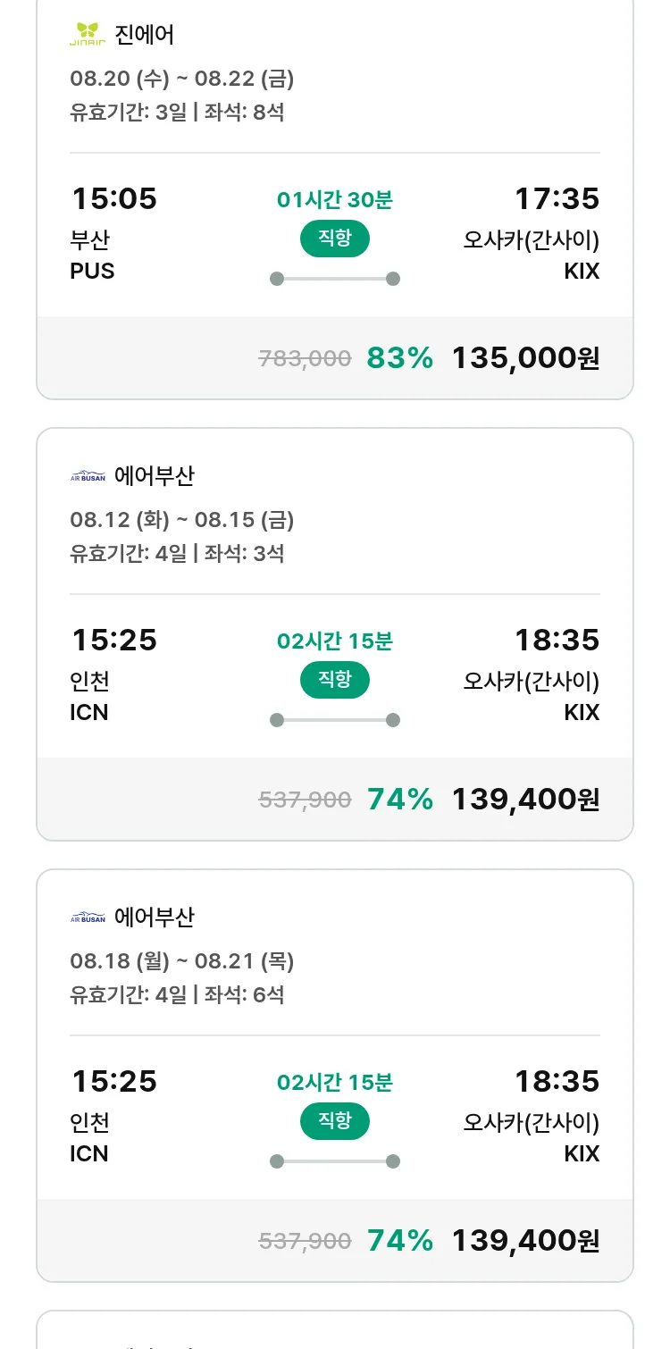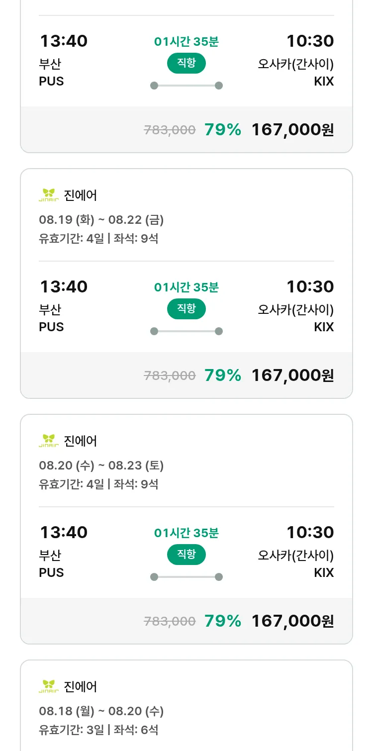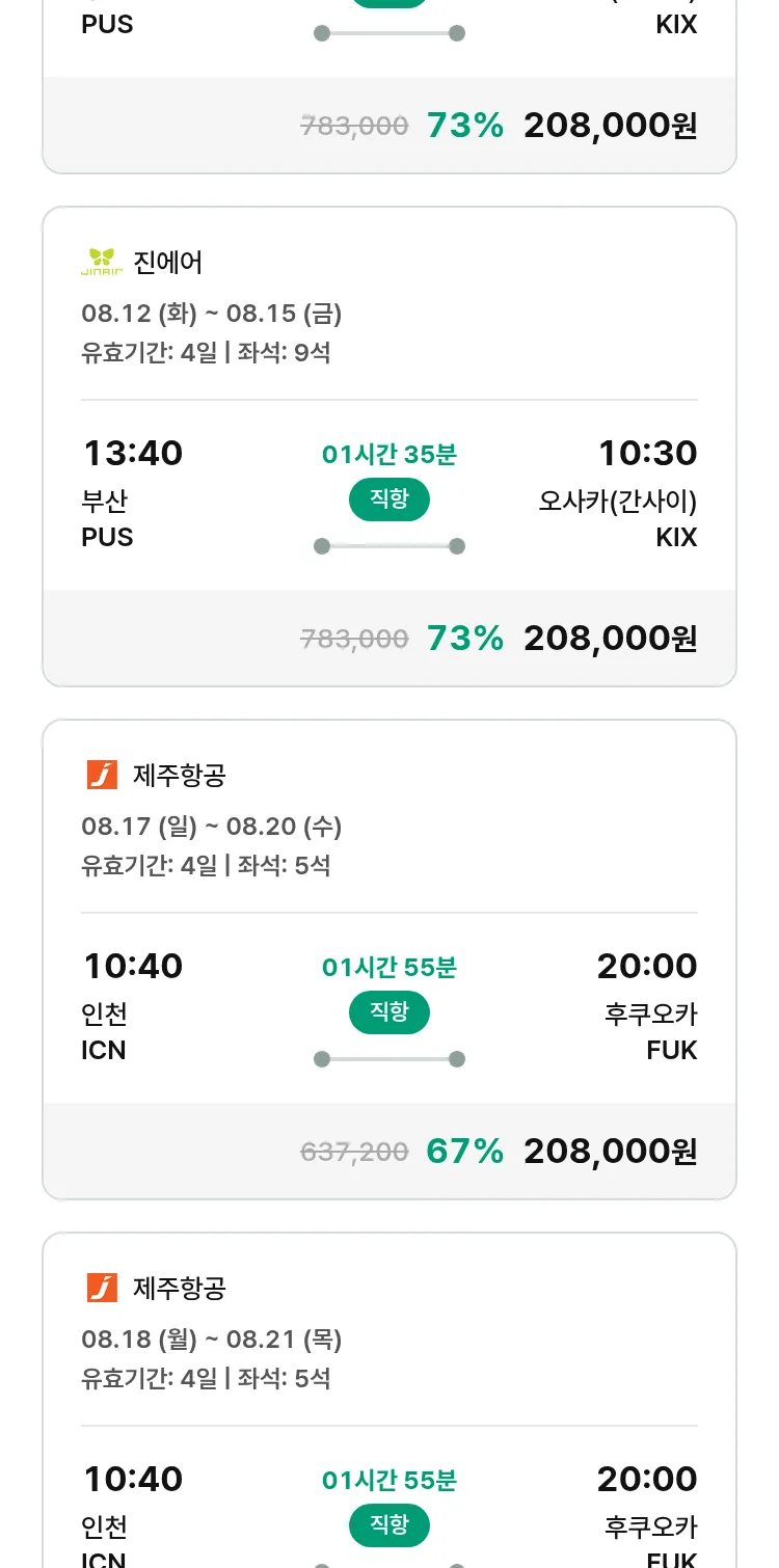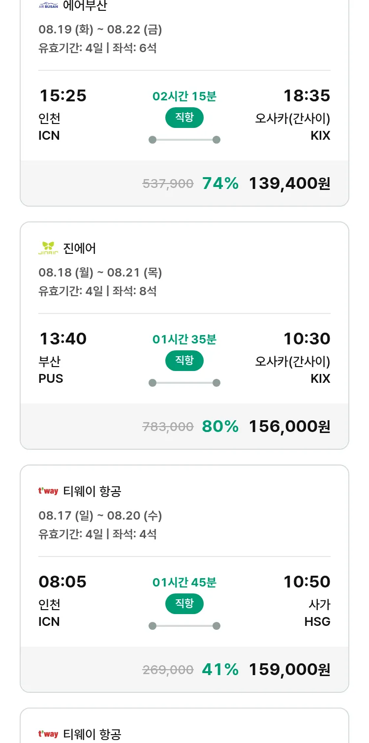 (7월 18일(금)) 땡처리 특가 항공권