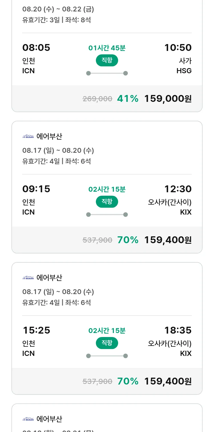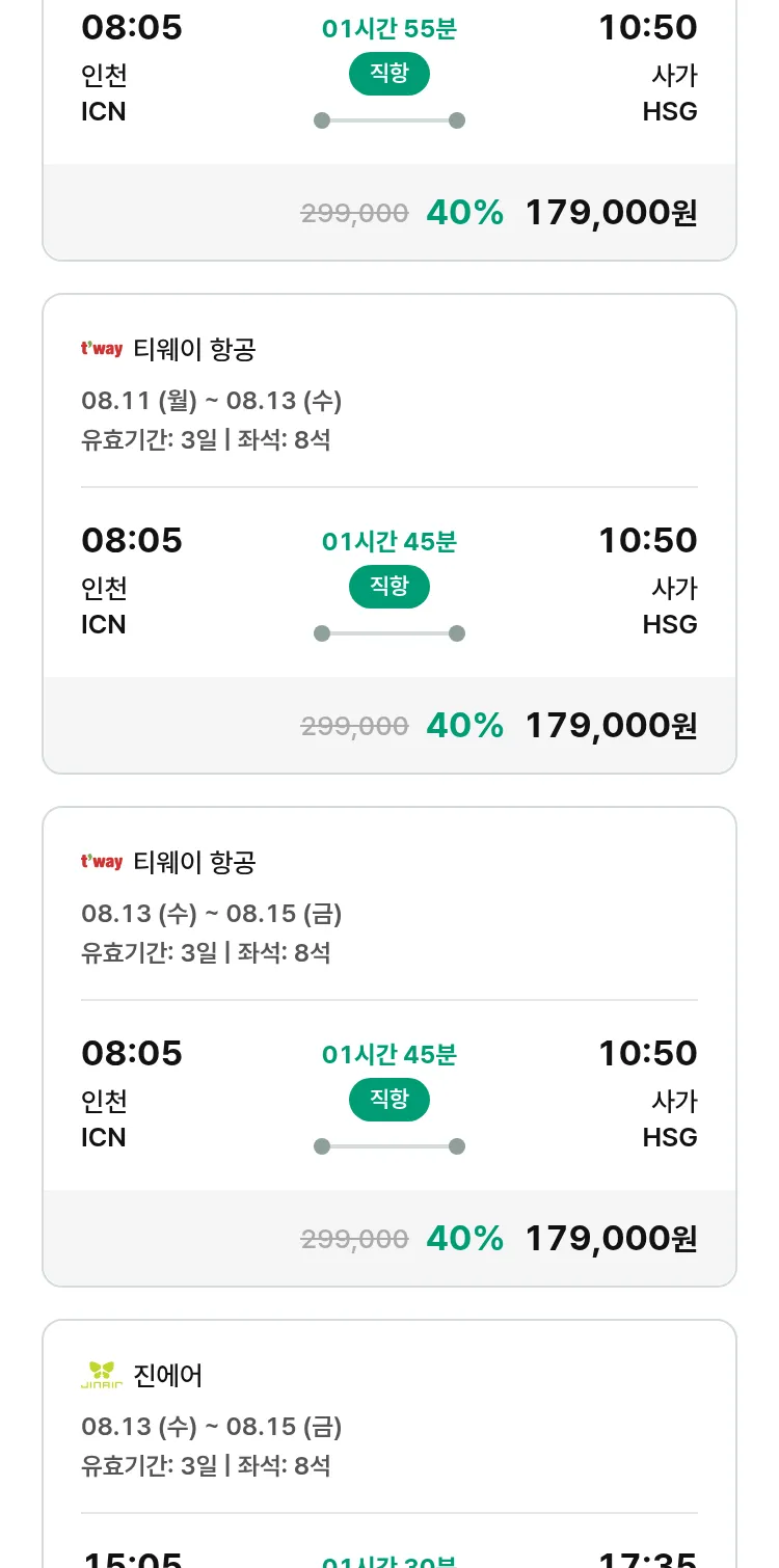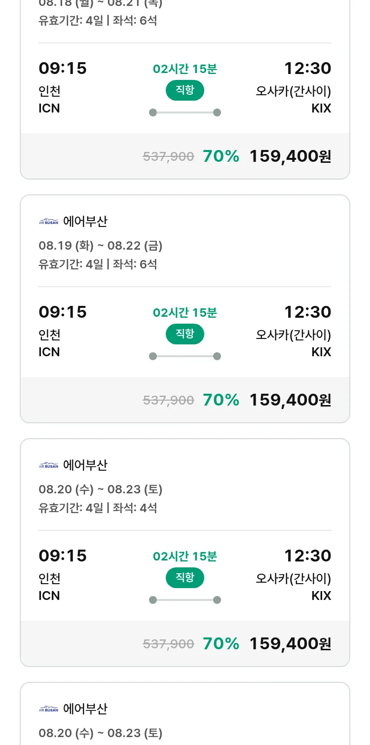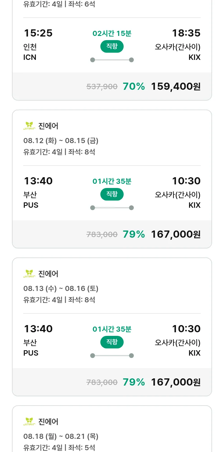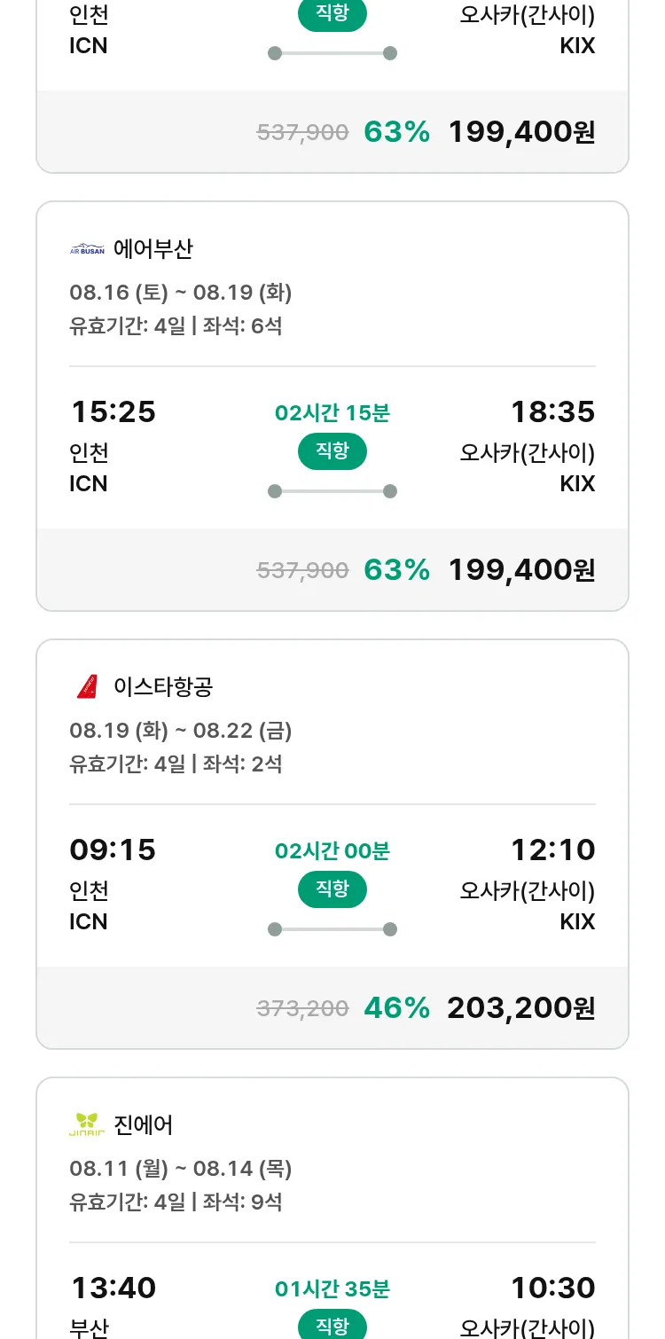 (7월 18일(금)) 땡처리 특가 항공권
