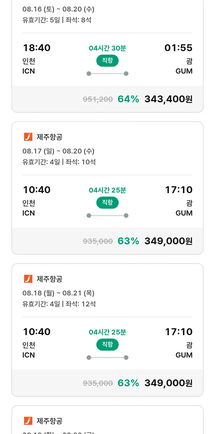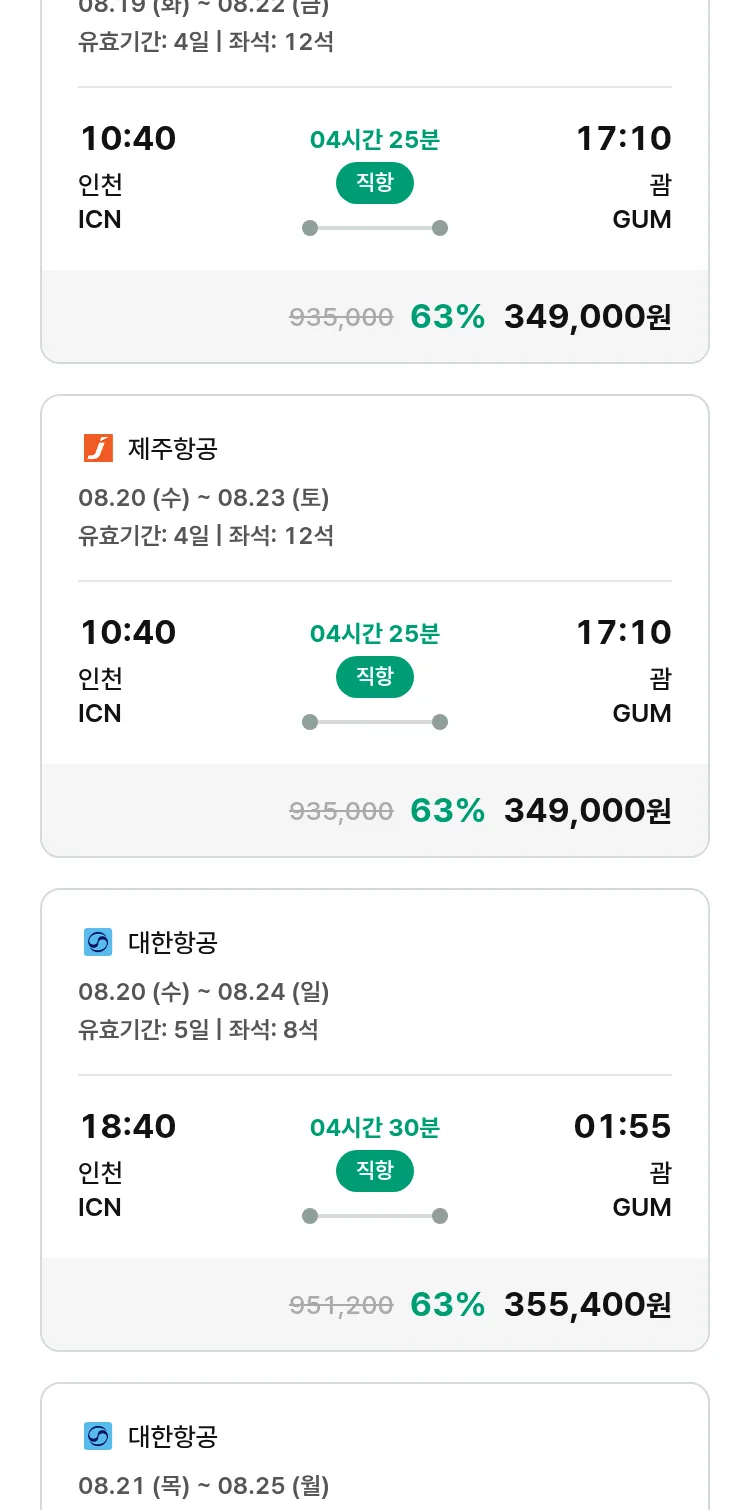 (7월 18일(금)) 땡처리 특가 항공권
